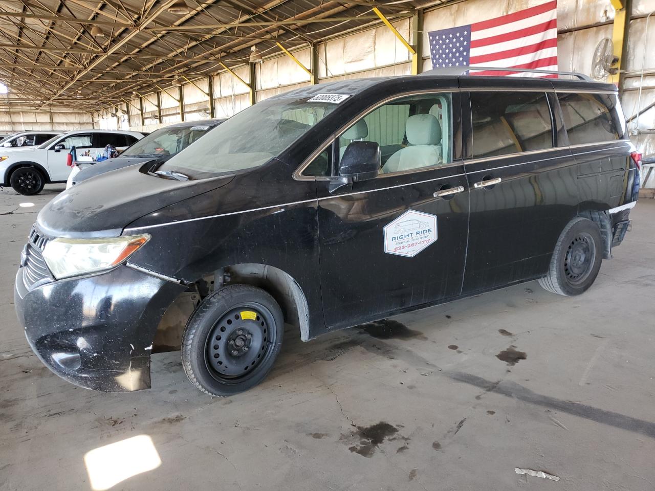 FairThis is a black 2012 NISSAN QUEST S with a REAR END and FRONT END damage. The vehicle starts and runs. The interior shows normal wear and tear. The wheels appear to be intact, and the lights and glasses seem to be in reasonable condition.