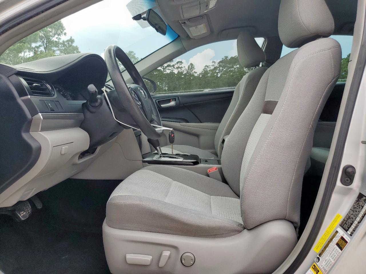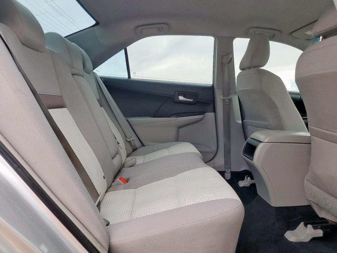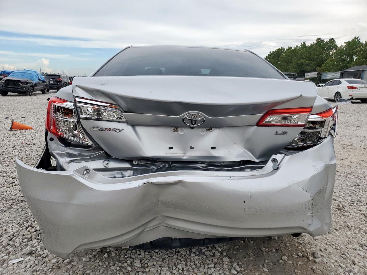 FairThe 2014 TOYOTA CAMRY LE, silver in color, exhibits significant rear-end damage, with the bumper, trunk, and rear body panels heavily impacted. Despite the substantial exterior damage, the interior appears to be in decent condition. The car is listed as Run & Drive Verified. The lights and glasses seem intact, but the vehicle's rear end shows clear signs of a collision. The wheels are functional.