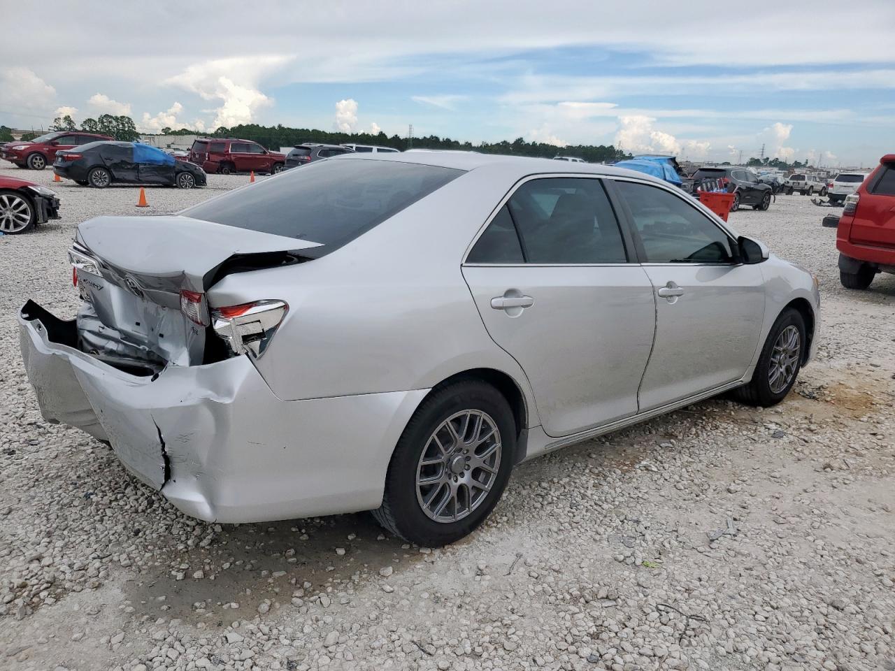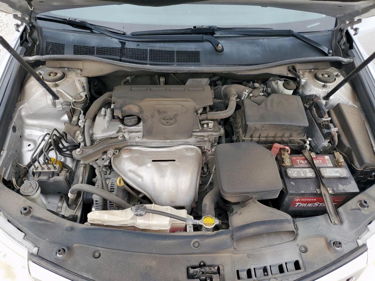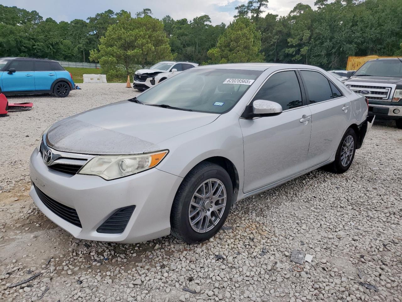 FairThe 2014 TOYOTA CAMRY LE, silver in color, exhibits significant rear-end damage, with the bumper, trunk, and rear body panels heavily impacted. Despite the substantial exterior damage, the interior appears to be in decent condition. The car is listed as Run & Drive Verified. The lights and glasses seem intact, but the vehicle's rear end shows clear signs of a collision. The wheels are functional.
