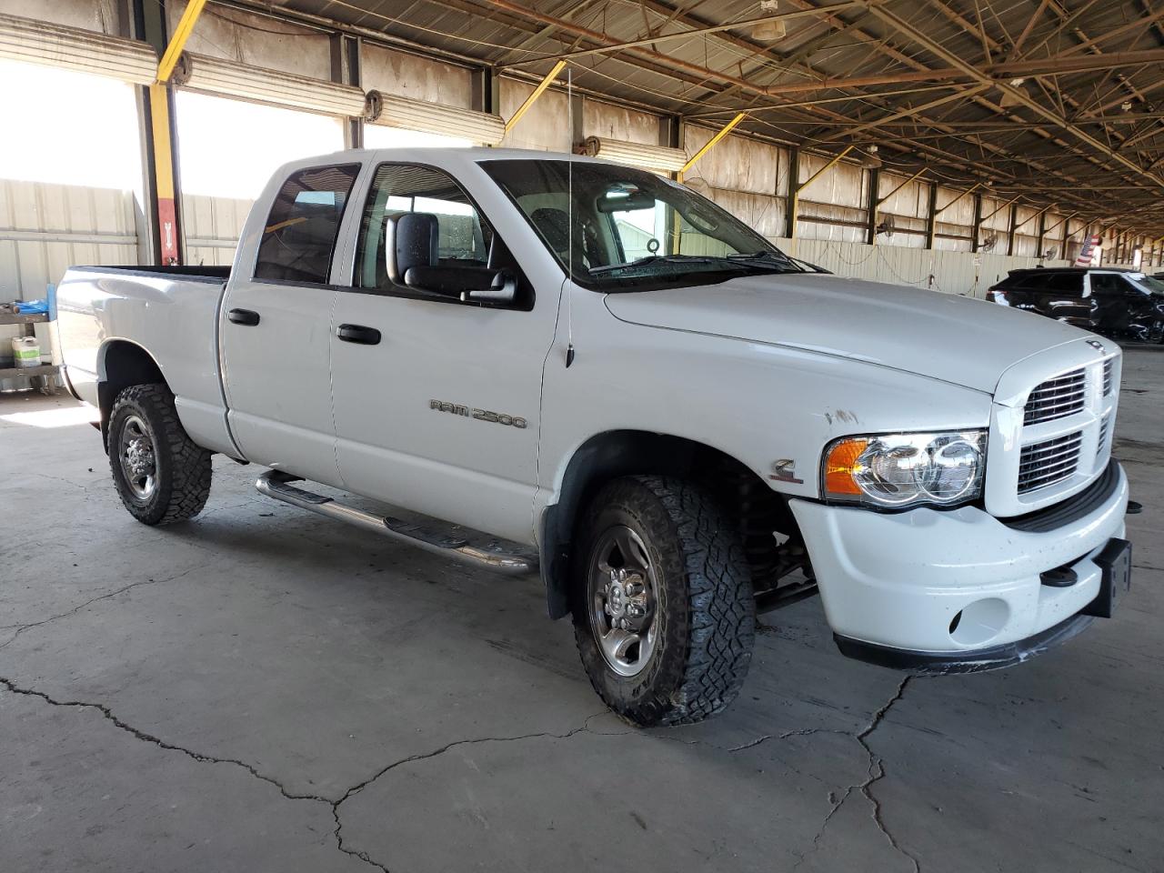 FairThe 2003 Dodge Ram 2500, a white pickup truck, shows signs of wear and tear. The primary damage is to the undercarriage, and secondary damage is present on the front end. The vehicle is listed as 'Run & Drive Verified'. The exterior condition is fair due to visible damage, while the interior also reflects wear. Overall, the truck is in fair condition, potentially requiring repairs, but is drivable.