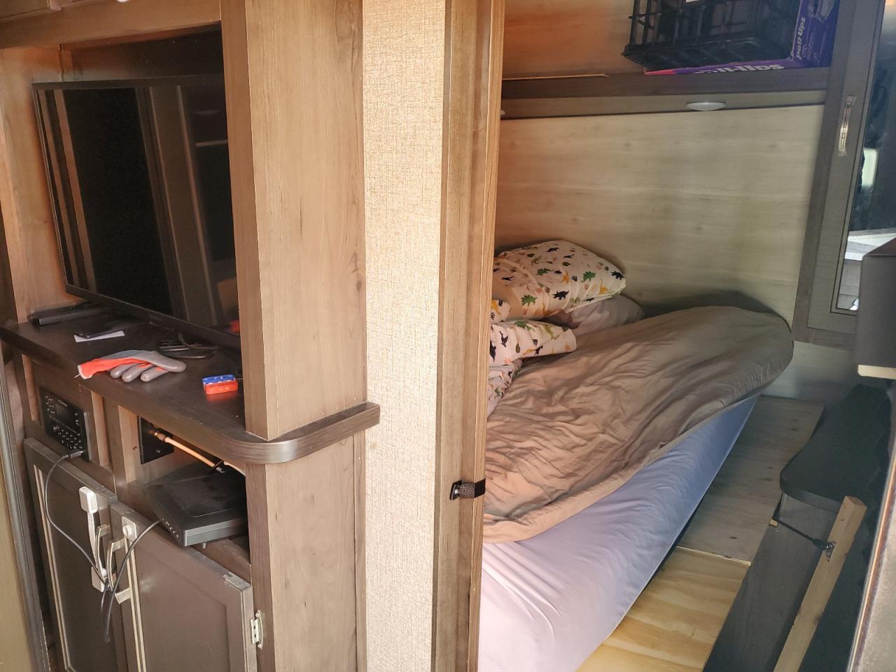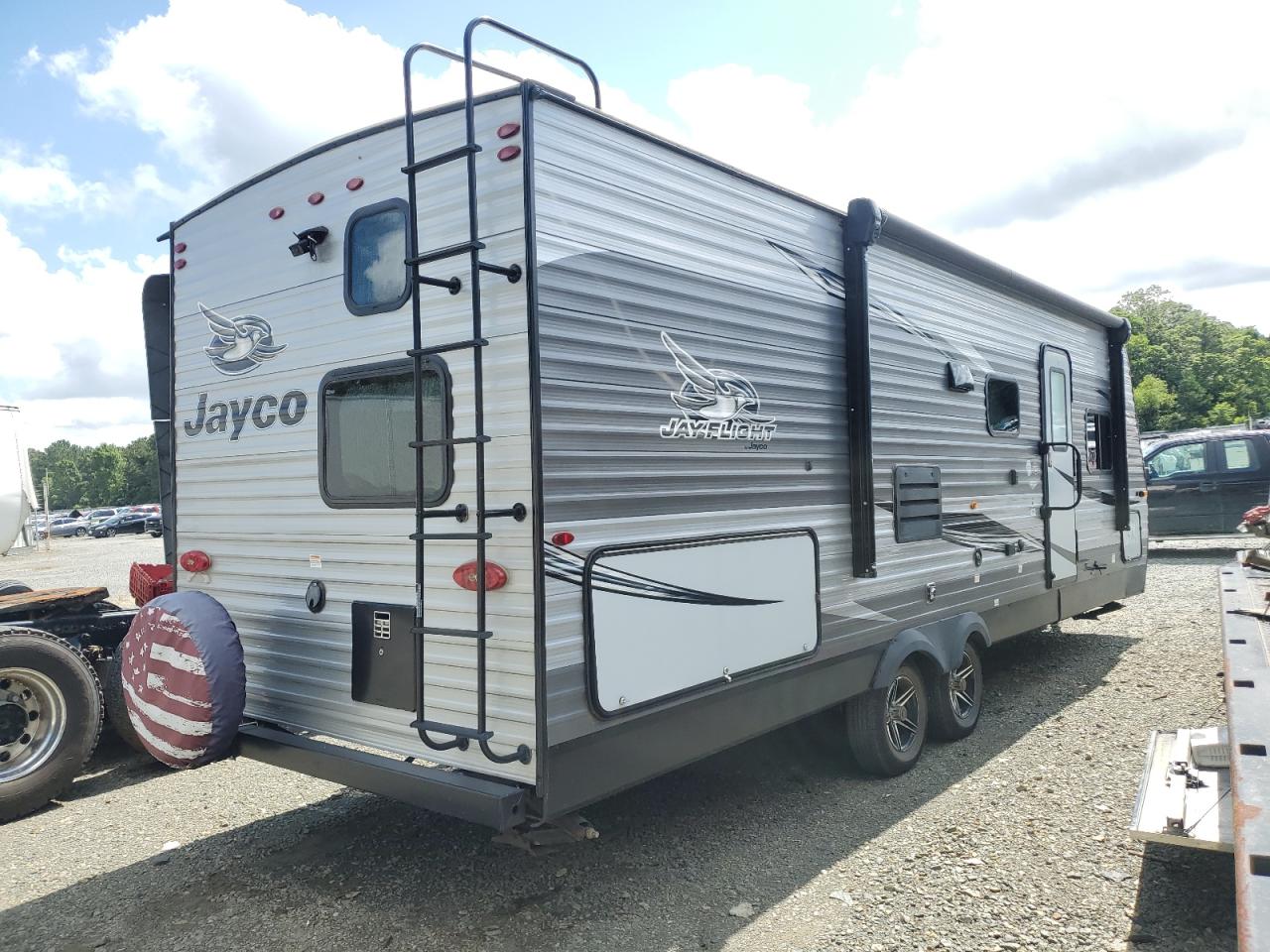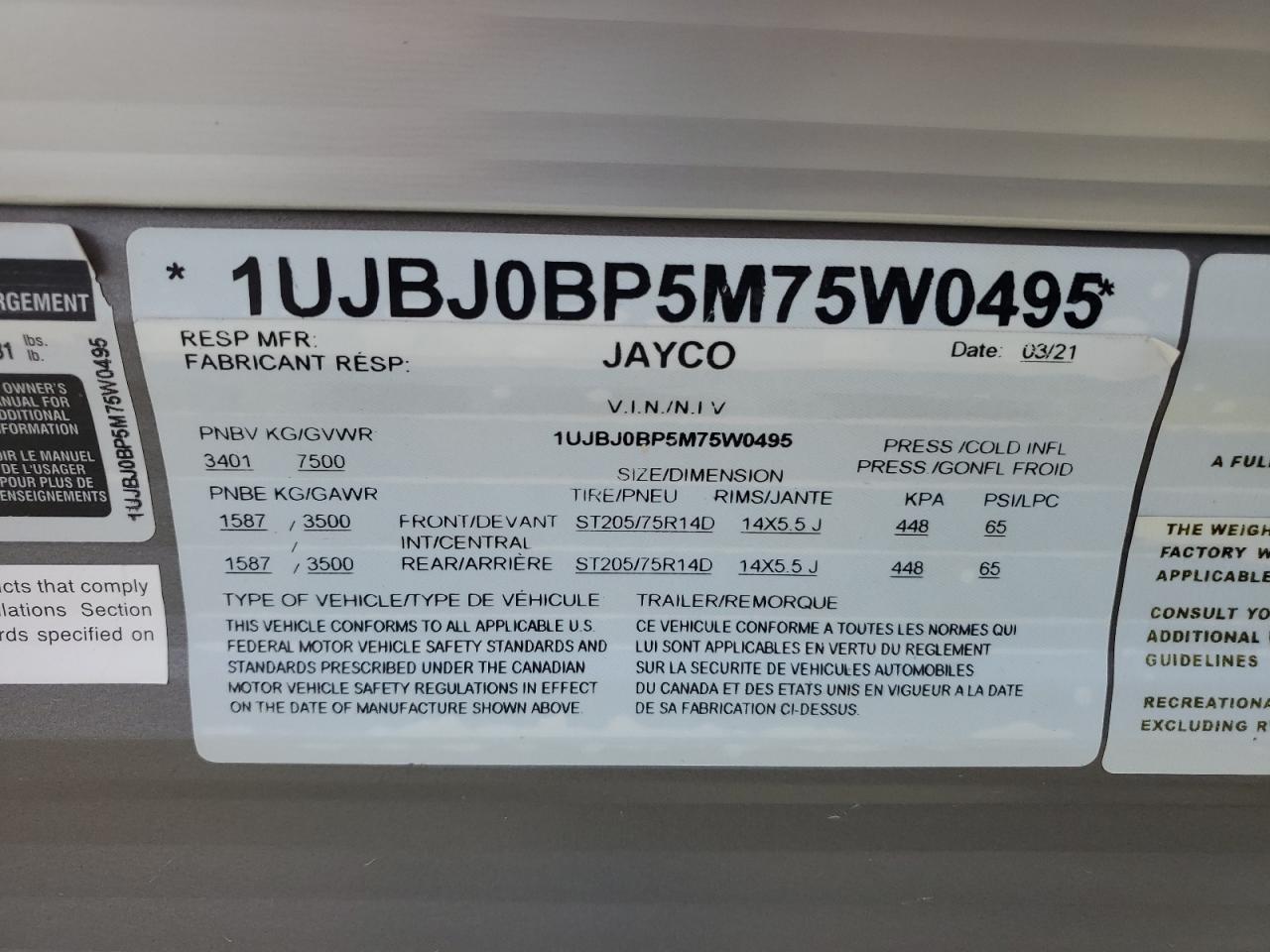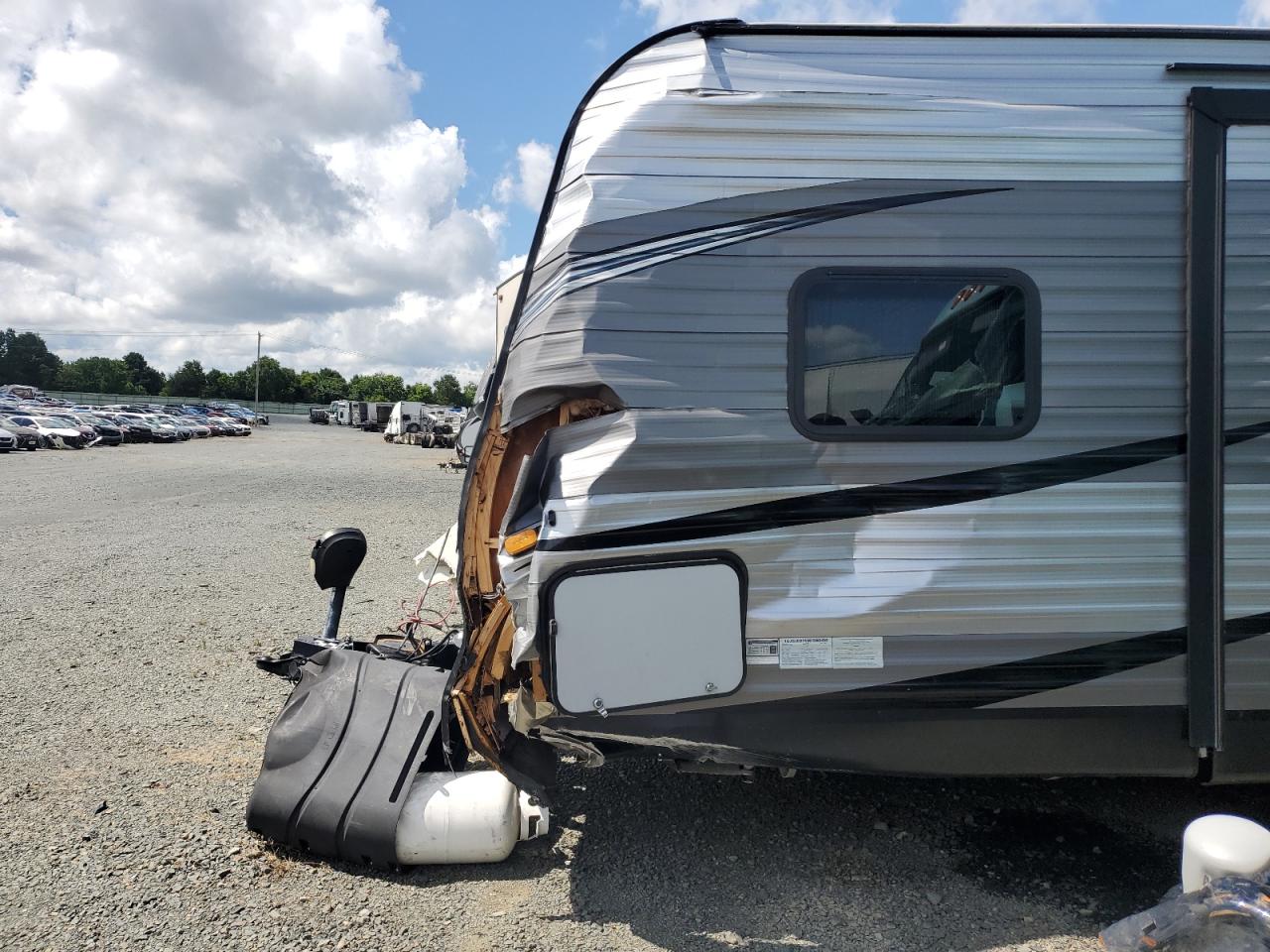 FairThe 2021 Jayco trailer exhibits significant damage. The primary damage is to the side, with substantial secondary damage to the front end, indicating a collision. The trailer's exterior is gray, and it shows clear signs of impact. The interior appears to have damage as well. The trailer is not drivable.