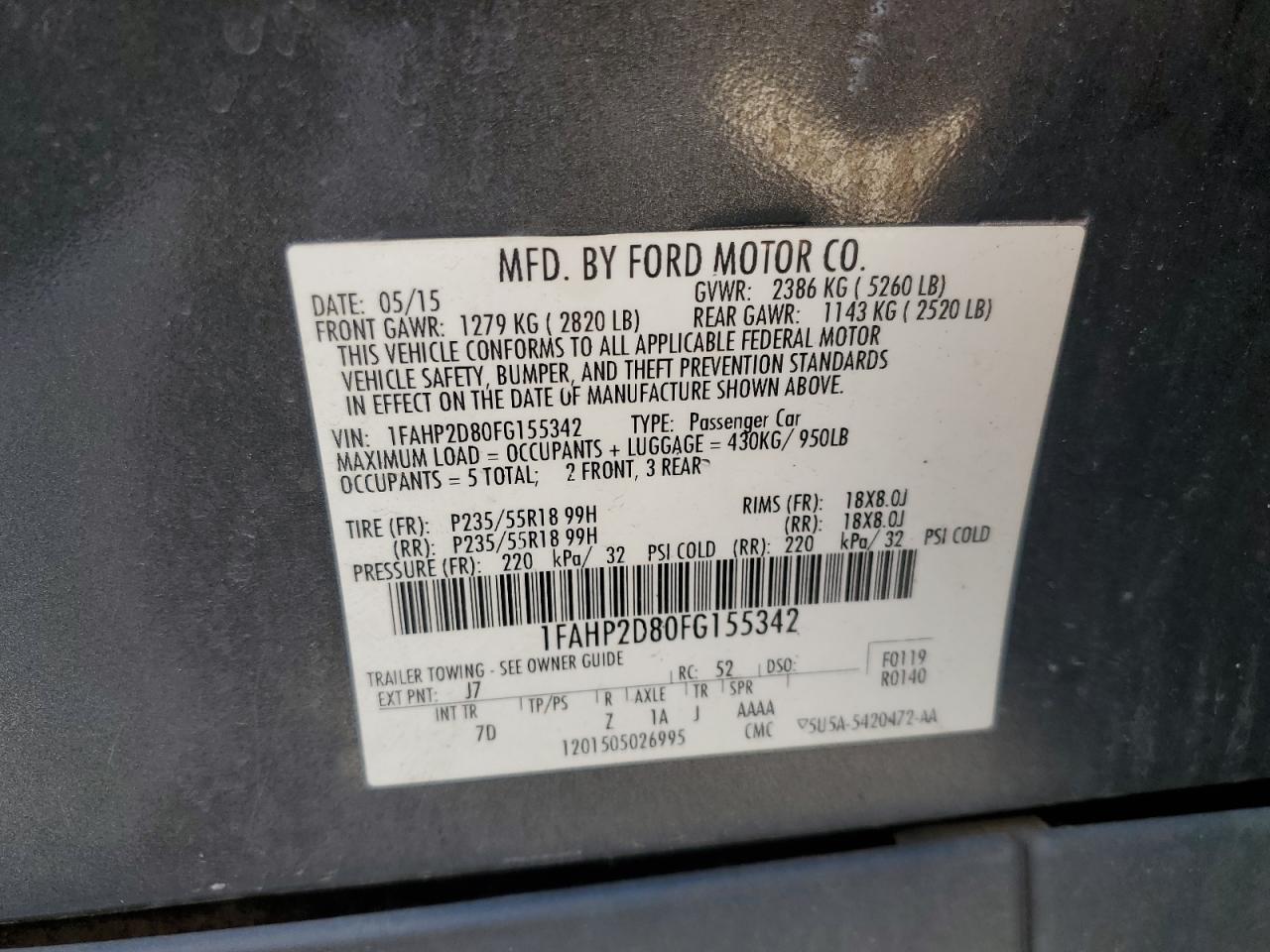 FairThis is a 2015 Ford Taurus. The primary damage is to the side of the vehicle, with secondary damage including minor dents and scratches. The car is gray. It is a "Run & Drive Verified" vehicle. The images show damage to the side body panels, indicating a moderate level of damage. The wheels appear to be intact, and the lights and glass are in good condition. The interior shows signs of wear, including interior damage. The car is drivable.