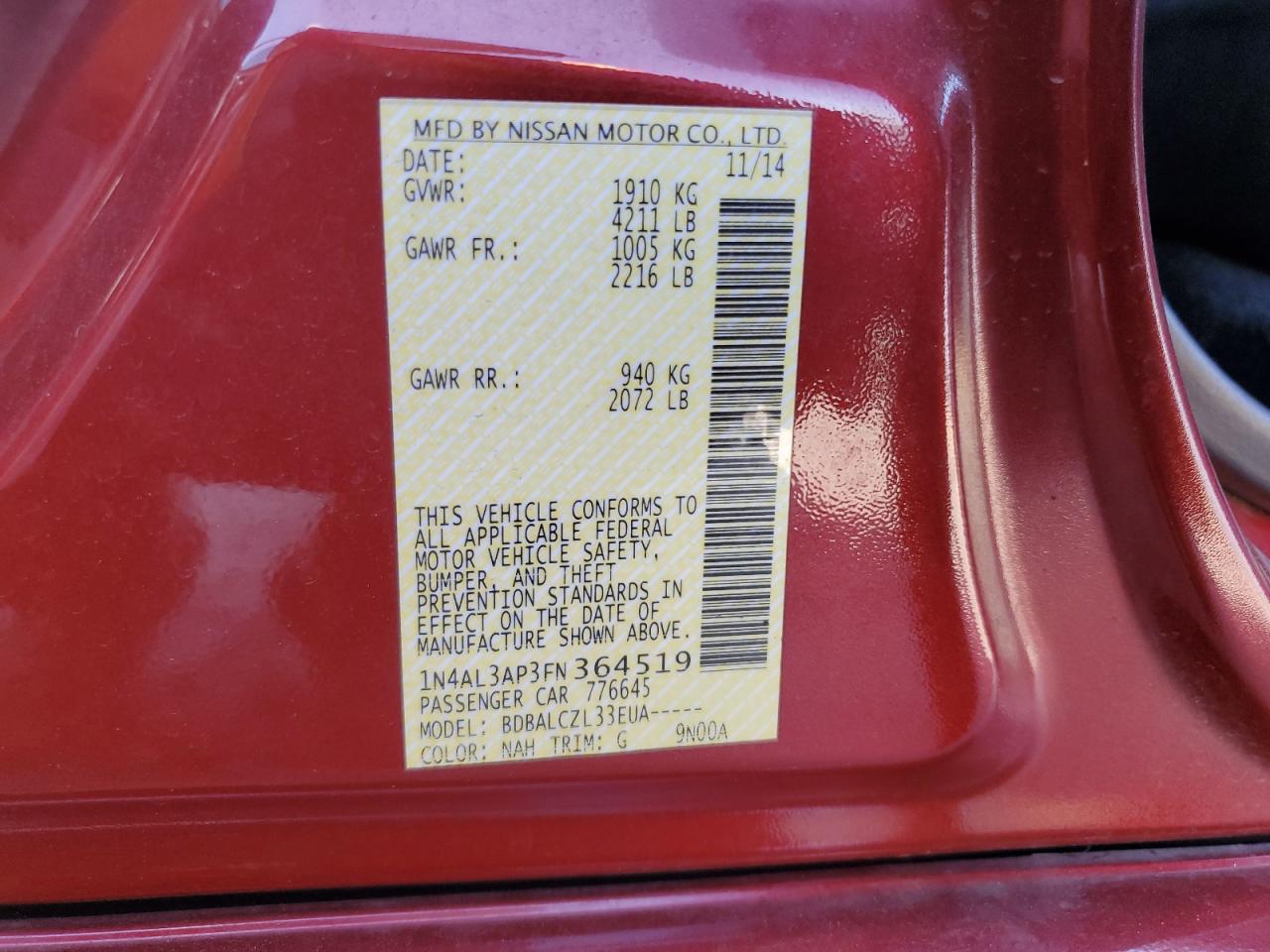 1N4AL3AP3FN364519Final Bid