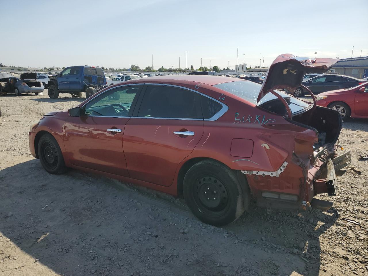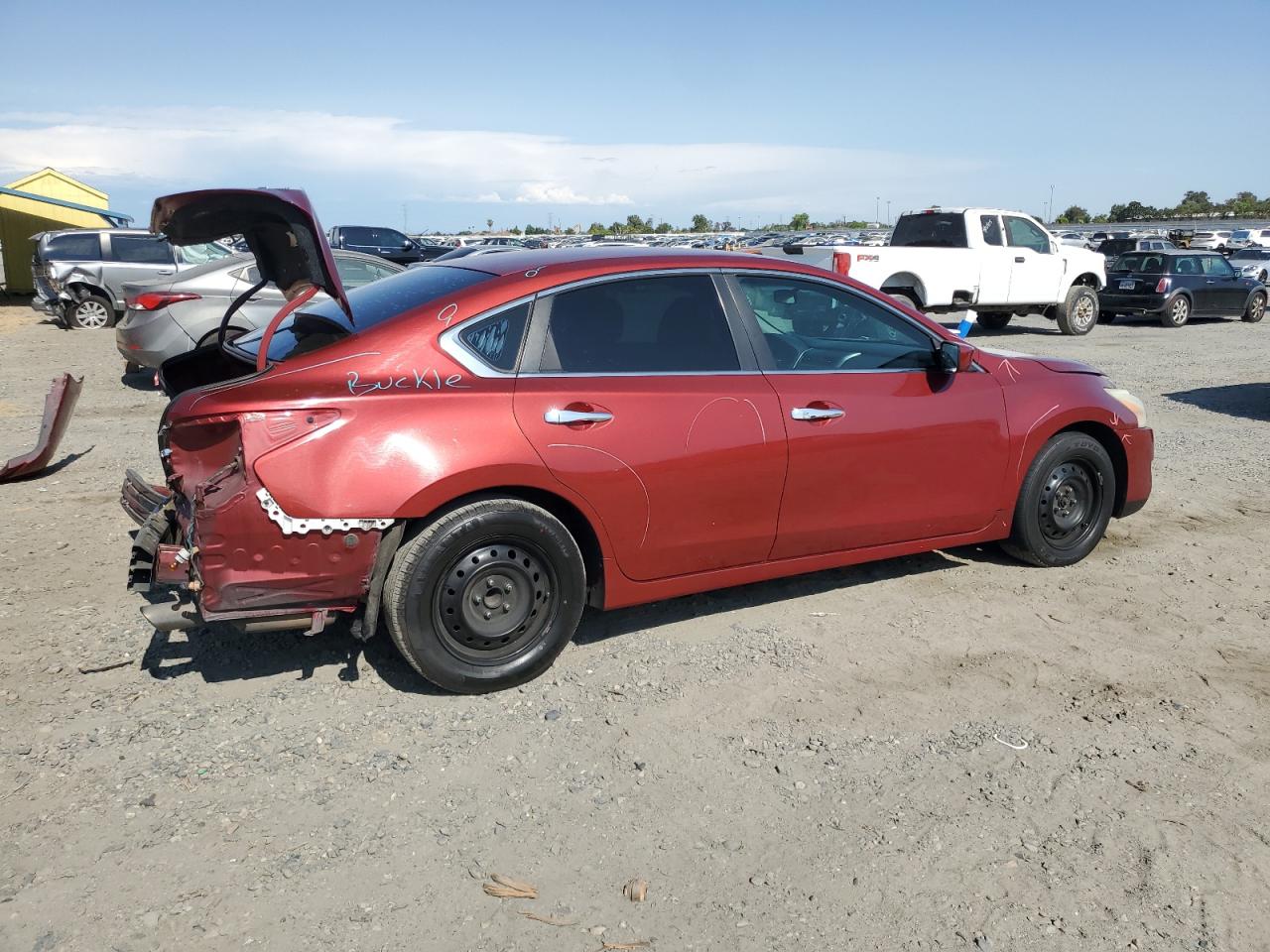 FairThe 2015 Nissan Altima 2.5 in burgundy exhibits significant rear-end damage, impacting its exterior condition. Despite this, the interior shows less severe wear, indicating a better interior state. The car is drivable. Summary: Damage: The primary damage is rear-end body damage. No mechanical issues were observed. Overall Condition: Fair, considering the significant rear-end damage. Keywords: Search optimized keywords: Burgundy Nissan Altima 2015, rear-end damage, body damage, drivable condition, interior condition, Fair condition, repairable damage, salvage title potential, damaged Altima, used car for sale. Vehicle Damage Category: Body