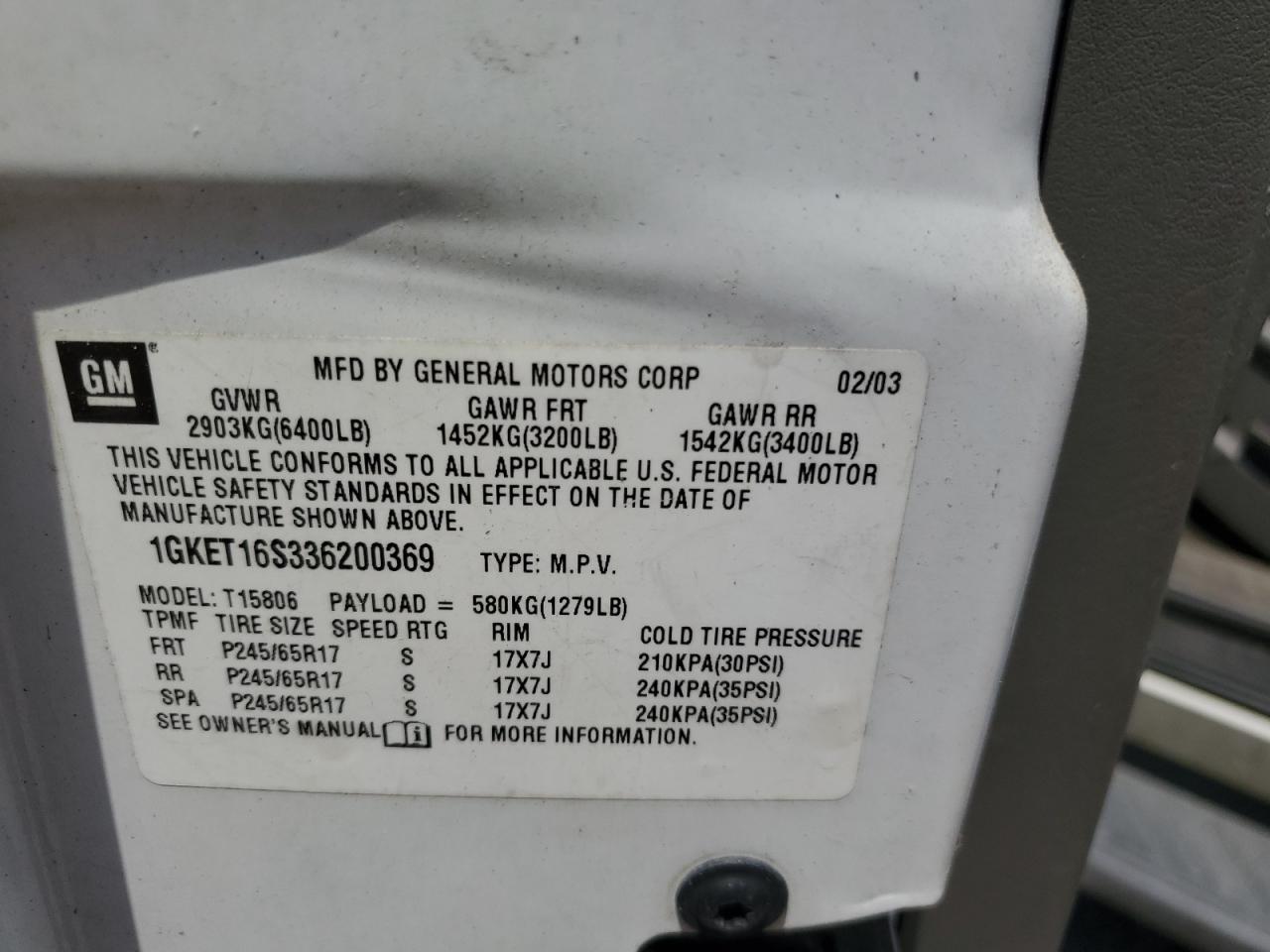 GoodThis is a white 2003 GMC Envoy XL. It has normal wear and tear, with no significant secondary damage. The car starts and runs, verified by the 'Run & Drive Verified' code.