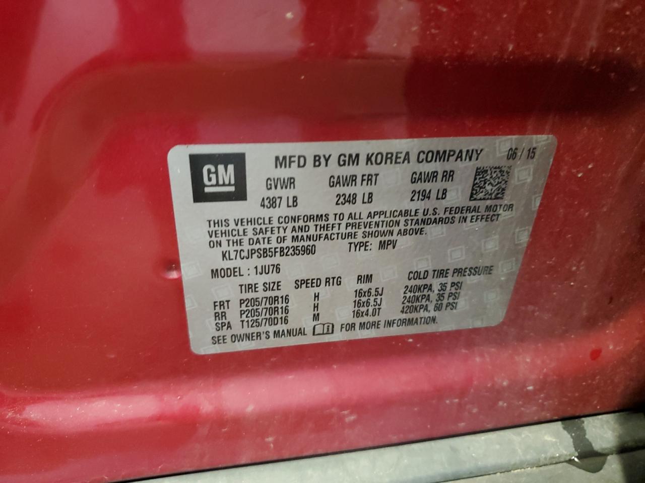GoodThis is a 2015 CHEVROLET TRAX 1LS. The primary damage consists of MINOR DENT/SCRATCHES, with no secondary damage. The car is red and is a Run & Drive Verified vehicle. The images show a vehicle with some visible imperfections. The wheels and glasses appear to be in reasonable condition. The interior shows some signs of wear and tear. Based on the images, the car appears to be drivable.