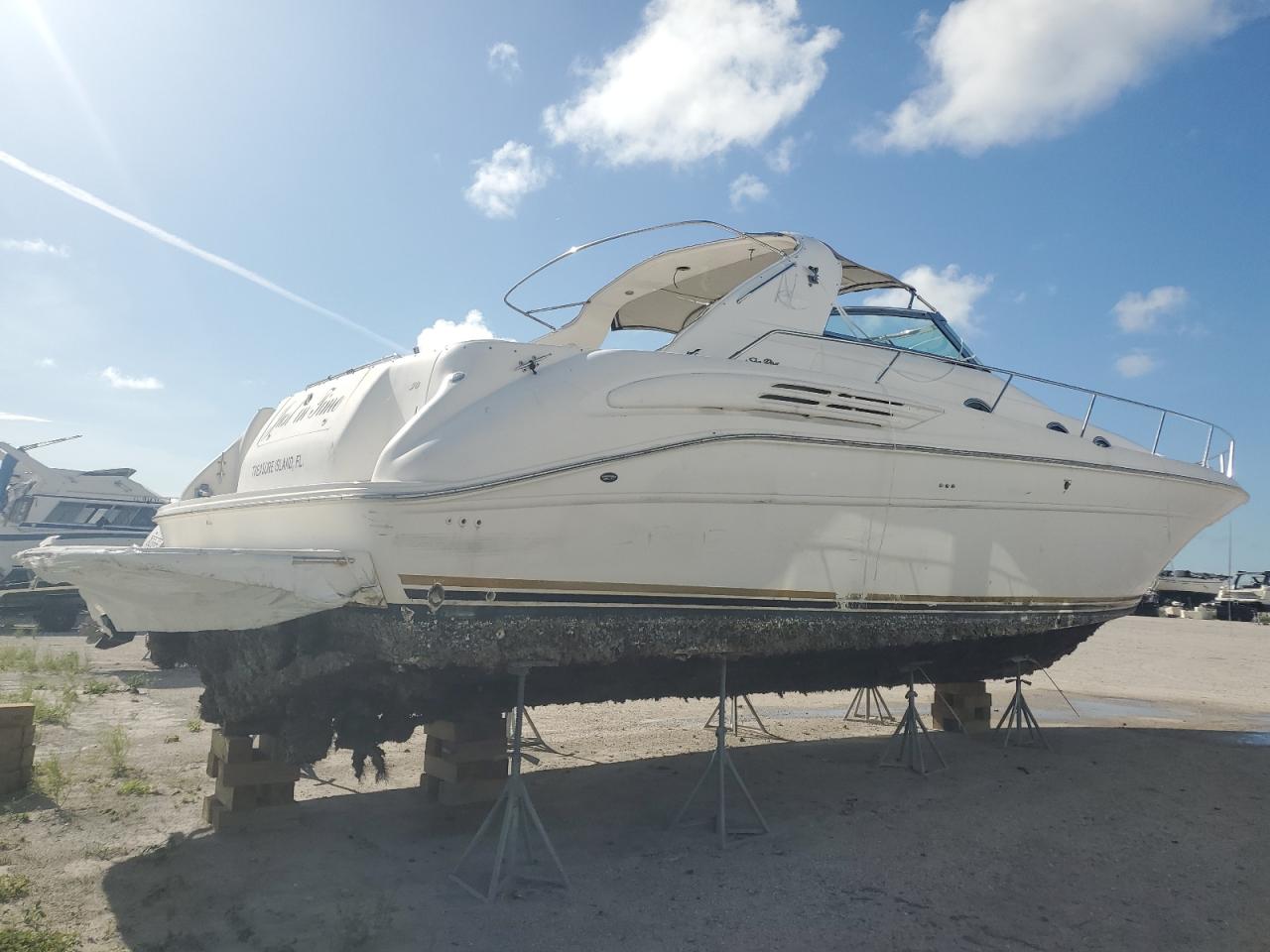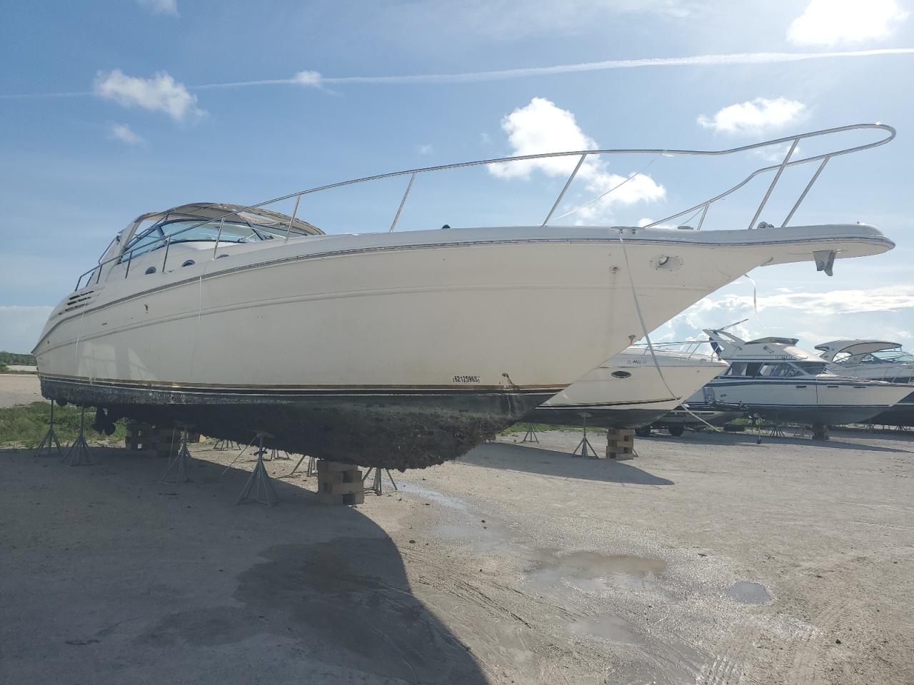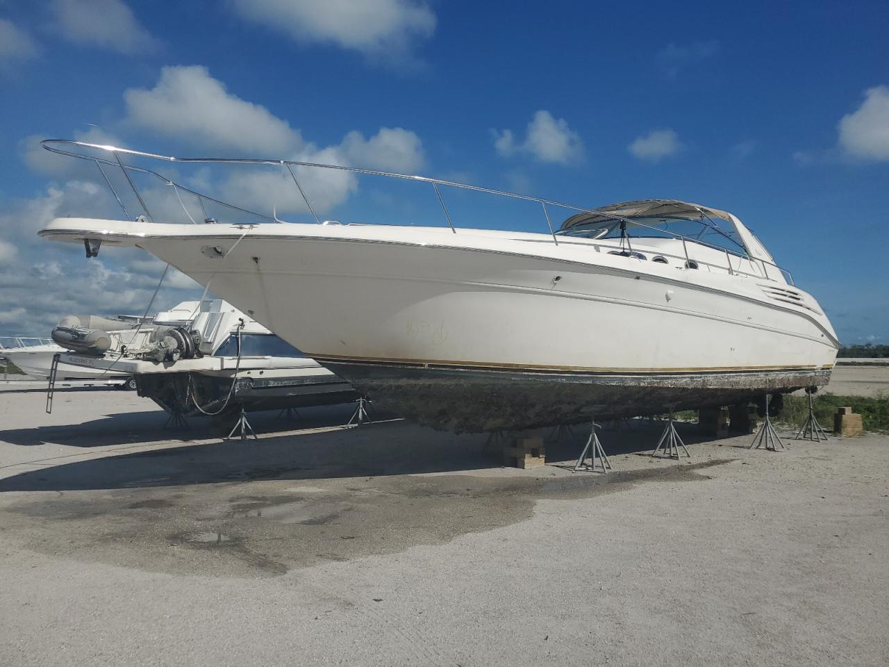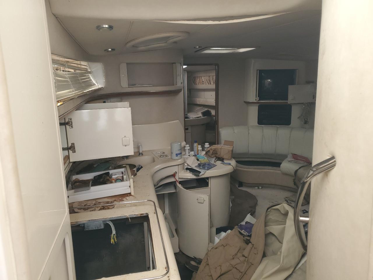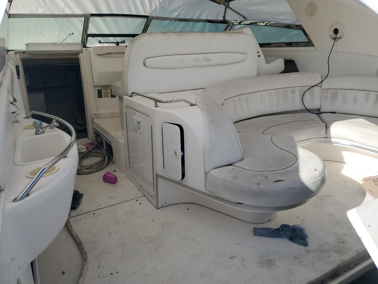 FairThe 1996 SEA RAY BOAT shows signs of vandalism and minor scratches. The boat's white exterior exhibits moderate damage, with the interior also showing signs of wear and vandalism. The engine bay reveals mechanical issues, and the dashboard and cabin require attention. The boat requires significant repairs.