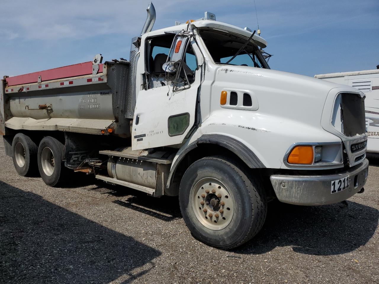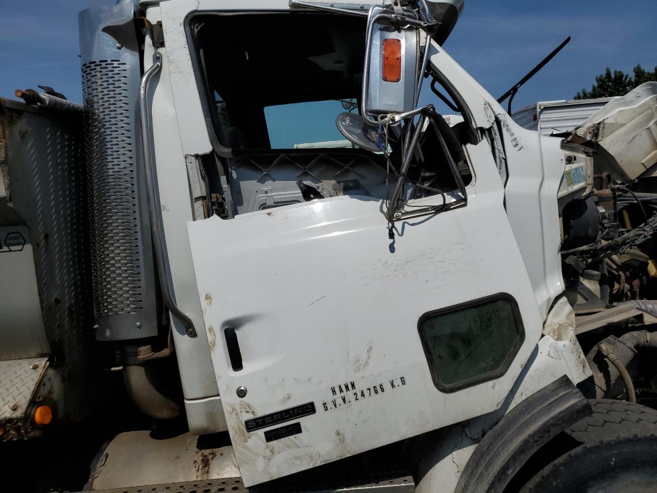 FairThe 2006 STERLING TRUCK L 9500, is a white truck with significant damage. The primary damage is to the side, with secondary damage to the front end. The truck's cab has sustained heavy damage, including a crushed roof and compromised doors. The interior shows damage, including a damaged dashboard. Wheels appear to be functional, but the overall condition is poor, suggesting extensive repairs are needed. The truck may not be drivable.