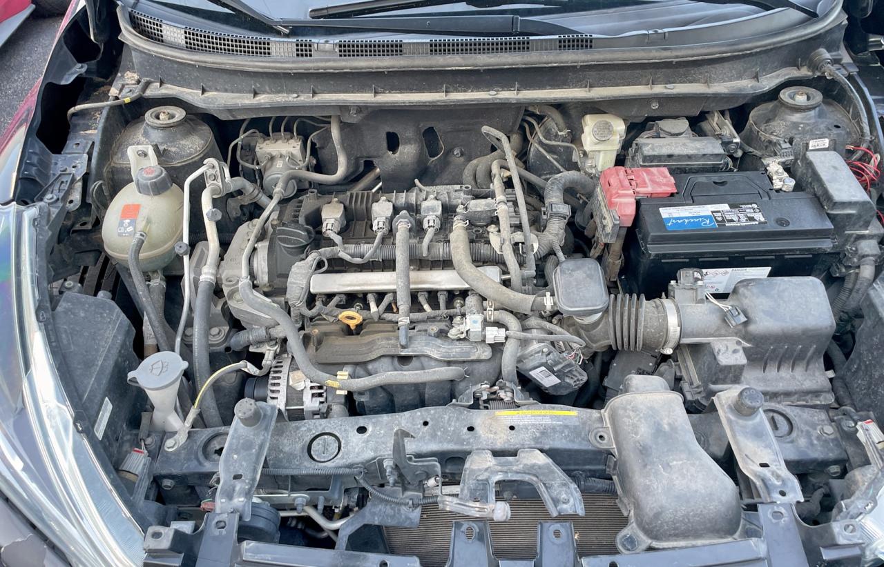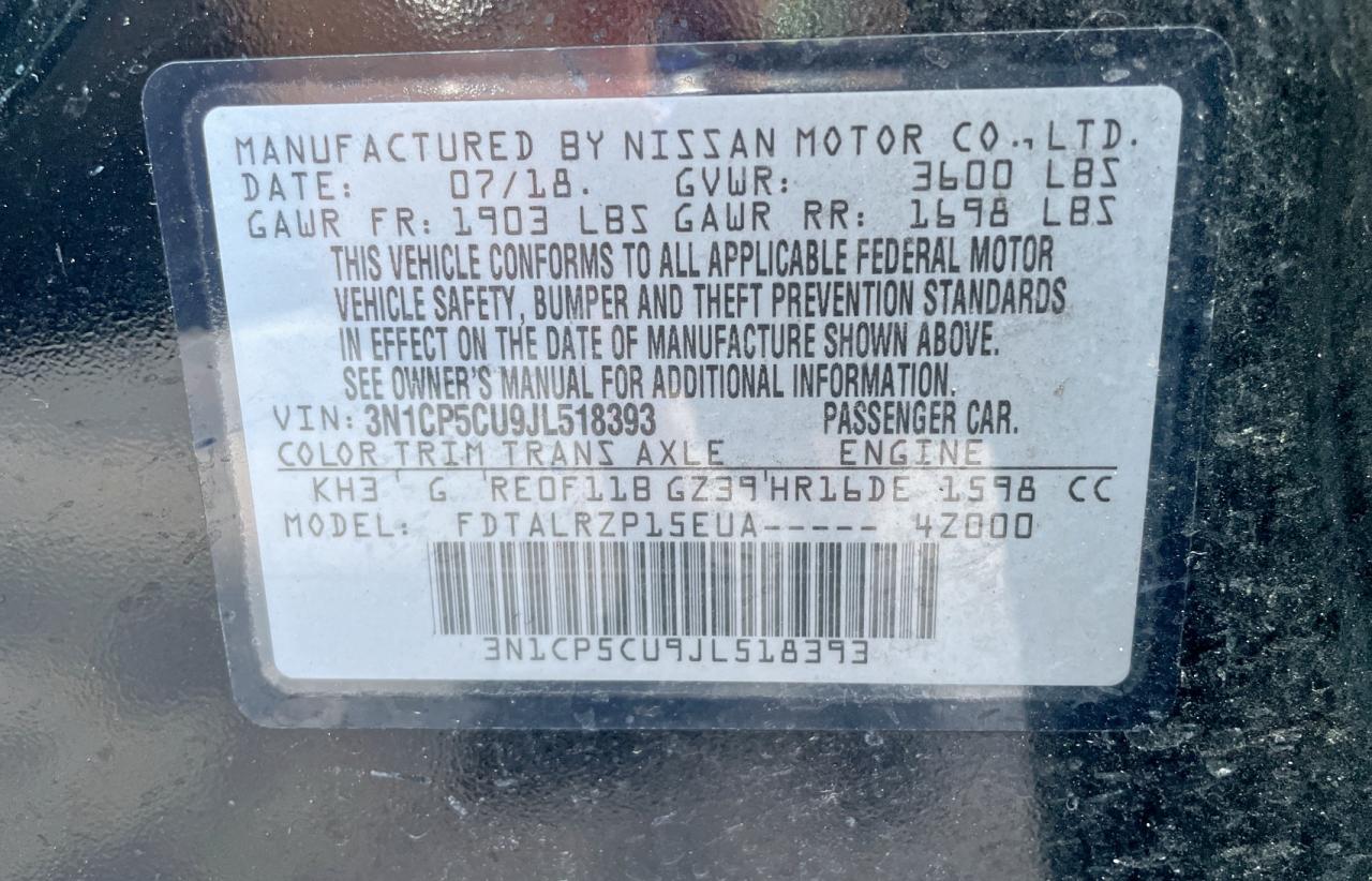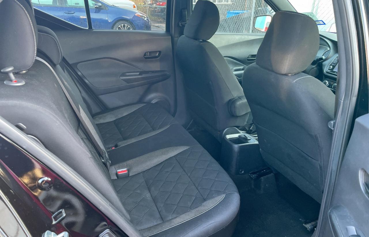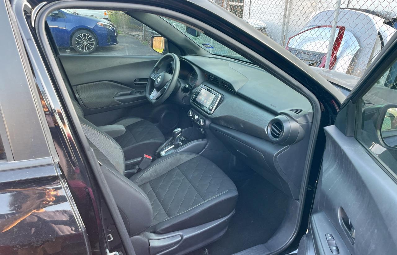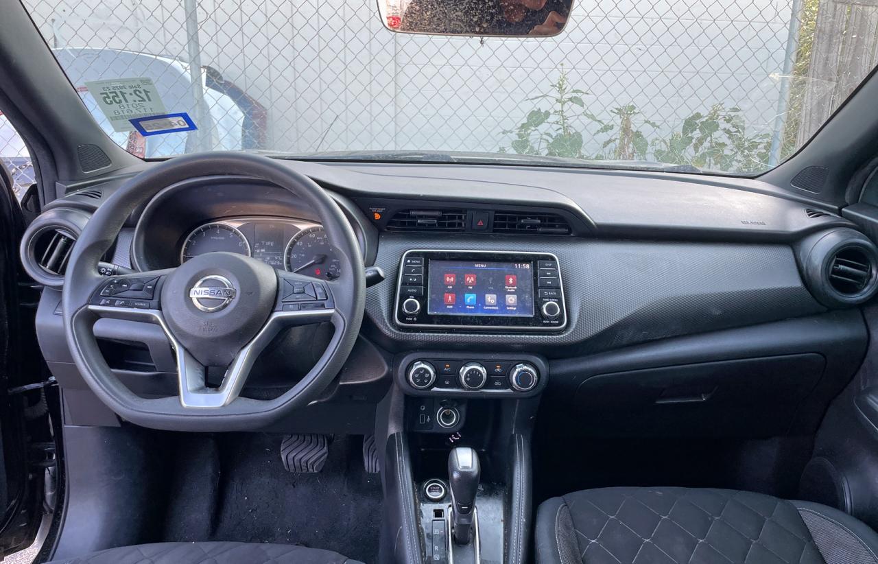 FairThis is a black 2018 Nissan Kicks S with front-end damage and partial repair, currently in a run-and-drive state. The exterior condition is fair, showing moderate damage. The interior is in good condition. The car has damage to its front end and body panels, particularly evident in the front. The lights and glasses appear to be intact, but the front end shows considerable damage. The car is drivable and requires some repairs.