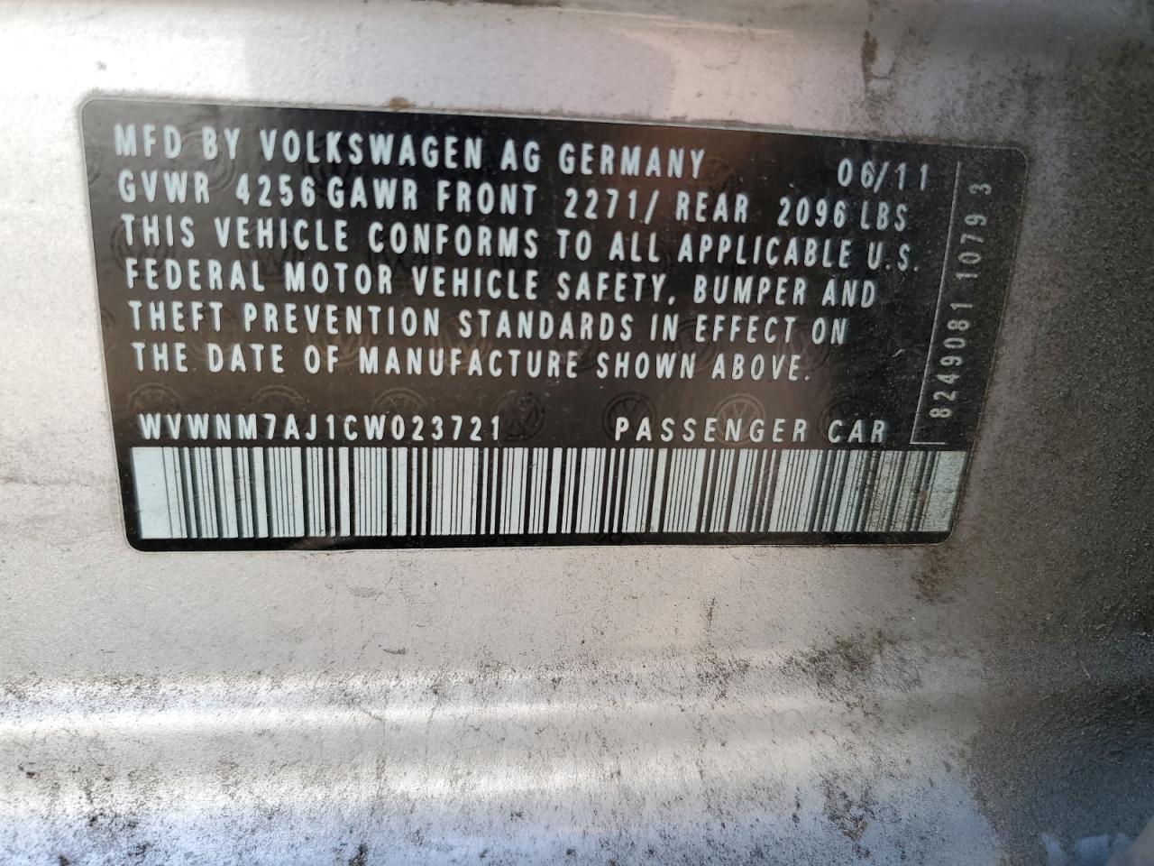 WVWNM7AJ1CW023721Final Bid