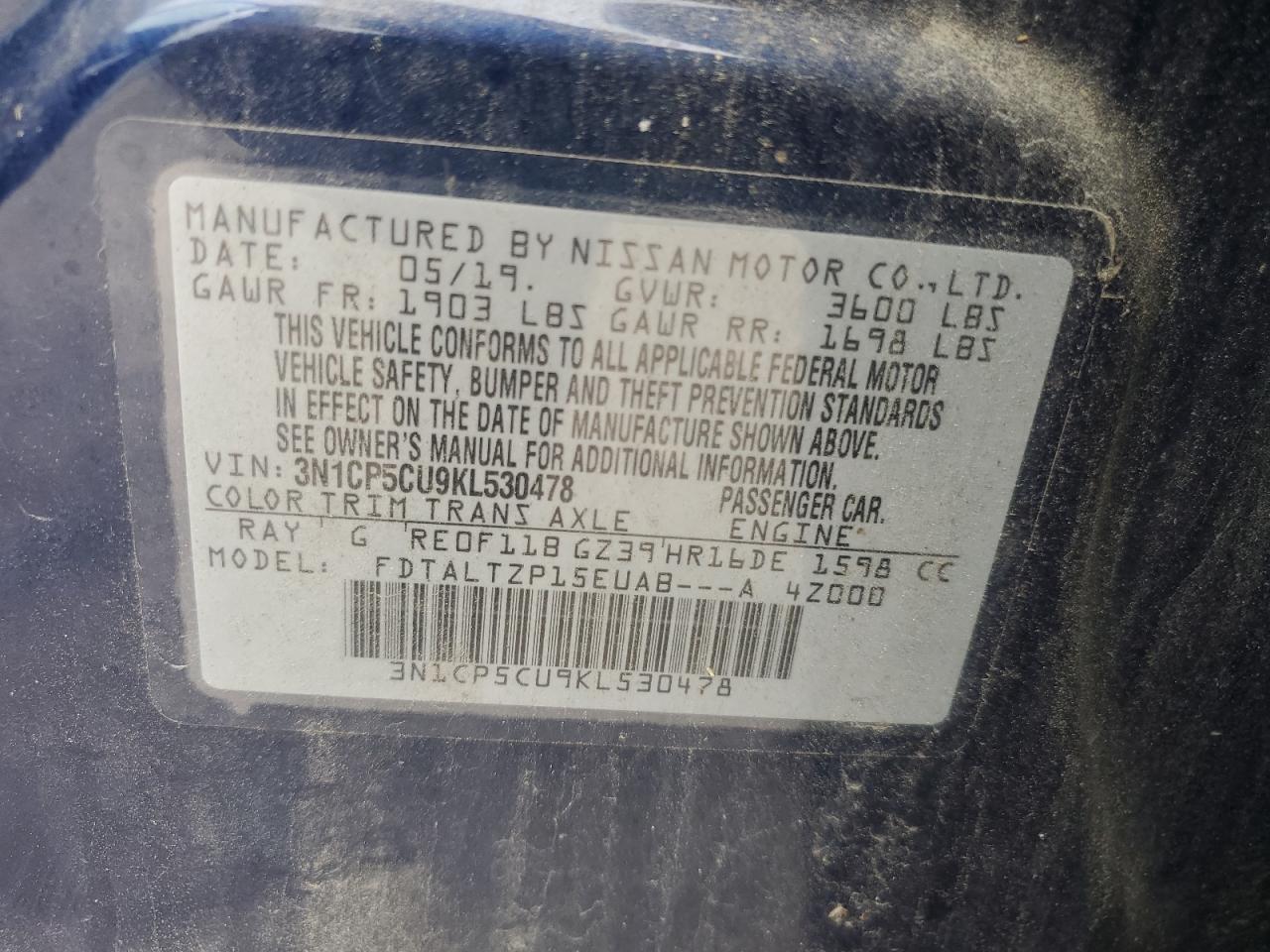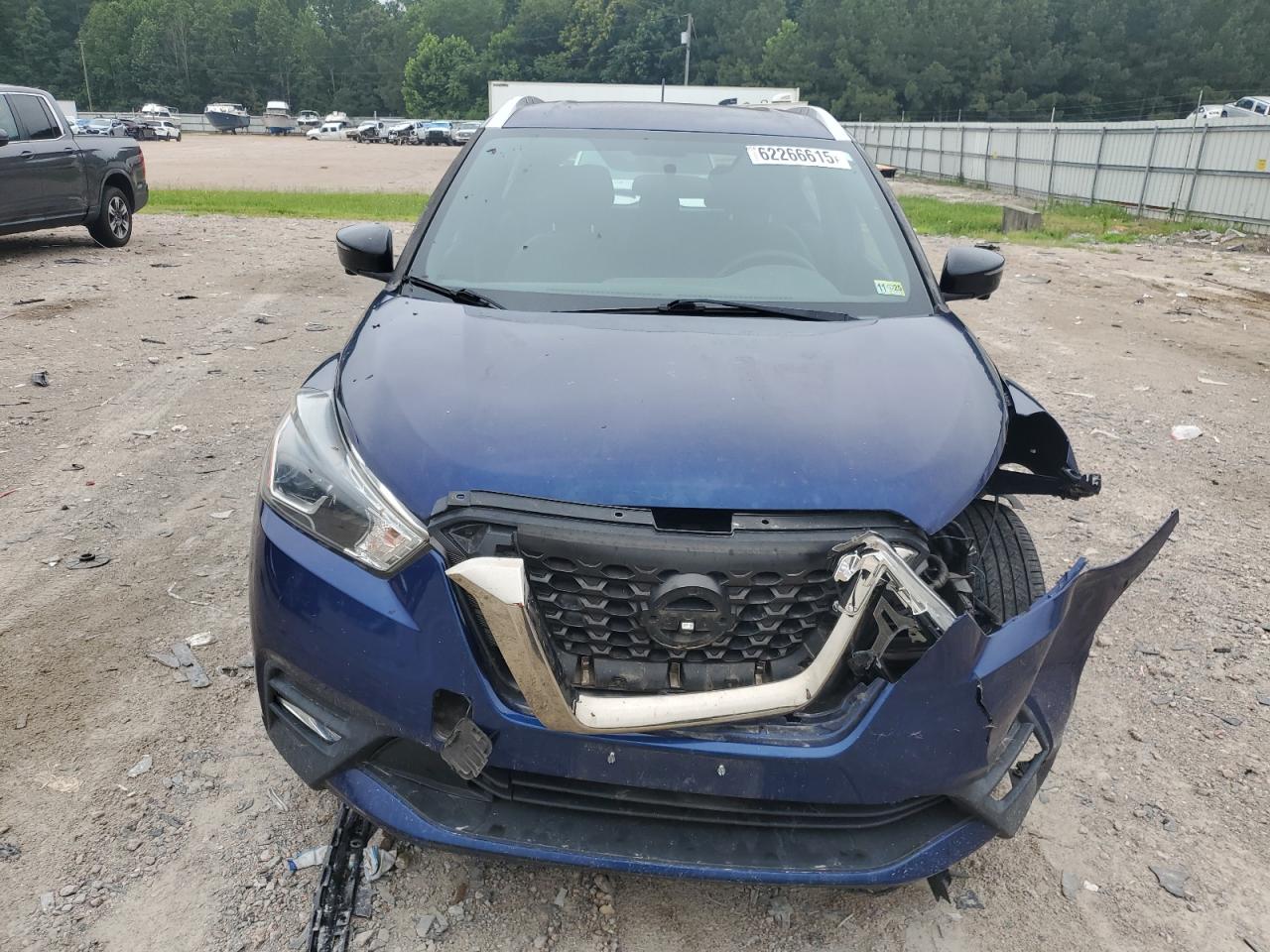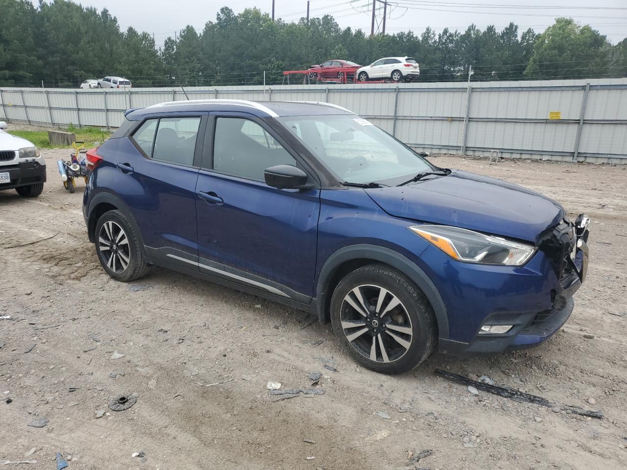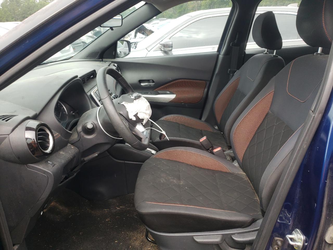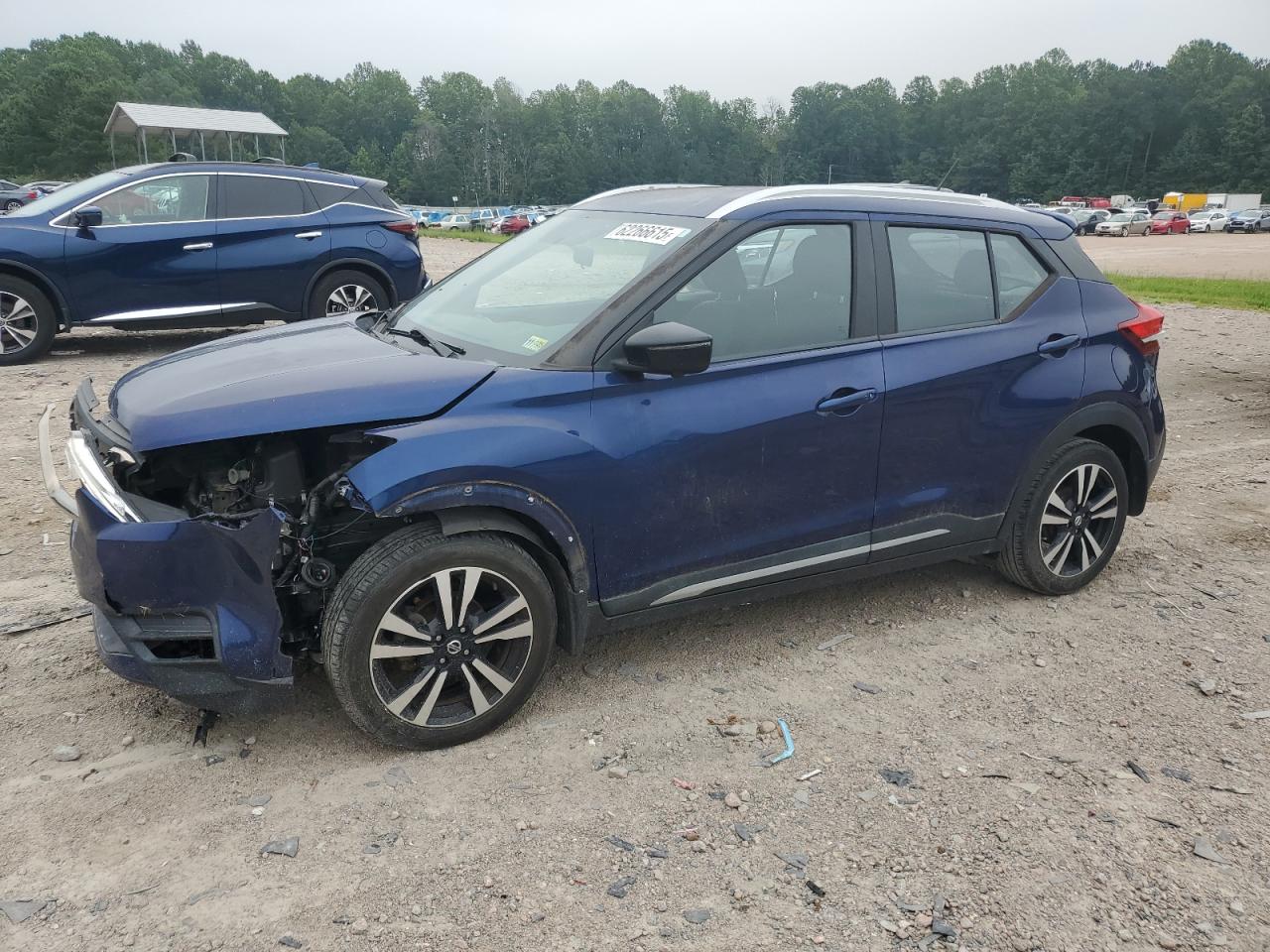 FairThis is a blue 2019 Nissan Kicks SR with front-end damage. The vehicle shows significant damage to the front, including the bumper, hood, and likely the front-end structure. Despite the front-end collision, the rest of the body appears to be in relatively good condition. The interior shows signs of wear and tear, but is generally in good condition. The airbags have deployed, indicating a significant impact. The wheels appear to be in good condition, and the glasses are intact. It's important to note that the vehicle is likely not drivable, and requires repair to the front-end components.