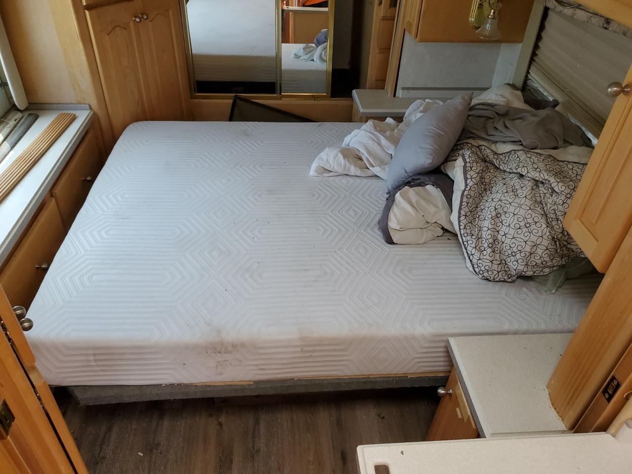 GoodThe vehicle is a 2003 FREIGHTLINER CHASSIS X RV, featuring a two-tone color scheme. It has sustained minor dents and scratches. The vehicle is verified as Run & Drive. The exterior exhibits minor/moderate visible damage. The interior shows minor visible damage, consistent with its age and mileage.