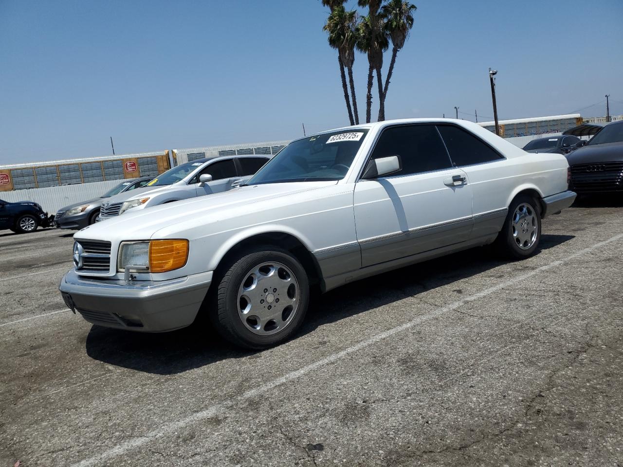 Good1991 Mercedes-Benz 560 SEC, white, Run & Drive Verified. This classic coupe presents with minor dents and scratches, indicating primarily cosmetic damage. The vehicle's overall condition is 'Good', with no secondary damages noted. The interior shows wear, but is in good condition, the car is drivable and well maintained.