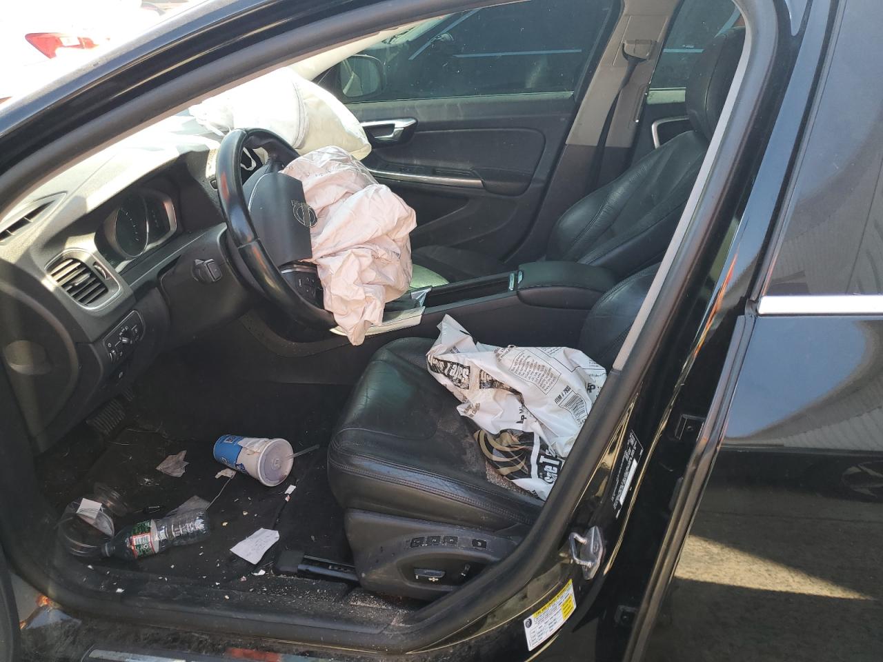FairThis is a 2014 VOLVO S60 T5 in black with FRONT END damage. The vehicle's exterior shows moderate damage, and the interior has significant damage including deployed airbags. This car needs considerable repair and is not drivable. Keywords: damaged Volvo, crashed S60, salvage car, frontal collision, interior damage, airbag deployed, repairable, not drivable.