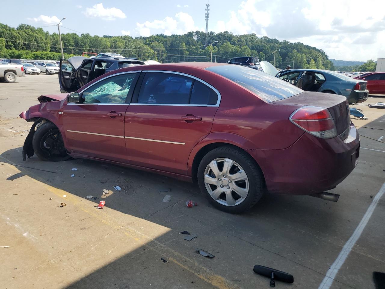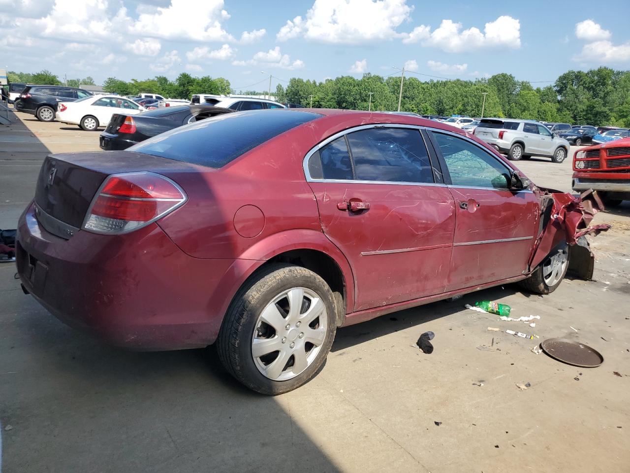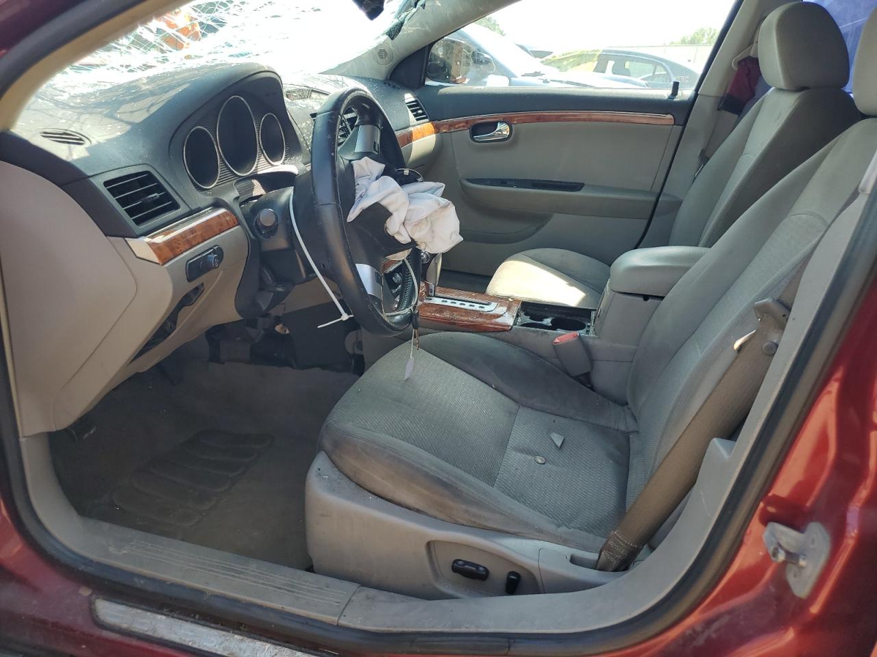 PoorThe 2008 SATURN AURA XE has sustained significant front-end damage, with the front of the vehicle severely impacted, including the front end, hood, lights and windshield. The vehicle's red exterior shows extensive damage. The interior exhibits wear and possible airbag deployment. The car is not drivable.