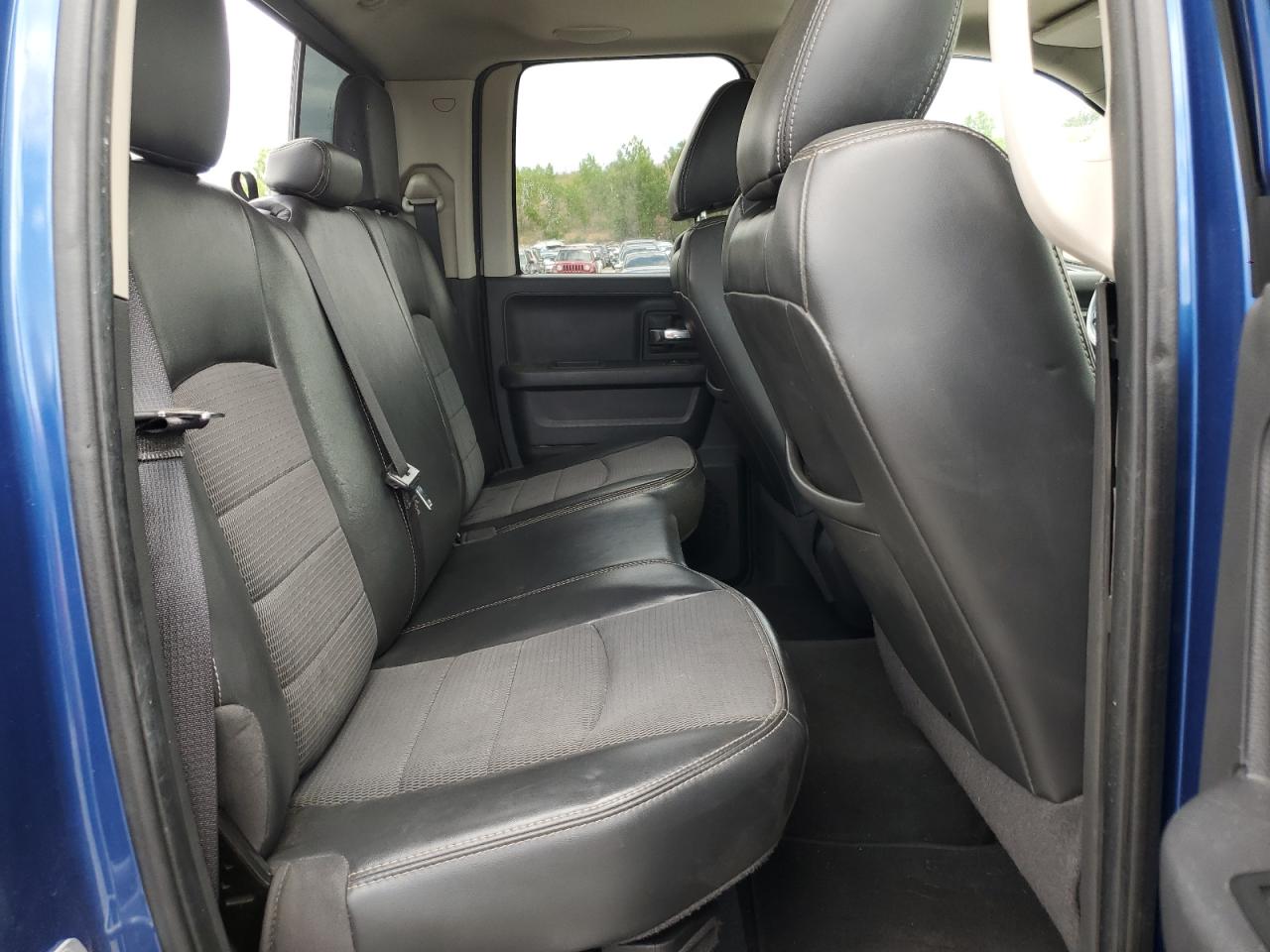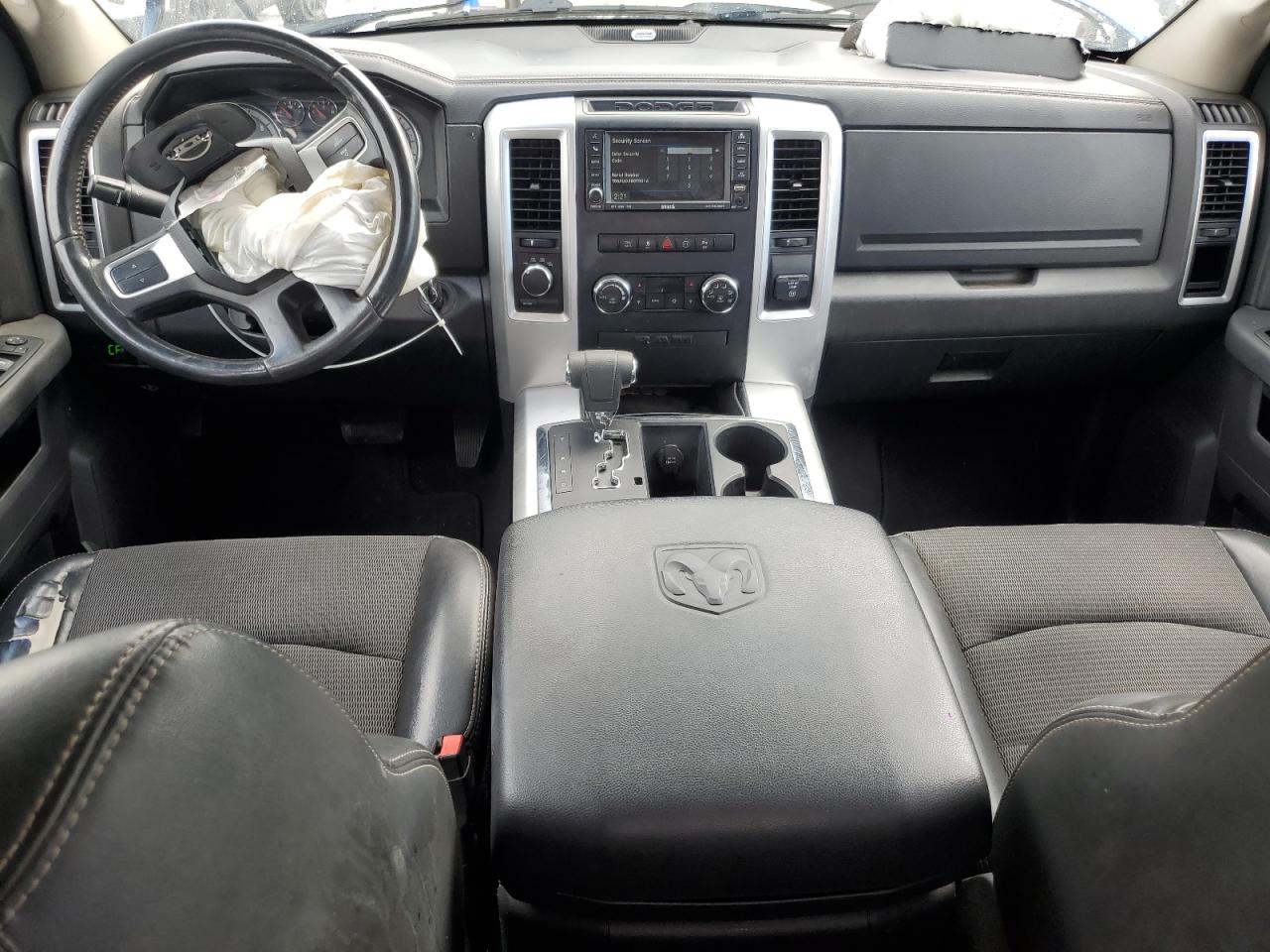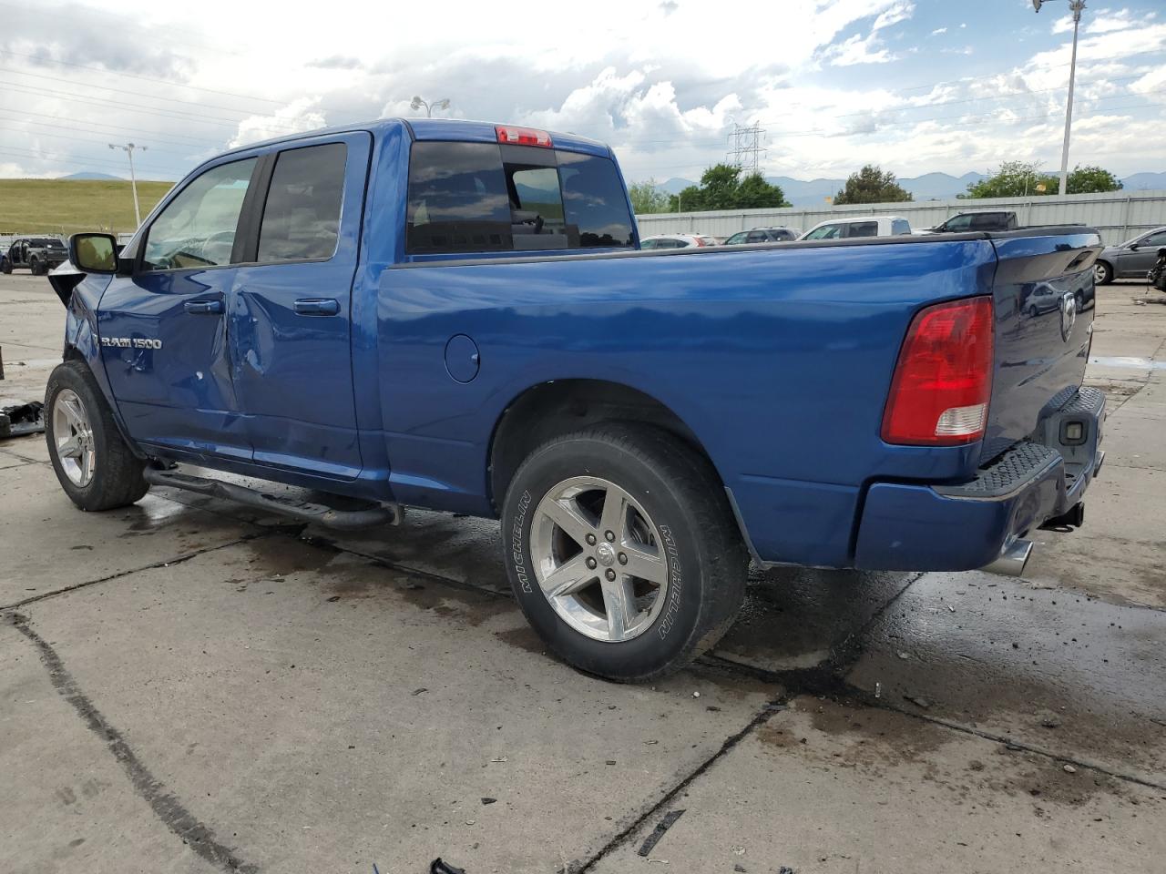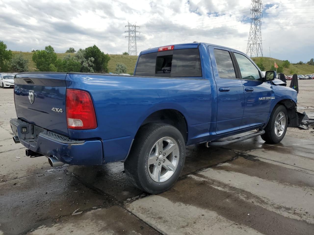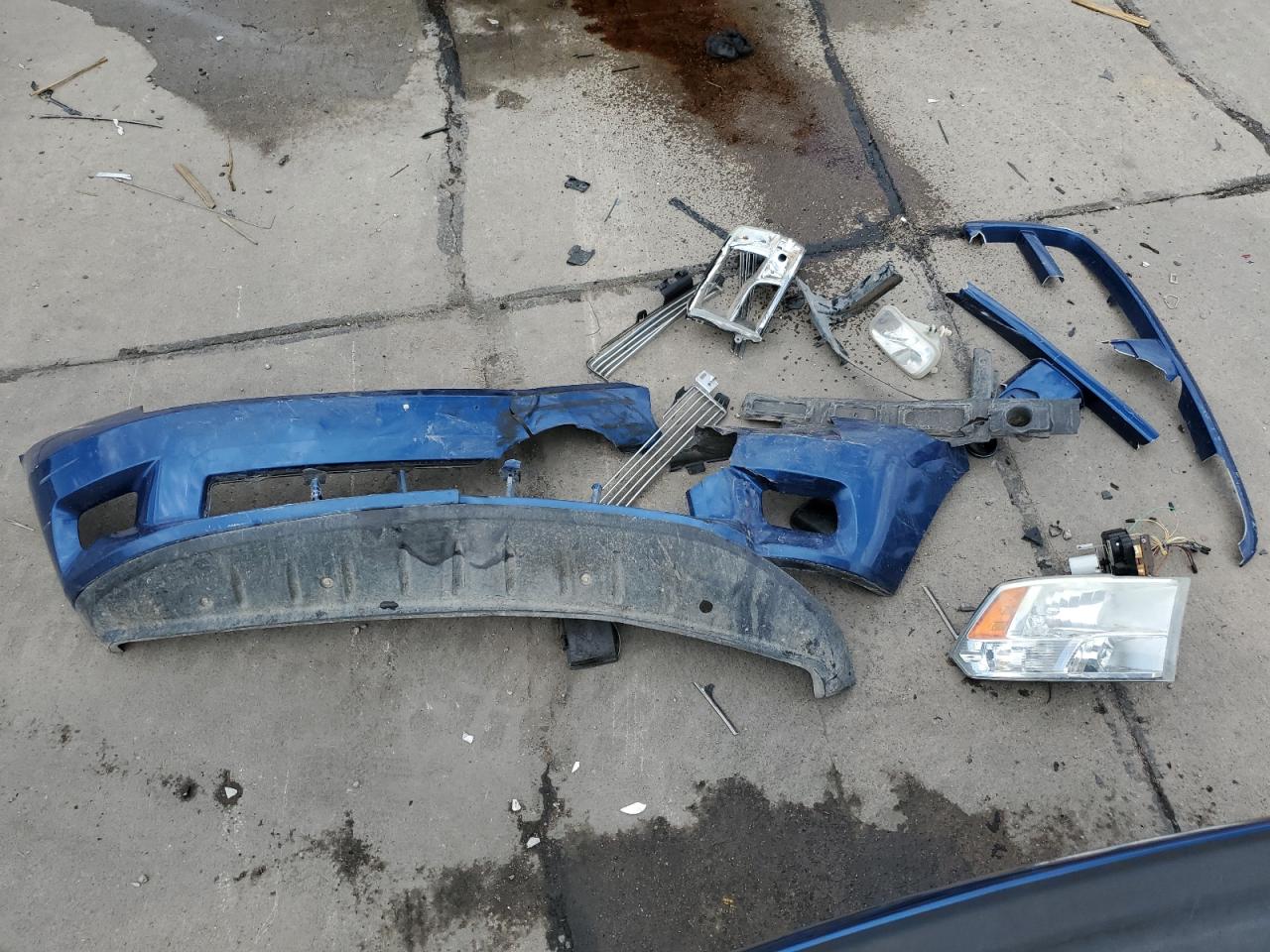 FairThis is a 2011 Dodge Ram 1500, showing significant damage from a front-end and side collision. The blue exterior exhibits major body damage, with the front severely crushed, impacting the hood, fenders, and bumper. The side also presents noticeable impact marks. Despite the exterior damage, the interior appears to be in relatively good condition. The airbags have been deployed, indicating a considerable impact during the collision. The wheels seem to be intact. The vehicle's overall state is fair, suggesting the need for substantial repairs.