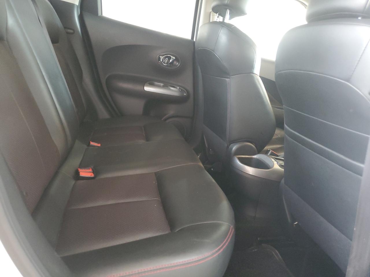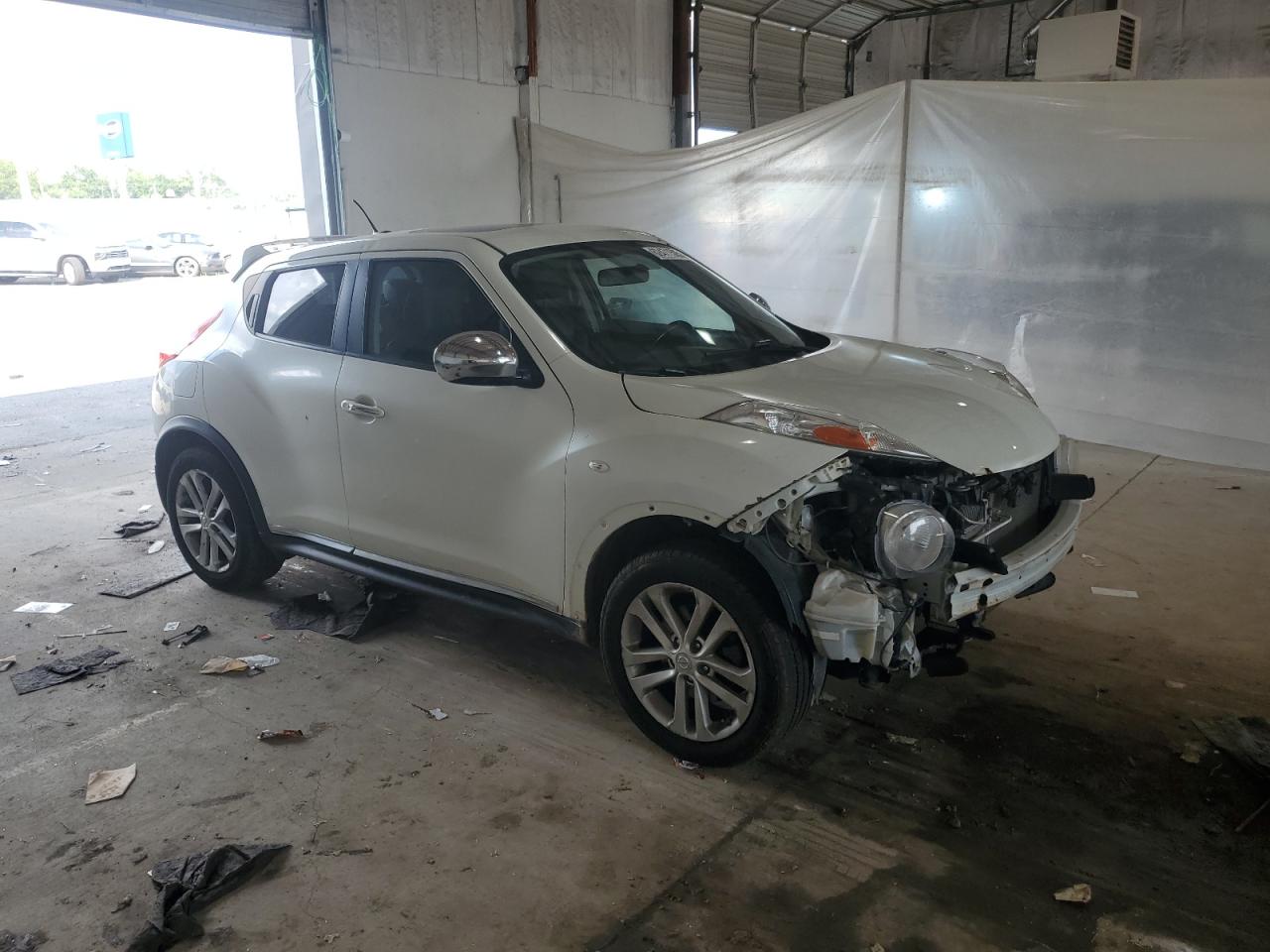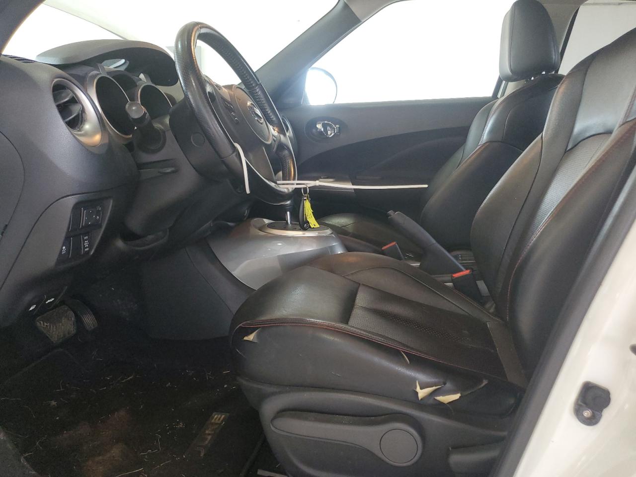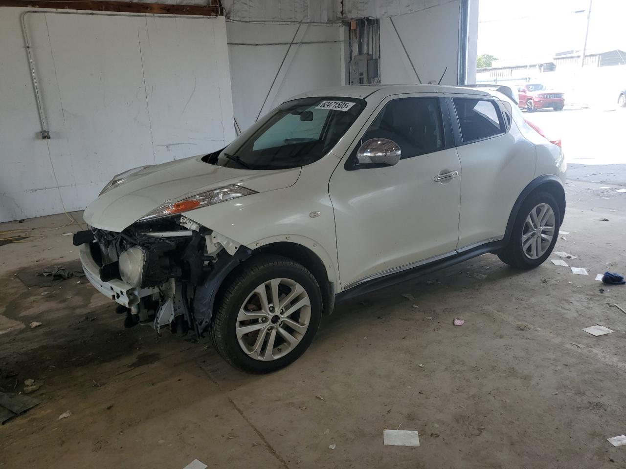 Fair2013 NISSAN JUKE S, white color, FRONT END damage, RUN & DRIVE VERIFIED. The car has visible damage to the front end, including the bumper, headlights, and body panels. The wheels appear to be in good condition. The interior shows minor wear and tear, but overall is in Good condition. This JUKE is drivable, but in need of repairs.