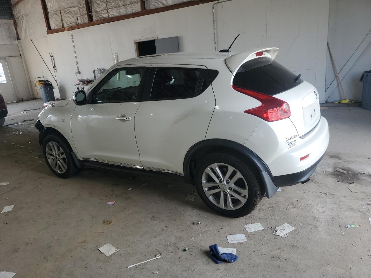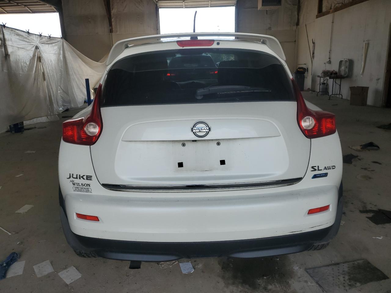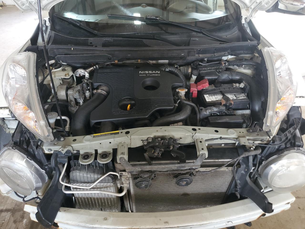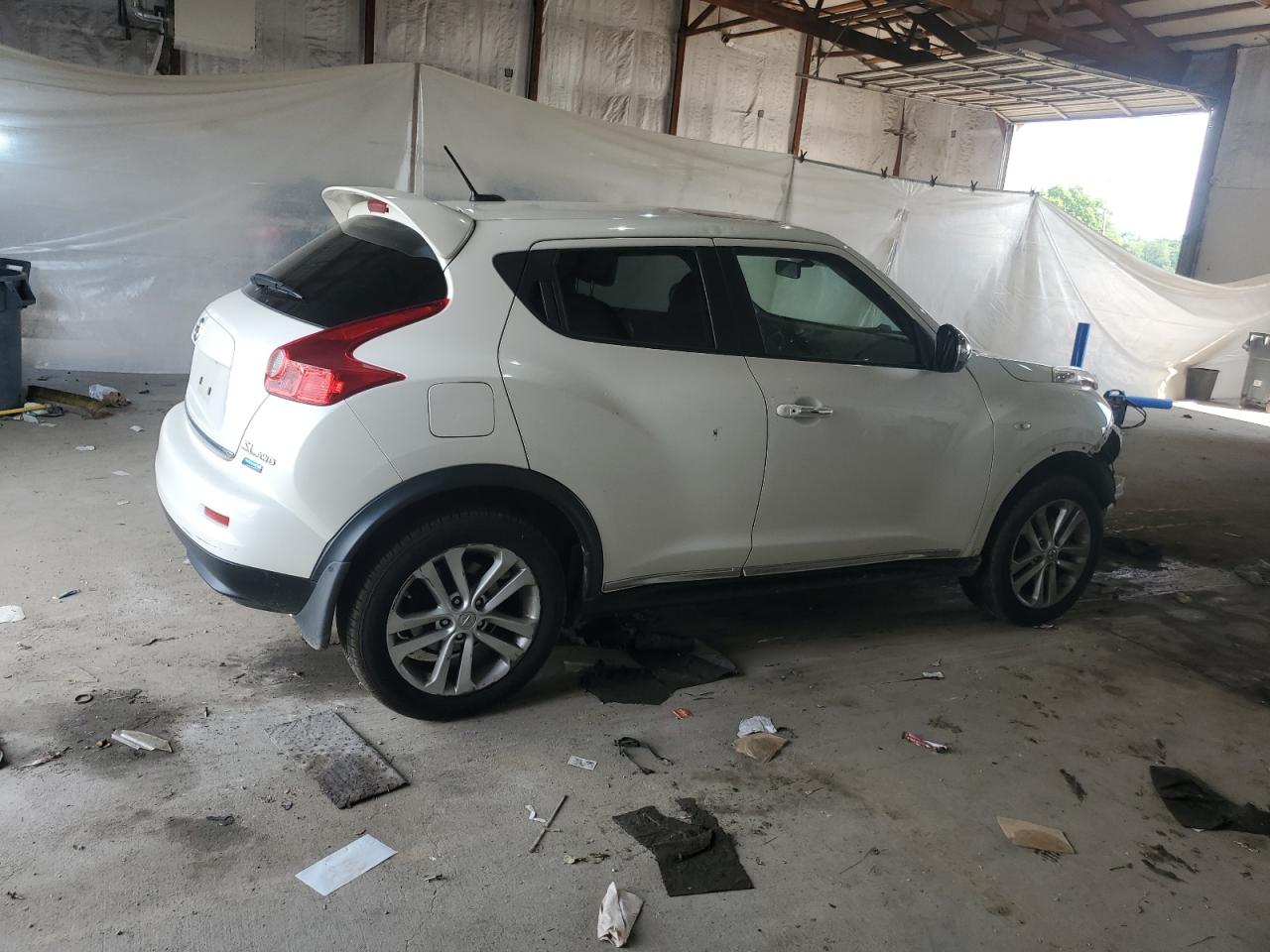 Fair2013 NISSAN JUKE S, white color, FRONT END damage, RUN & DRIVE VERIFIED. The car has visible damage to the front end, including the bumper, headlights, and body panels. The wheels appear to be in good condition. The interior shows minor wear and tear, but overall is in Good condition. This JUKE is drivable, but in need of repairs.