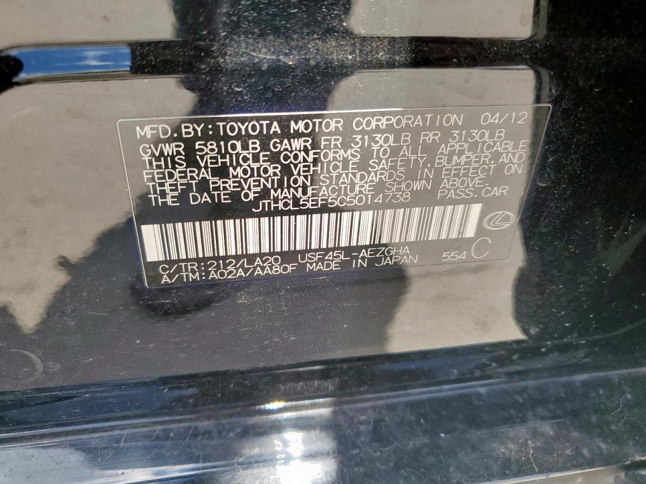 JTHCL5EF5C5014738Final Bid