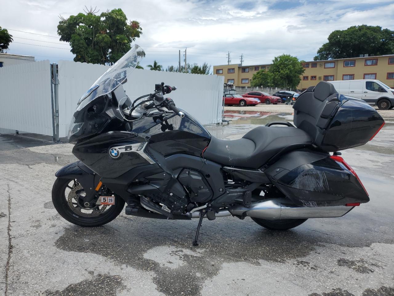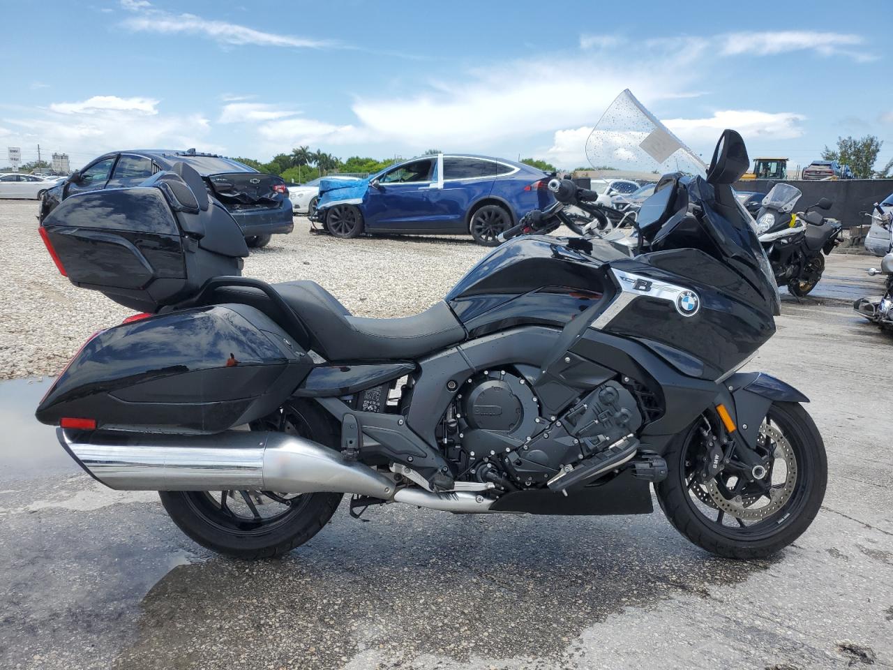 GoodThe motorcycle is a black BMW K1600 B 2023. The primary damage is to the side. The motorcycle is run & drive verified. The overall condition is fair. The bike's exterior shows moderate damage, consistent with its age. The interior appears to be in very good condition with minimal wear and tear. The motorcycle is drivable, but may require some repairs. Damage description includes side damage. The wheels, lights, and glasses appear to be in good condition. There is no damage to the interior that can be observed from the photos. No airbag deployment is visible.