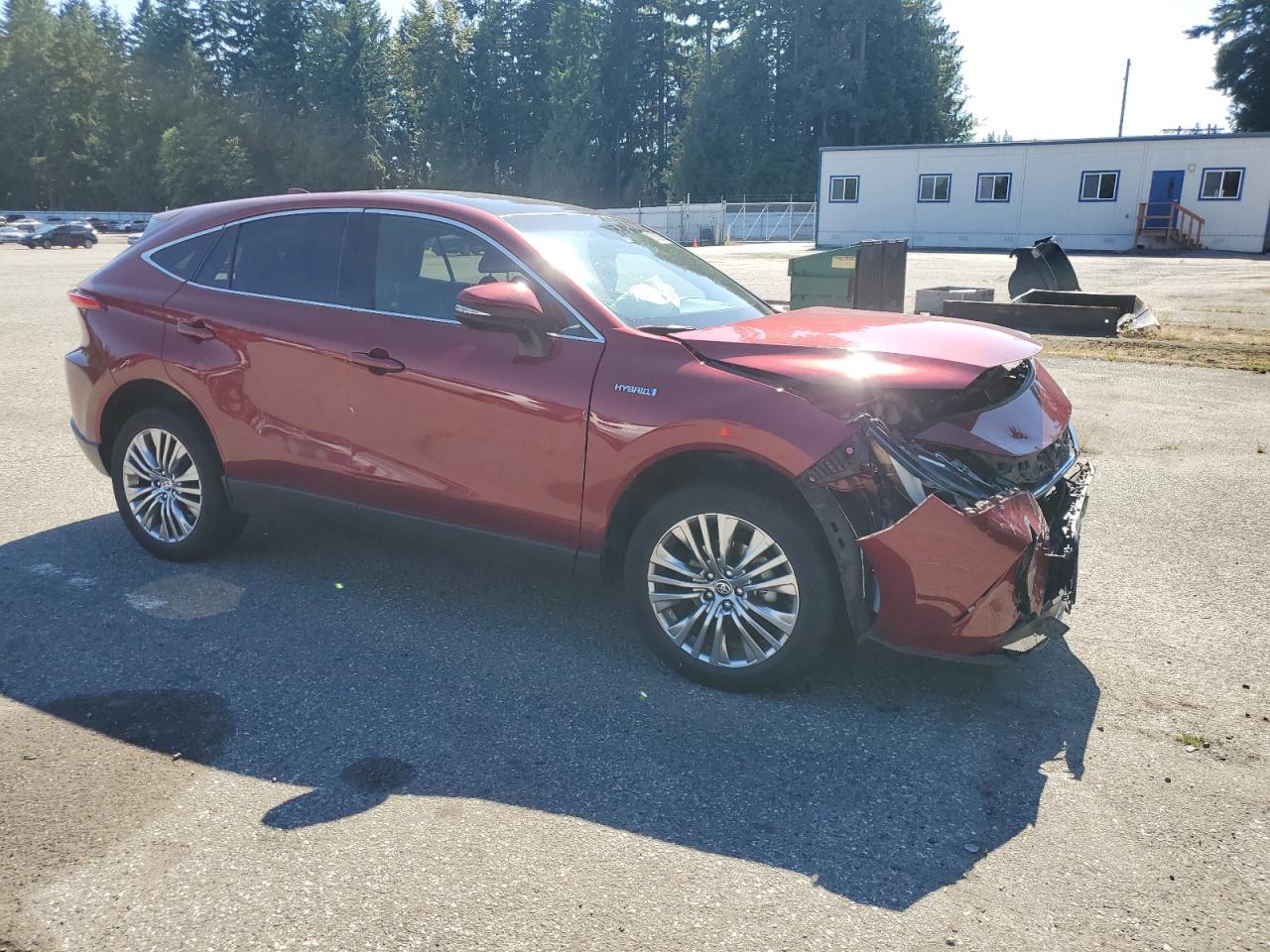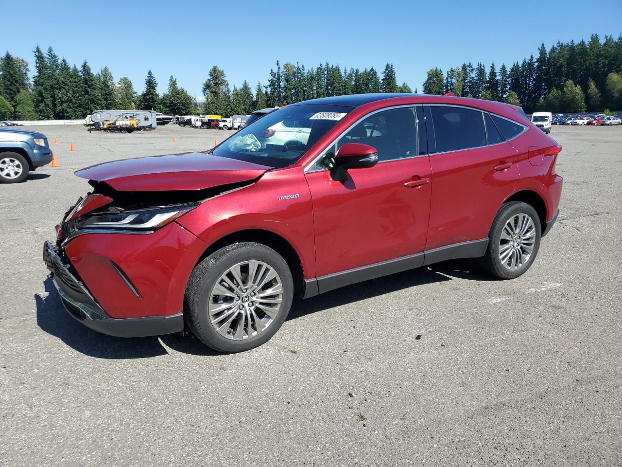 FairThis 2021 TOYOTA VENZA LE shows significant damage. The front end and side have suffered substantial impact. The red exterior exhibits extensive damage, while the interior has deployed airbags. Despite the damage, the wheels appear intact. The vehicle requires considerable repairs and is likely not drivable.
