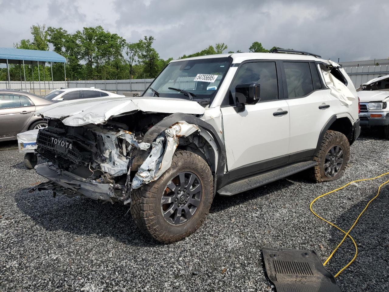 PoorThe 2024 Toyota Land Cruiser has sustained significant damage. The white SUV exhibits extensive body damage, particularly on the front and rear. The wheels appear to be intact, but the lights and glasses are likely damaged. Interior airbags have deployed. This vehicle is in a state of disrepair and requires considerable restoration.