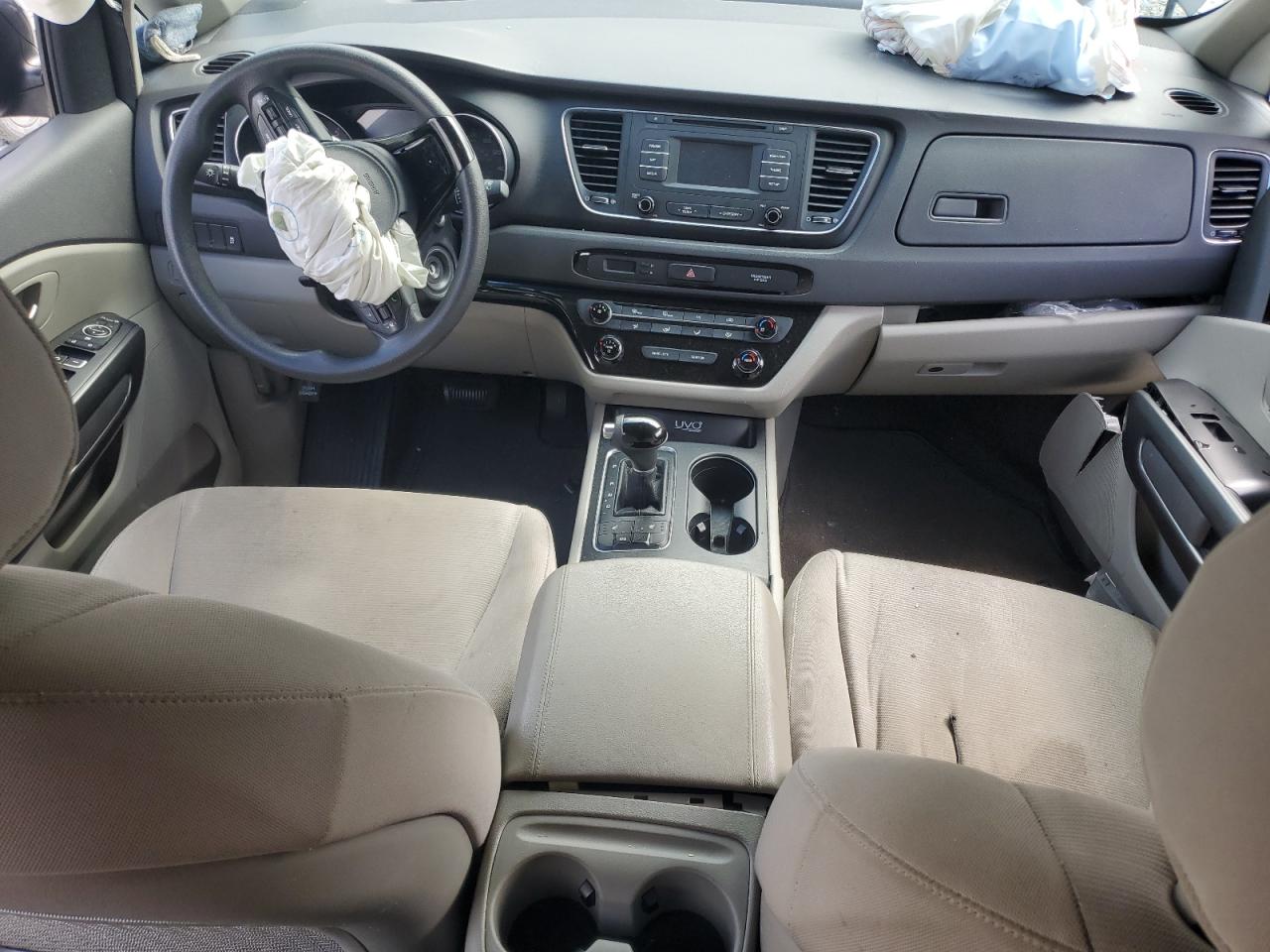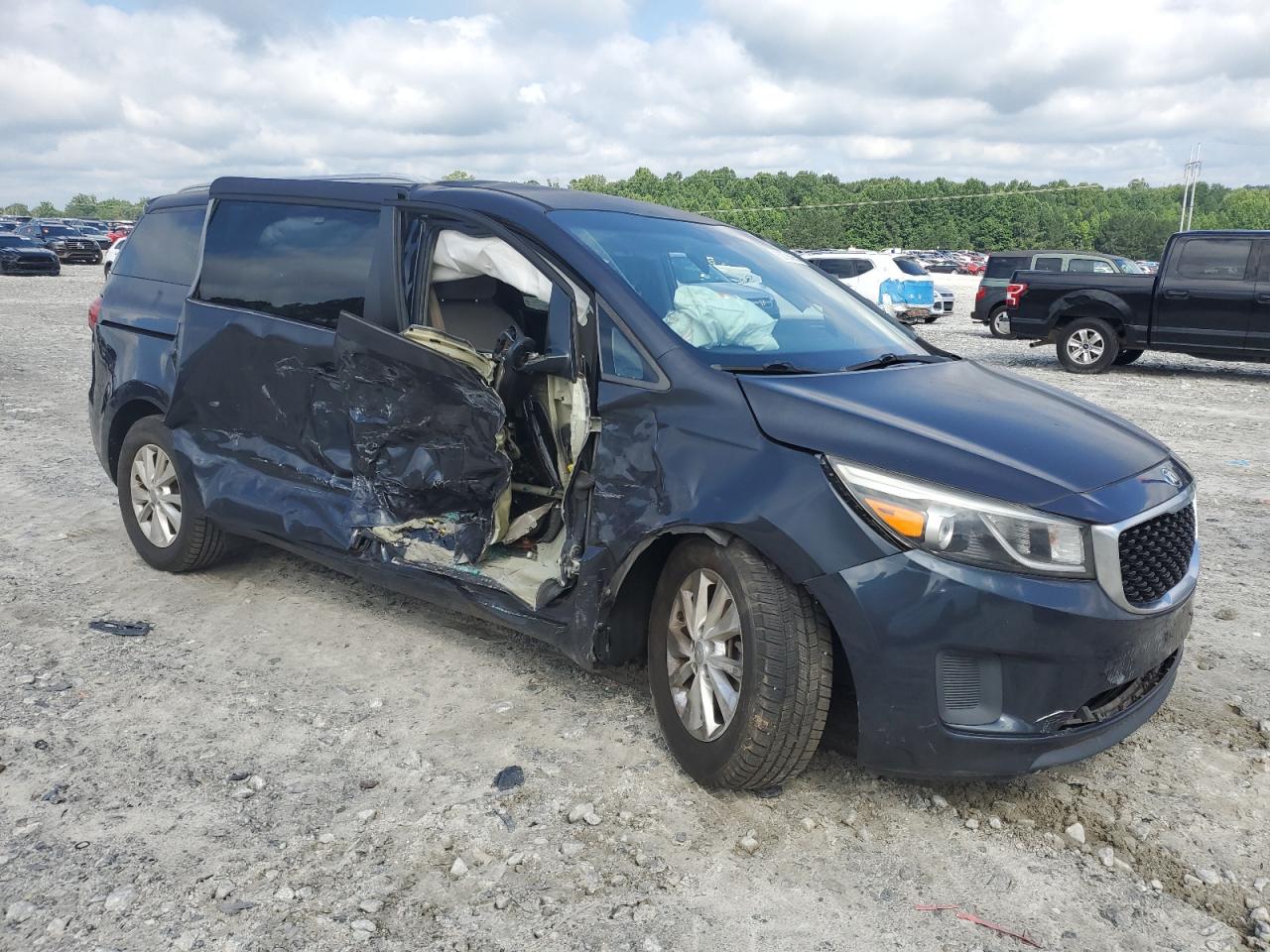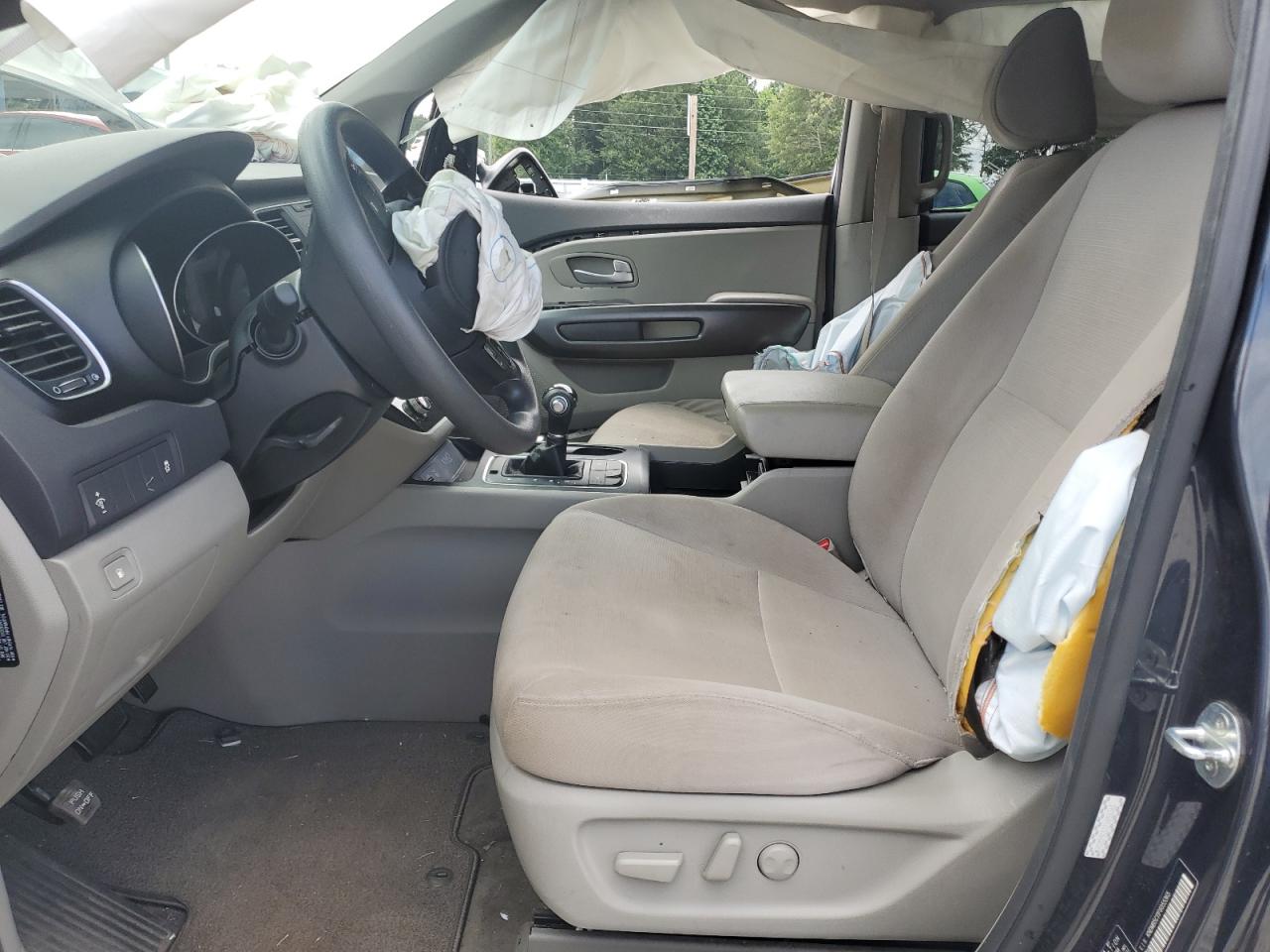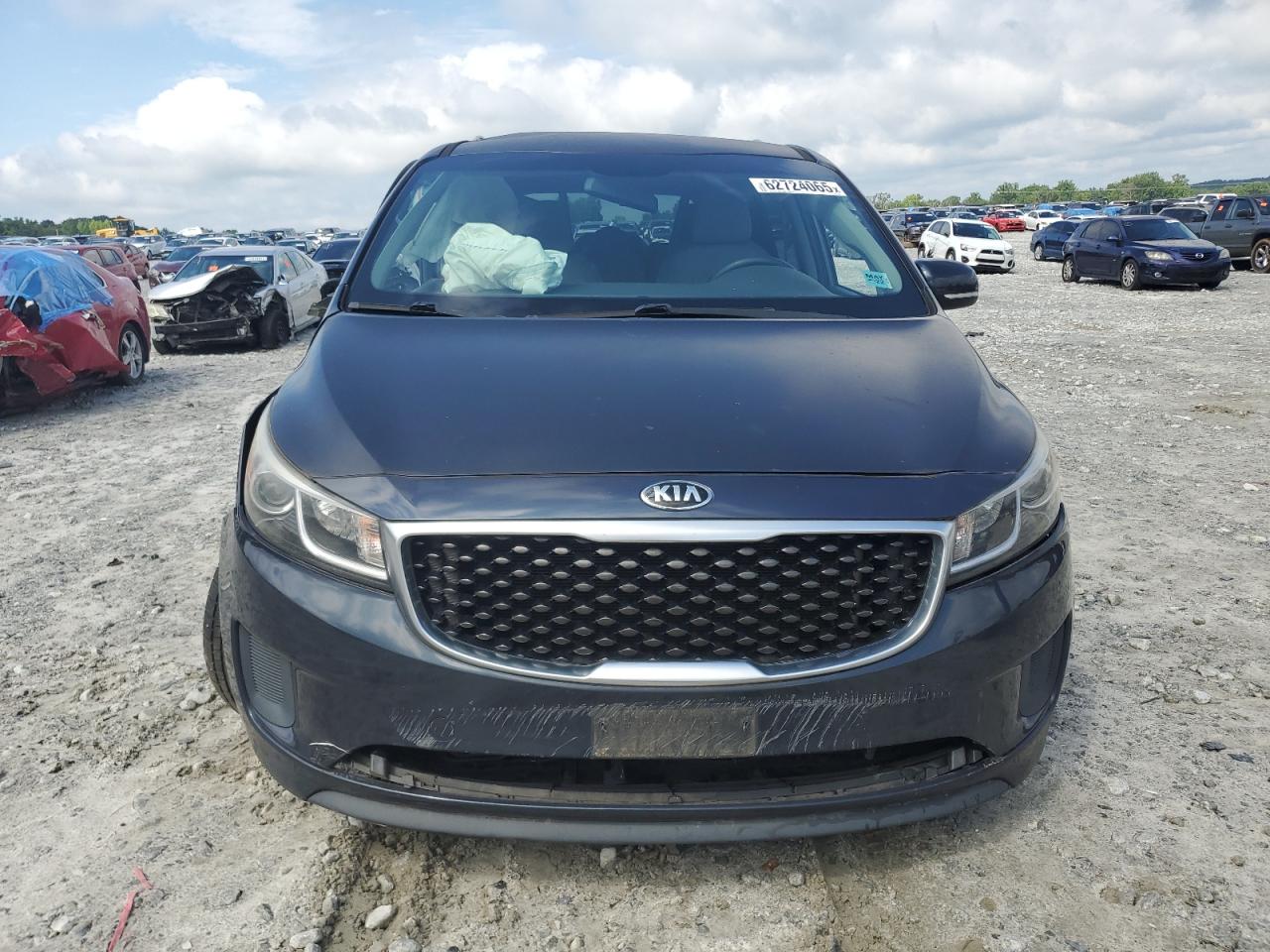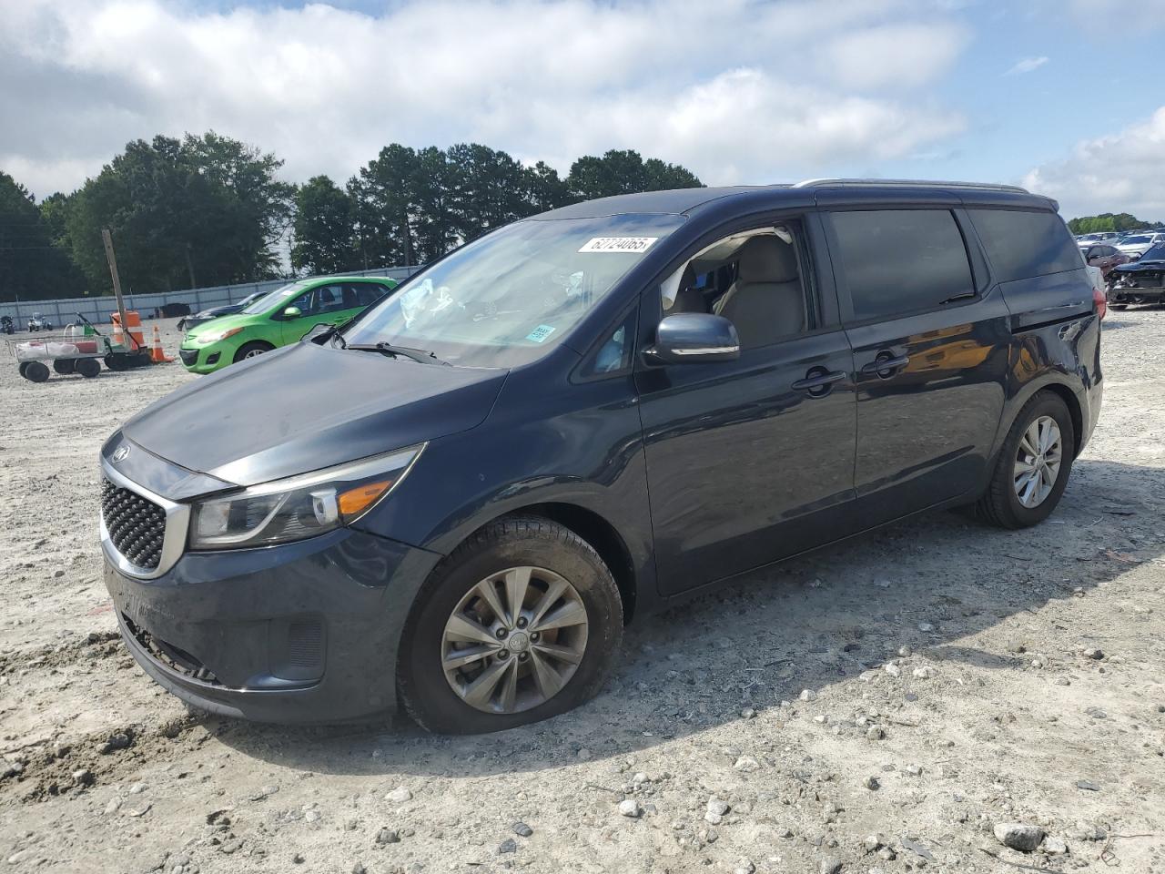 FairThis is a 2015 KIA SEDONA LX, the primary damage is SIDE and secondary damage is FRONT END. The car's color is charcoal. The vehicle exhibits significant damage to the side, with body panels severely impacted. The front end also shows signs of damage. Wheels appear to be intact but the body has extensive damage. The interior reveals deployed airbags and moderate damage.