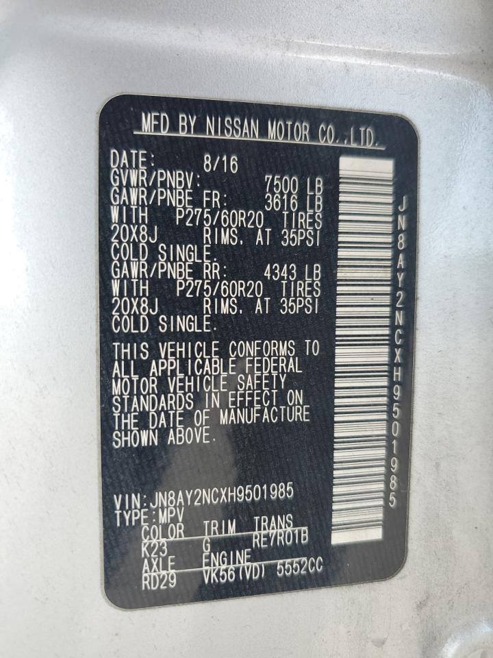 FairThe 2017 NISSAN ARMADA SV, silver in color, has sustained front-end damage, categorizing the Vehicle Damage Category as Body. The primary damage is to the front end, with no apparent secondary damage. The exterior condition is assessed as Fair, reflecting the need for repairs. The interior condition is also Fair, suggesting potential damage or wear. The airbags have deployed. Overall the car is in Fair condition, indicating it requires repairs.