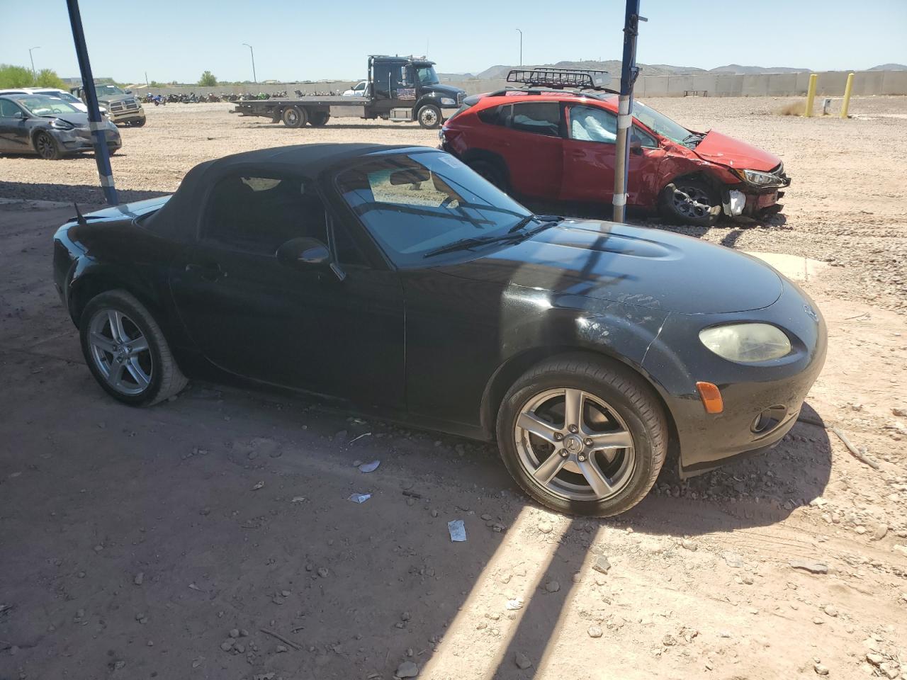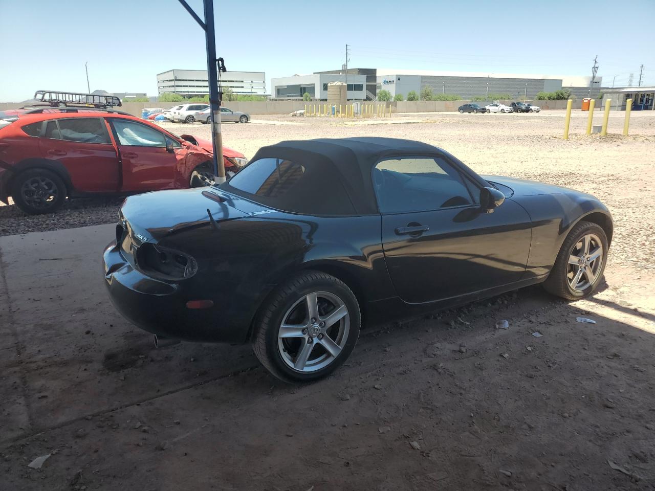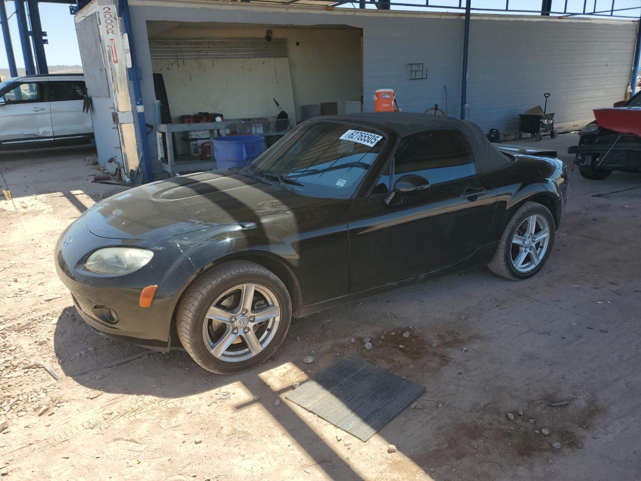 FairThe 2006 MAZDA MX-5 MIATA is a black convertible, Run & Drive Verified. The primary damage is to the rear end, with no secondary damage reported. The car shows signs of wear and tear, with visible damage. The wheels appear to be intact. Interior damage is present, including wear on the seats. No airbag deployment is visible.
