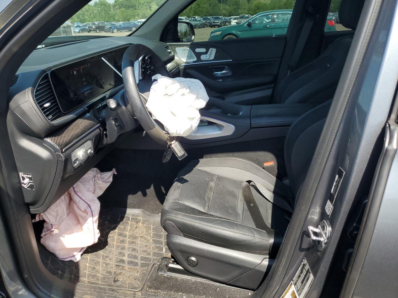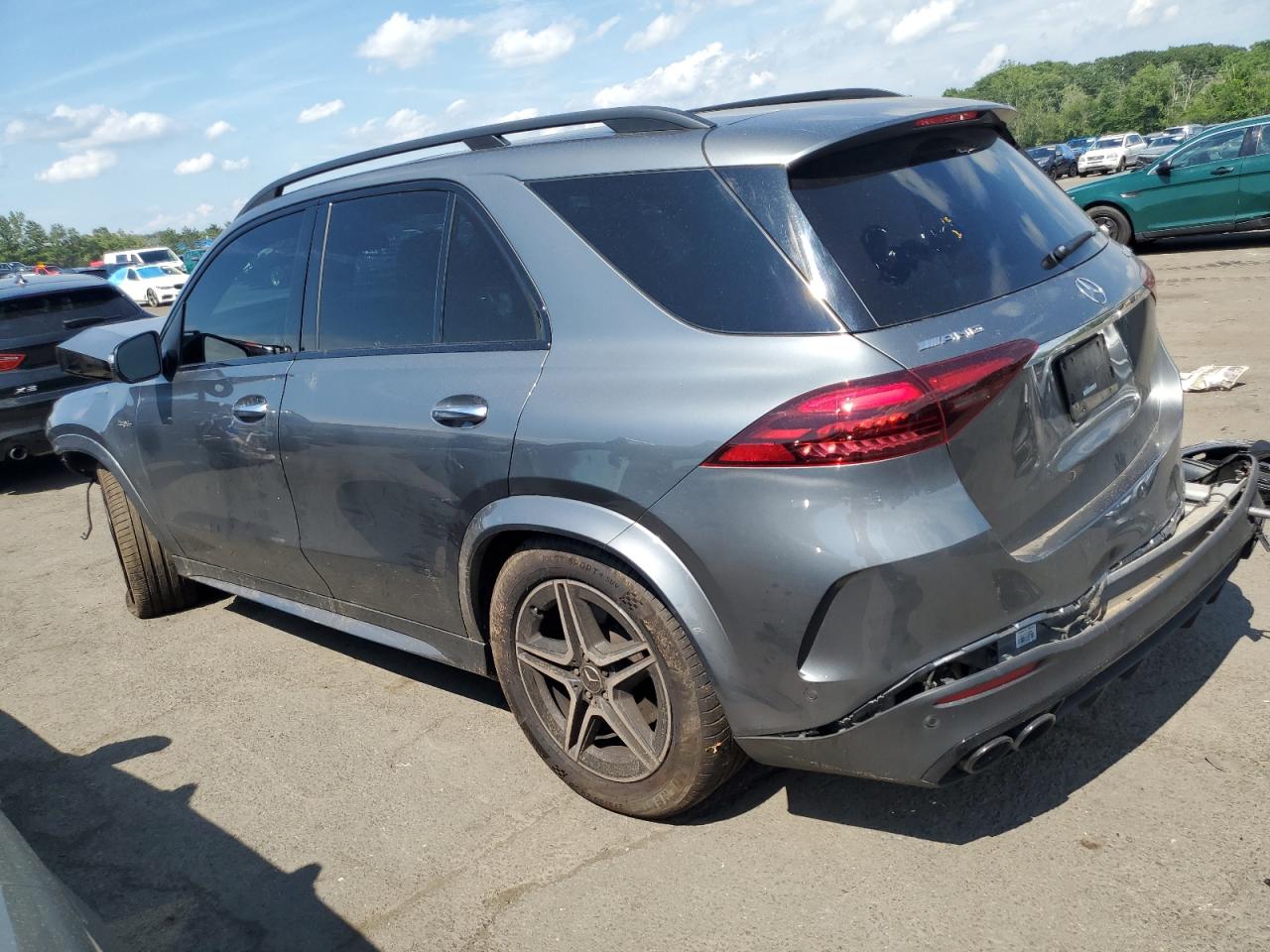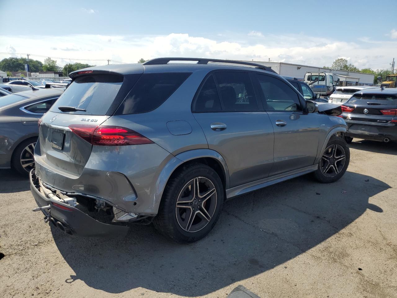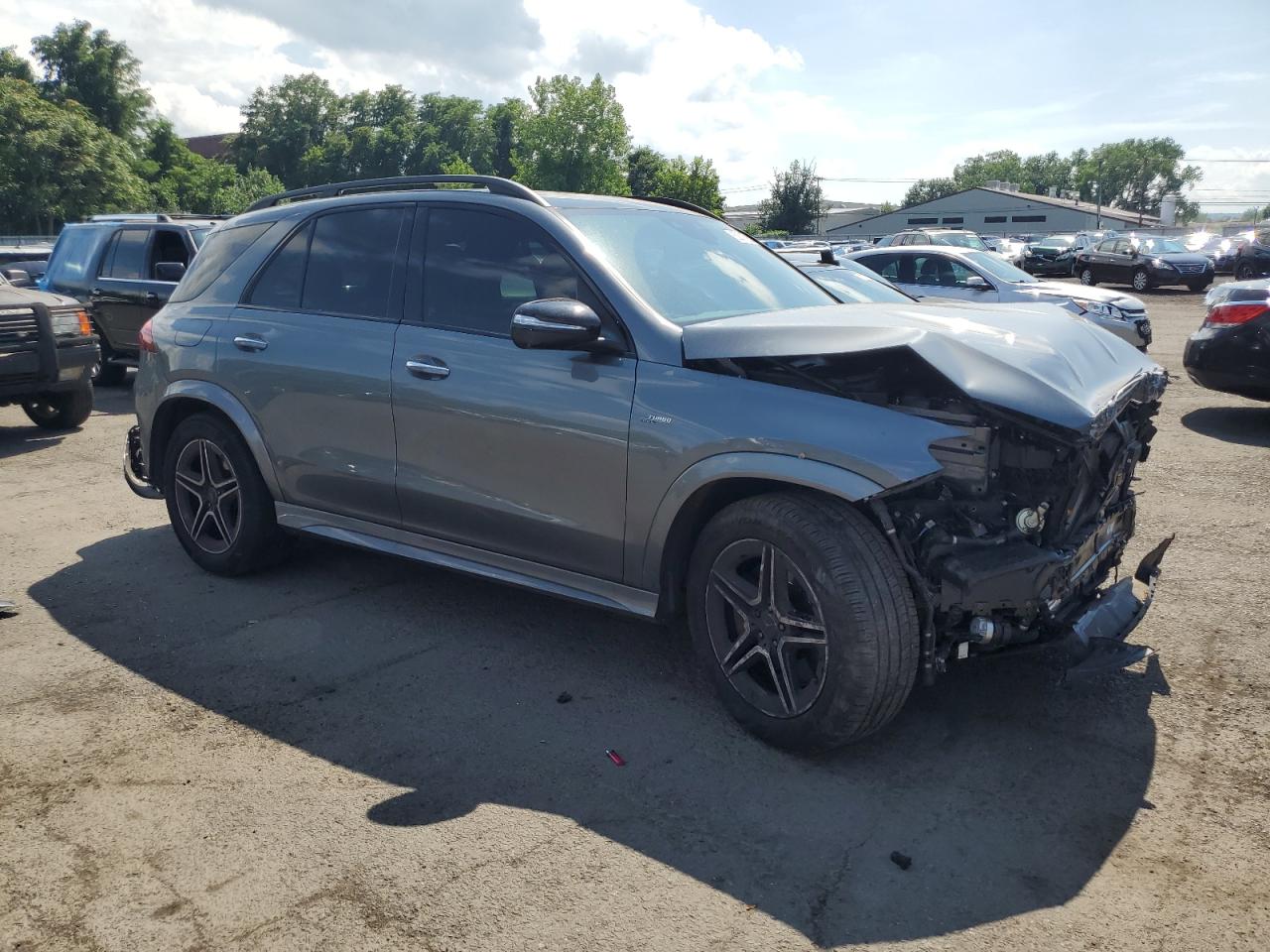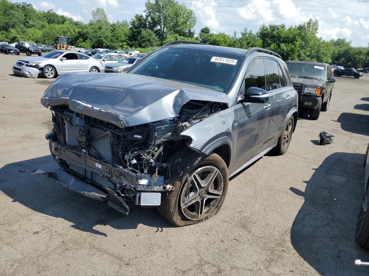 This MERCEDES-BENZ GLE AMG 53 suffered damage to the front and rear ends. The front end has extensive damage to the bumper, hood, and potentially the frame. The rear bumper is also damaged. The interior shows deployed airbags and damage to the dashboard and steering wheel.