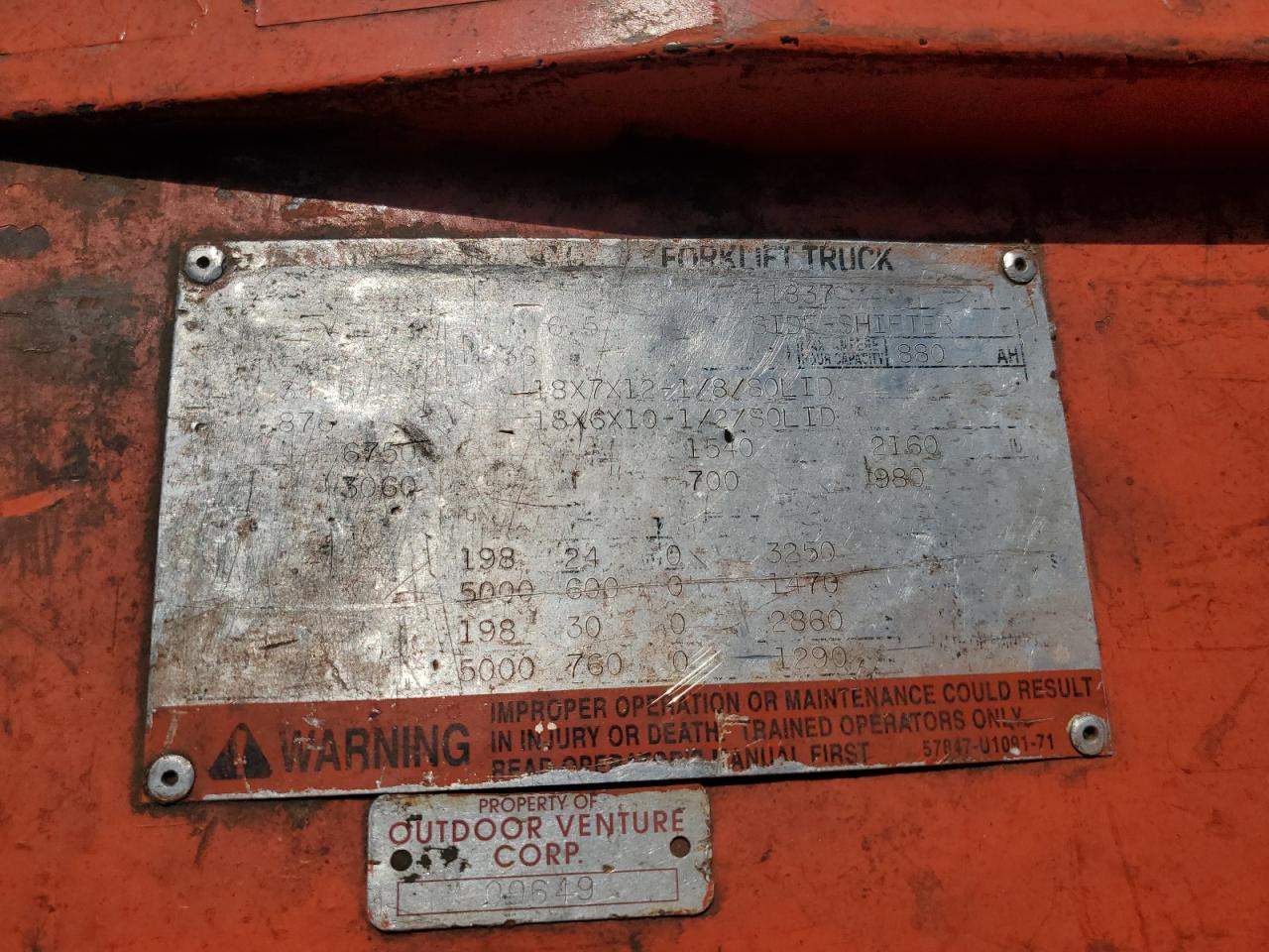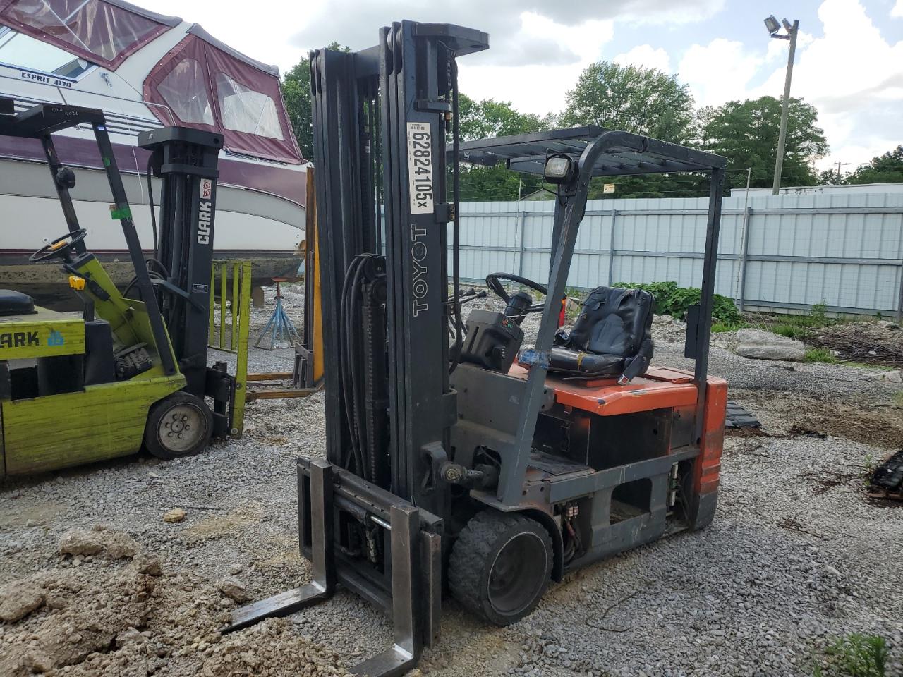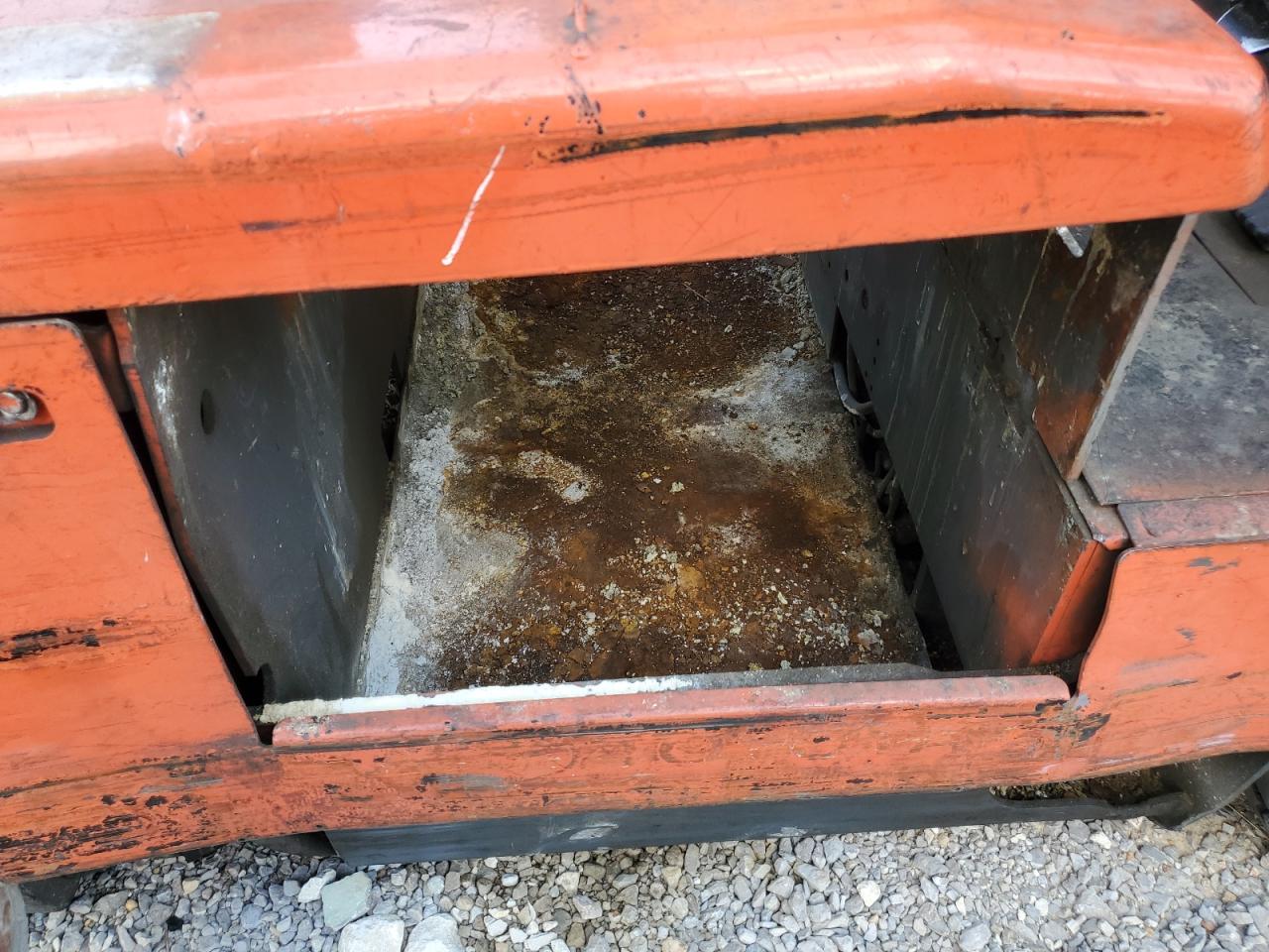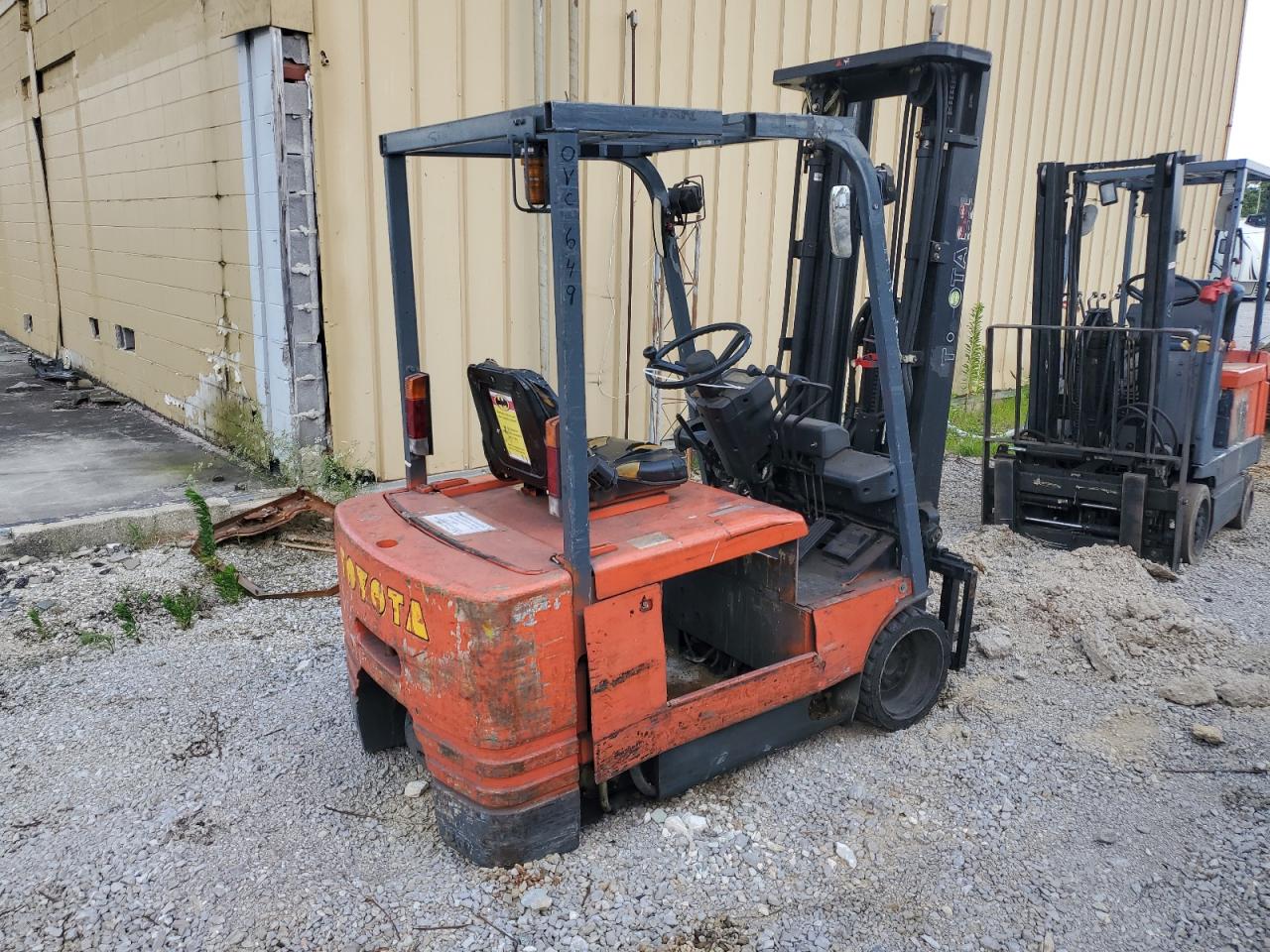 FairThe TOYOTA FORKLIFT 2000, presented in a vibrant orange, exhibits signs of wear and tear. The exterior displays moderate visible damage, indicative of its operational history. The interior shows similar signs, with noticeable damage to the seat. Despite these issues, the vehicle's wheels and other vital components appear to be intact, suggesting it may still be drivable, but requires repair.