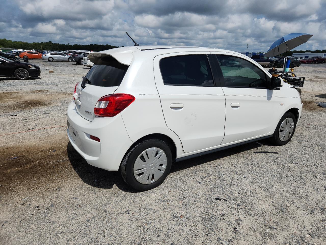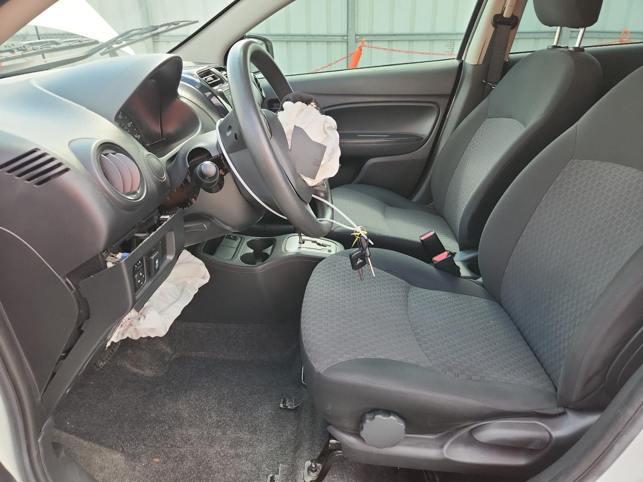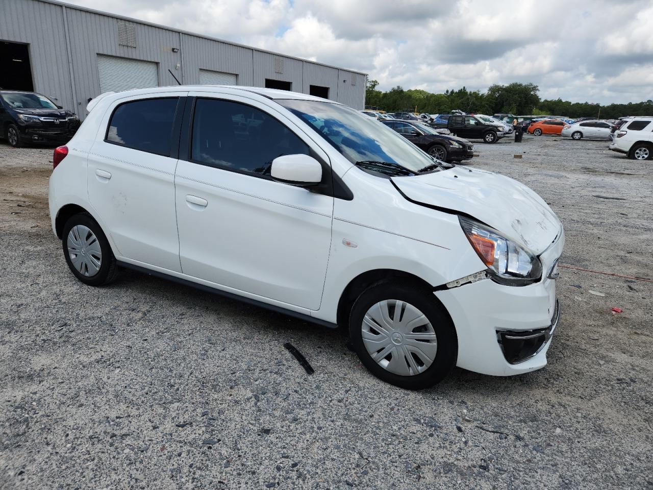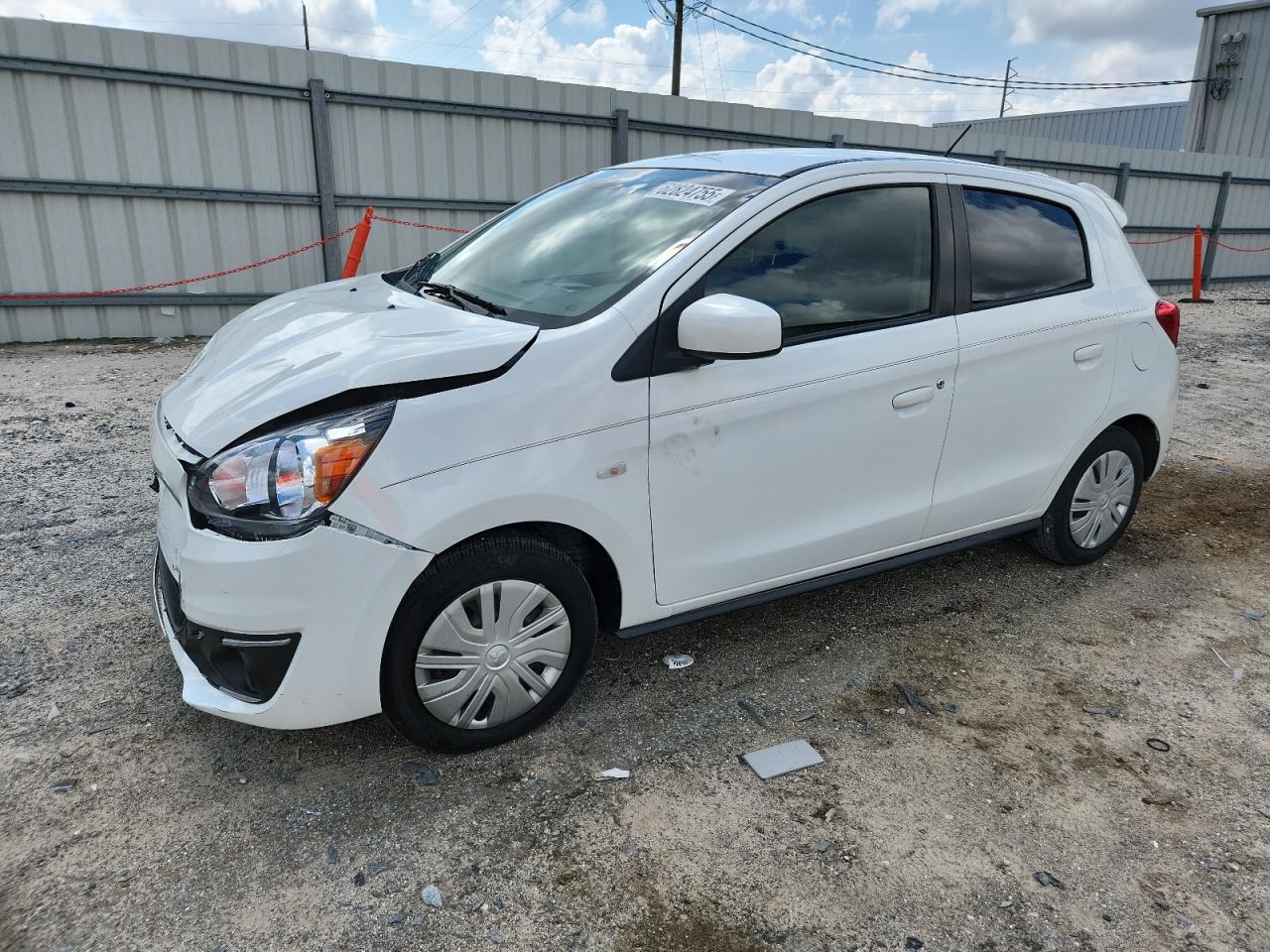 FairThis is a white 2019 Mitsubishi Mirage ES. The primary damage is to the front end, with no secondary damage reported. The car is listed as 'Run & Drive Verified'.