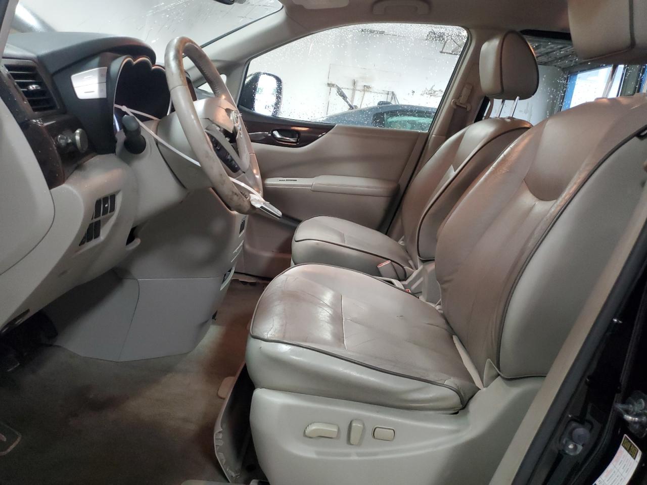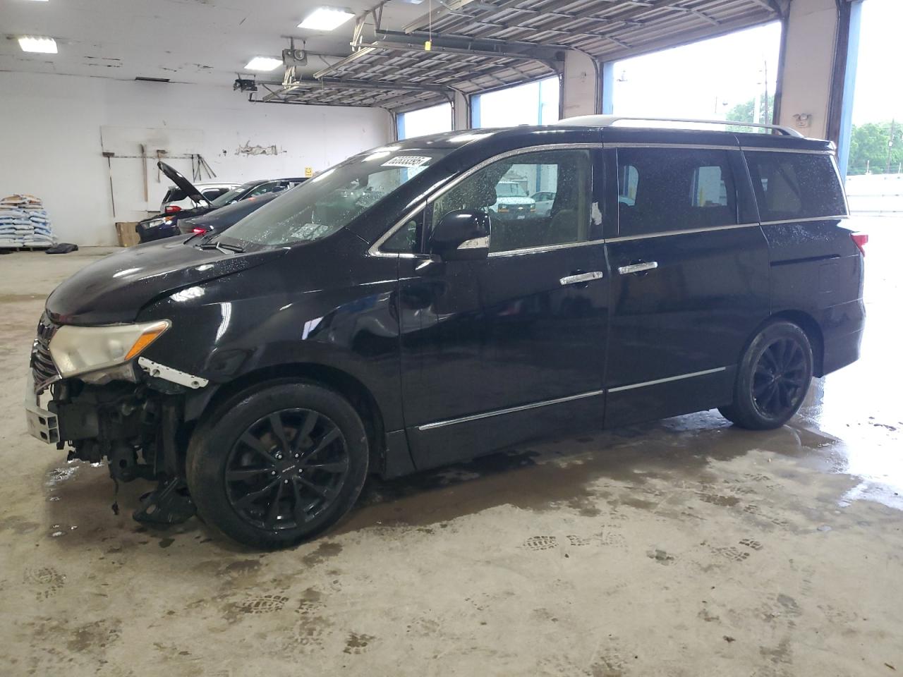 FairThe 2014 Nissan Quest S is black and has front-end damage, with no apparent secondary damage. It's a Run & Drive Verified vehicle. The exterior shows moderate damage, primarily concentrated in the front end, while the interior appears to be in good condition. The car's wheels and glass appear intact. The vehicle damage category is body-related. The interior displays normal wear and tear.