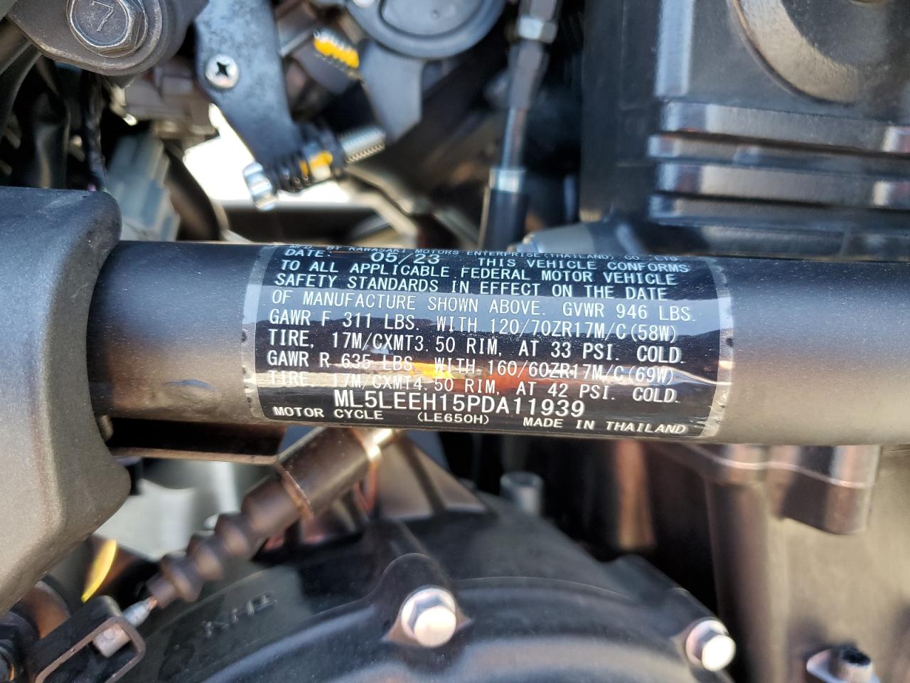 GoodThe KAWASAKI KLE650 F 2023 is a black motorcycle with a 'Vehicle Starts' start code. The primary damage is to the SIDE, with no secondary damage. The motorcycle appears to be in good condition overall. The lights, glasses and wheels seem to be ok. Overall damage is not significant and appears to be drivable, The interior looks great.