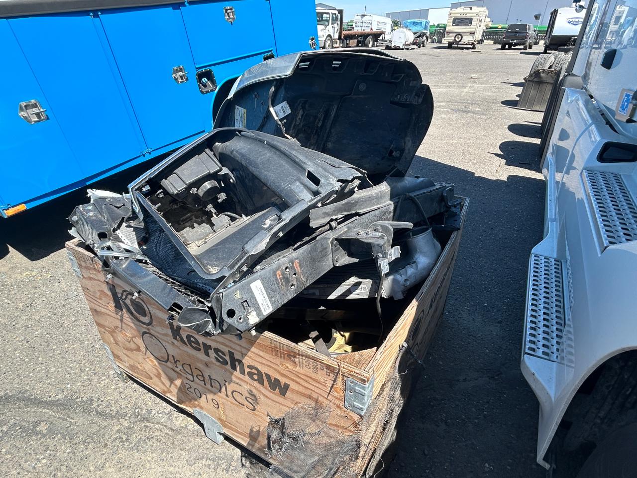 The vehicle has extensive front-end damage, including the hood and front components. The interior appears to be in relatively good condition. There is no obvious damage to the wheels or tires.