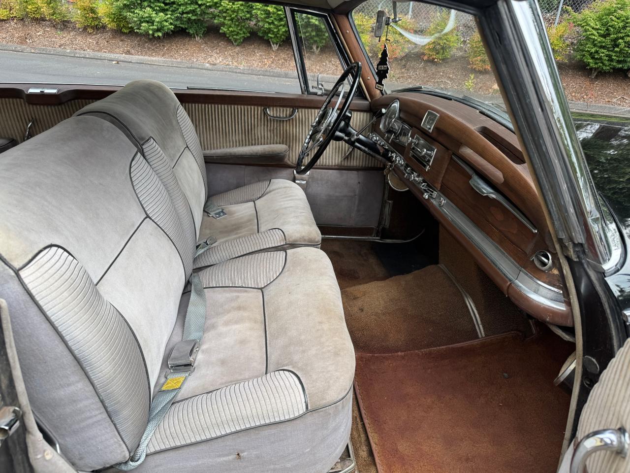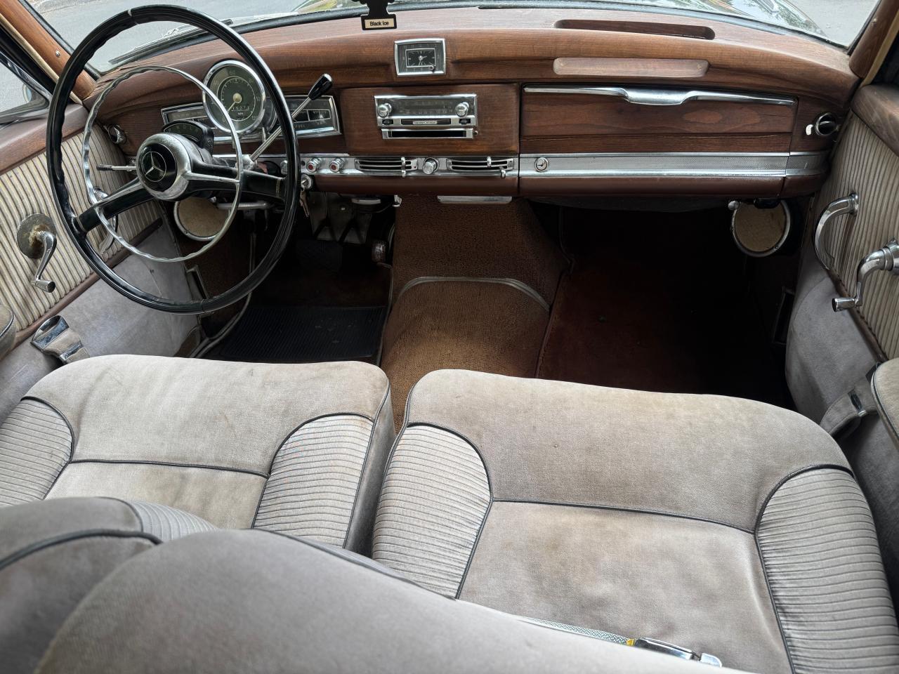 GoodThis is a 1959 Mercedes-Benz 300, a classic luxury car. The car is black. It has a mechanical issue, with minor dents and scratches. The interior appears to be in good condition. Wheels, lights, and glasses are fine.