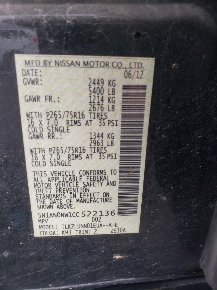 FairThis is a 2012 NISSAN XTERRA OFF. The primary damage is to the FRONT END, and the secondary damage is none. The car's color is black, and the start code is Run & Drive Verified. The vehicle's state is "Fair" due to front-end body damage. The interior shows some wear, but is in "Good" condition. Wheels and glasses seem to be intact. The car is drivable despite the body damage.