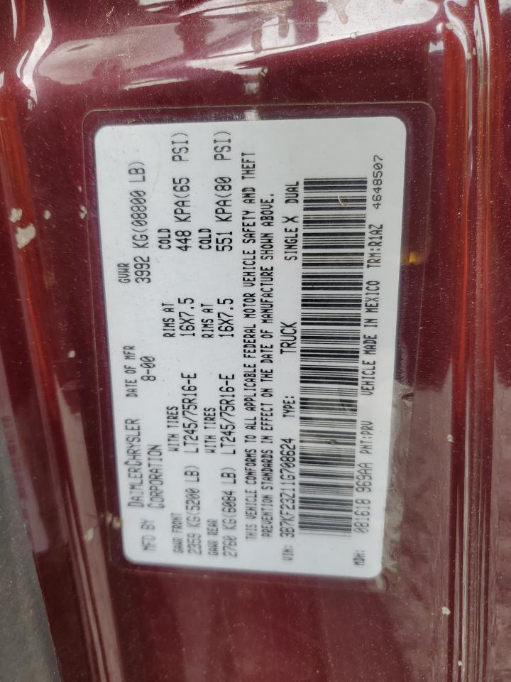 FairThis is a maroon 2001 Dodge Ram 2500. It is a Run & Drive Verified vehicle. The primary damage is to the rear end, with no secondary damage reported. The vehicle shows signs of wear and tear, with damage visible on the body. The interior shows moderate damage. The wheels appear to be in fair condition, and the lights and glasses are intact. The vehicle's condition suggests it may require some repair.