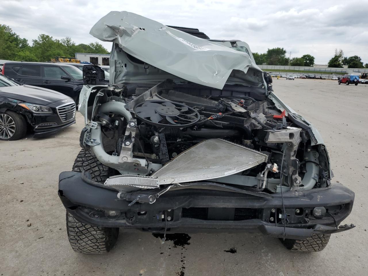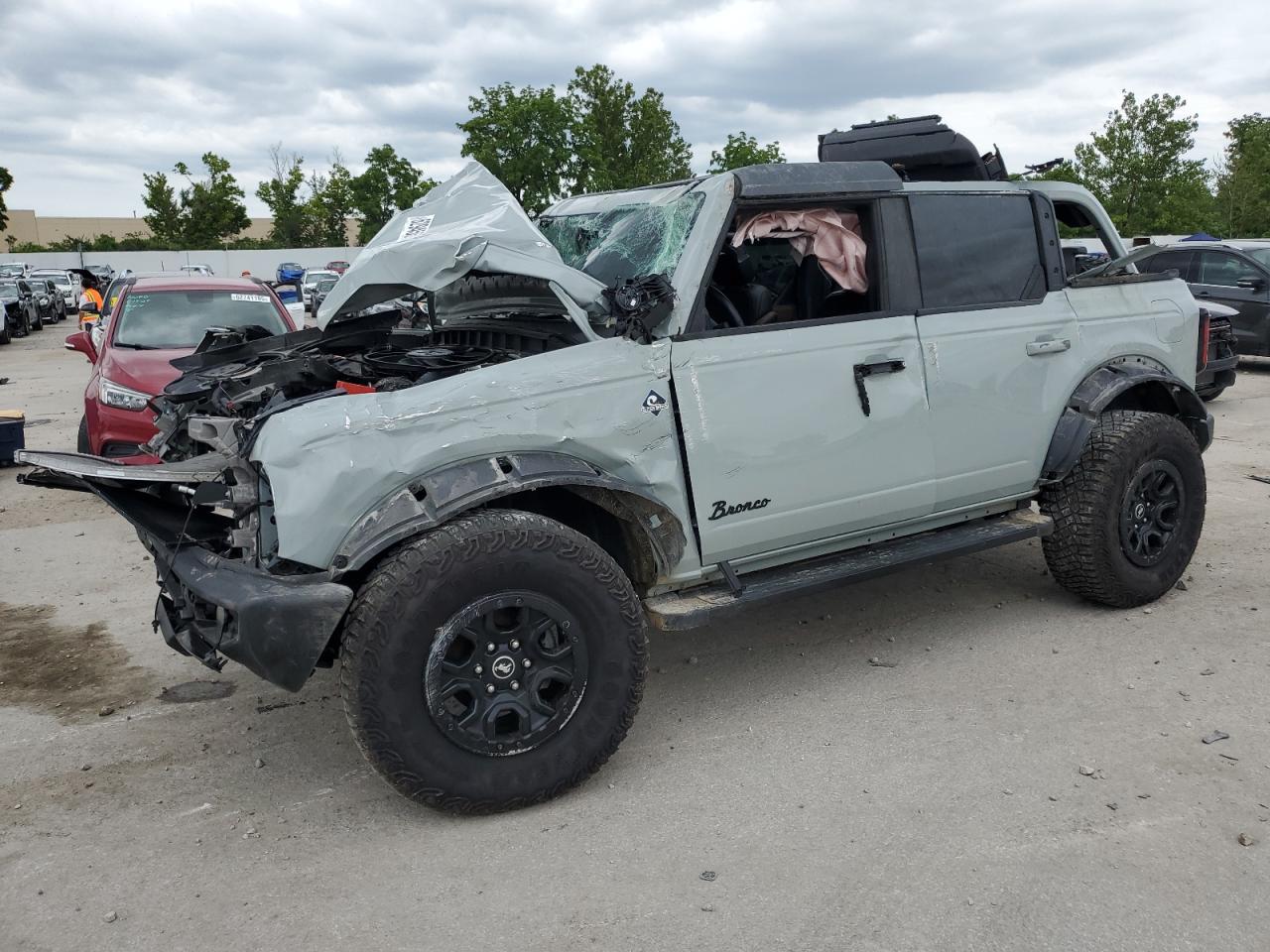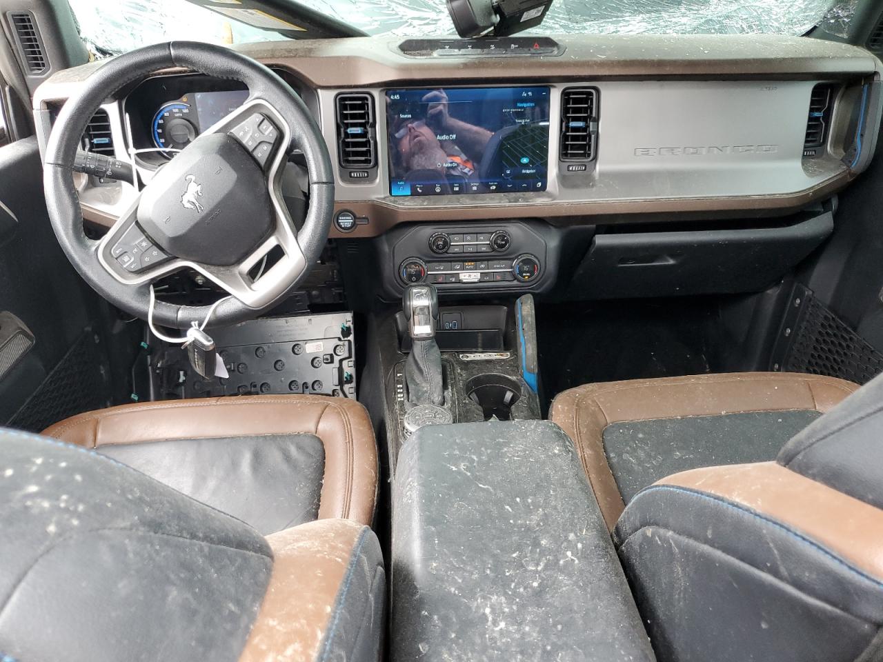 PoorThe FORD BRONCO BAS 2023, is a grey SUV with significant rollover damage. The vehicle's exterior shows extensive damage including a crushed roof, and body panel damage. The interior has significant damage, including deployed airbags. The vehicle's start code is "Run & Drive Verified".
