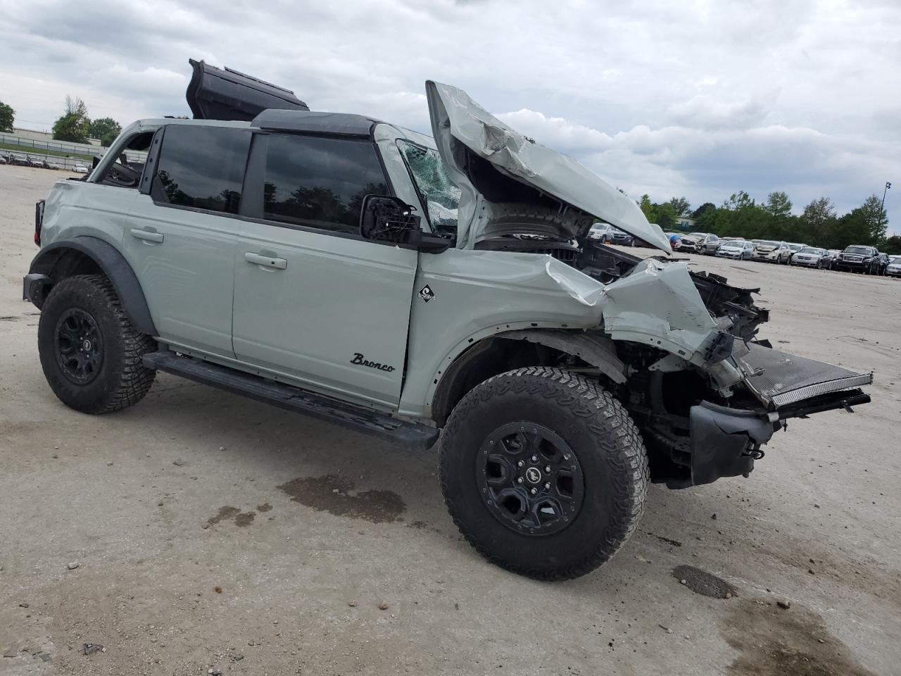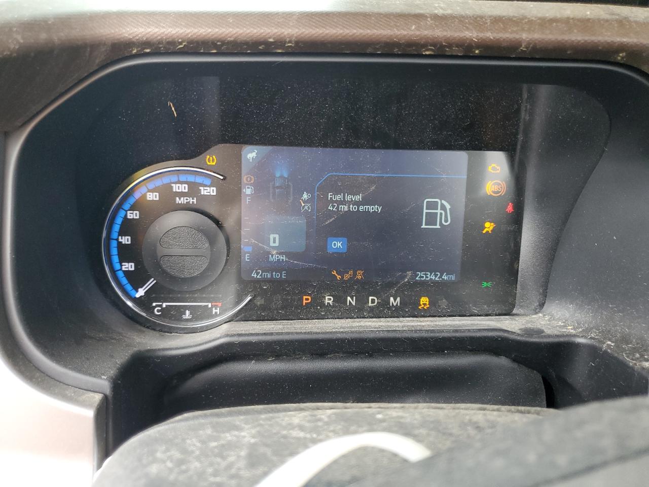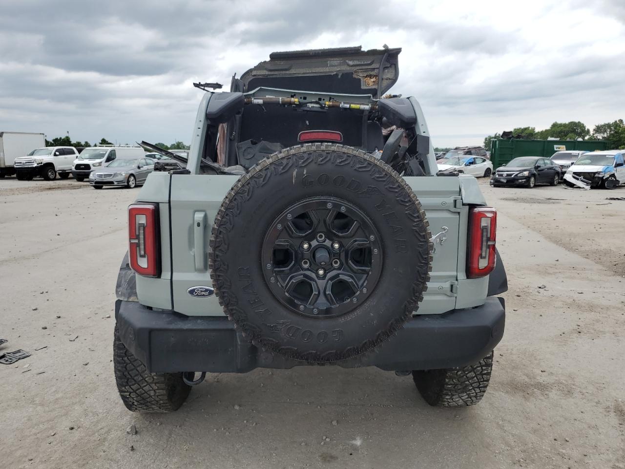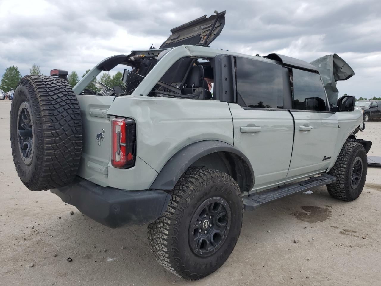 PoorThe FORD BRONCO BAS 2023, is a grey SUV with significant rollover damage. The vehicle's exterior shows extensive damage including a crushed roof, and body panel damage. The interior has significant damage, including deployed airbags. The vehicle's start code is "Run & Drive Verified".