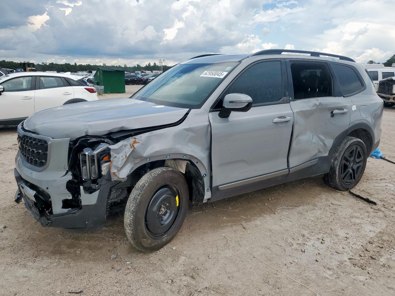 FairThis is a gray 2023 KIA Telluride with primary front end damage and secondary side damage. The car starts and runs. The front end shows significant damage, including the front fascia, hood, and possible suspension components. The side of the vehicle has sustained damage to the body panels. The wheels appear to be intact, and the lights and glasses appear to be in reasonable condition. The interior shows minimal signs of wear and tear. The airbags are not deployed. The vehicle damage category is Body.