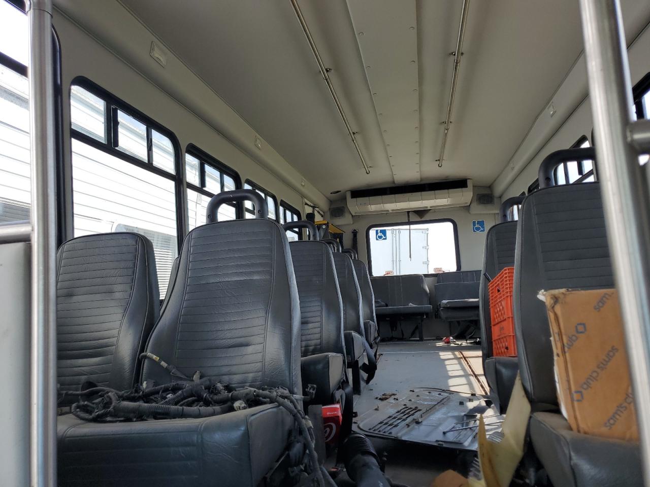 PoorThe FORD F550 SUPER 2016, is a white shuttle bus. This vehicle has sustained significant damage. The primary damage is to the front end, with secondary damage indicating the vehicle has been stripped of some components. The engine bay reveals extensive mechanical damage, with visible engine components removed or damaged, including the engine itself being partially disassembled. The interior shows signs of wear and tear, with some components missing. The wheels and lights appear to be damaged or missing. The windows are intact. The airbags are not visible.