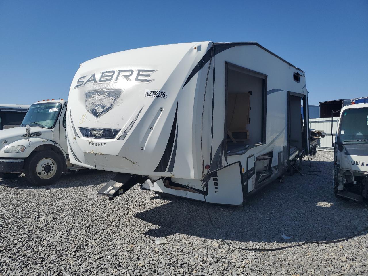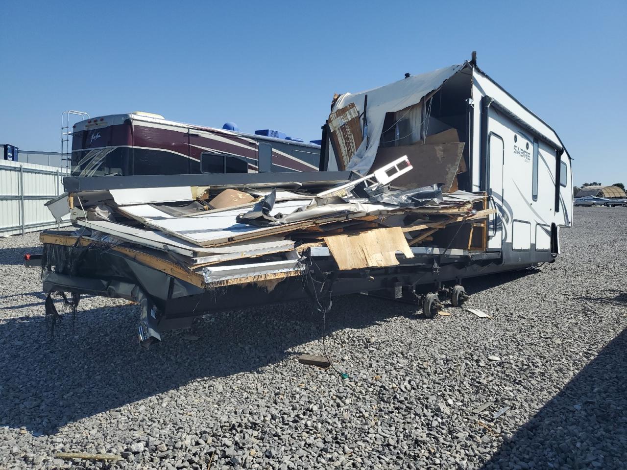 PoorThe 2019 WILDWOOD SABRE, a white travel trailer, exhibits extensive damage across multiple areas. The primary damage is all over the body, with significant structural compromise. Secondary damage is not present. The exterior shows severe impact damage, with portions of the roof and body panels extensively crushed and detached. The trailer's frame appears compromised. Interior damage includes visible structural issues. The vehicle is in a Poor overall state, with a Vehicle Damage Category of Body, and a Fair overall interior condition. The vehicle is not drivable.