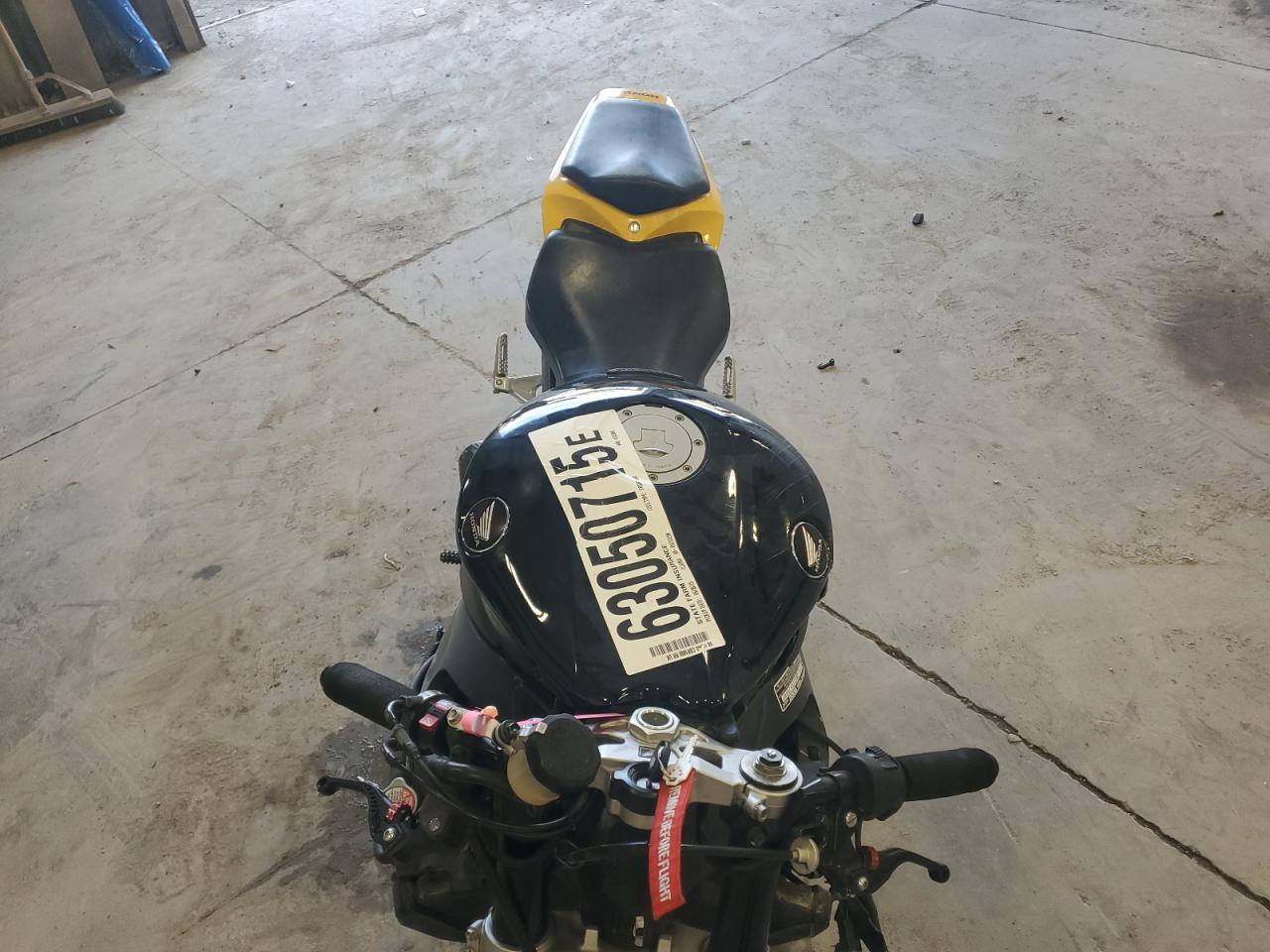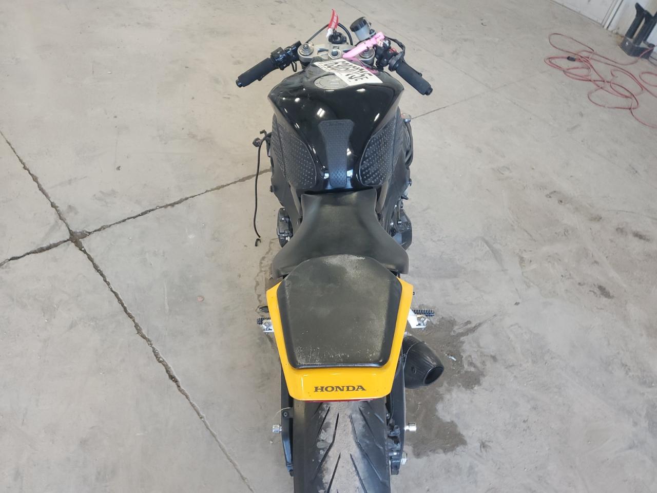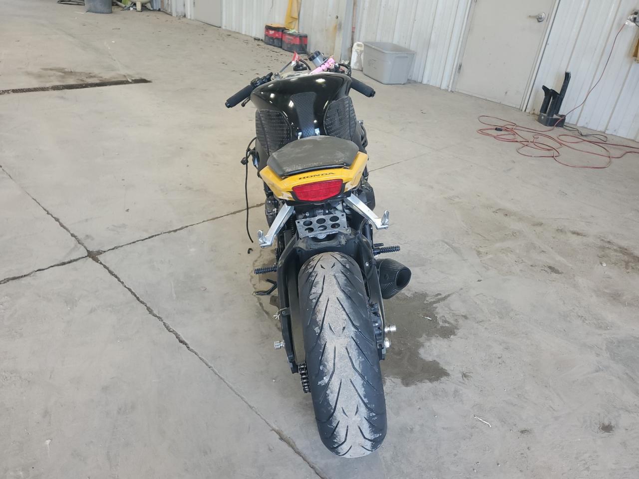 Significant front-end damage to the black Honda CBR1000RR sportbike. The front end is the primary area of concern.