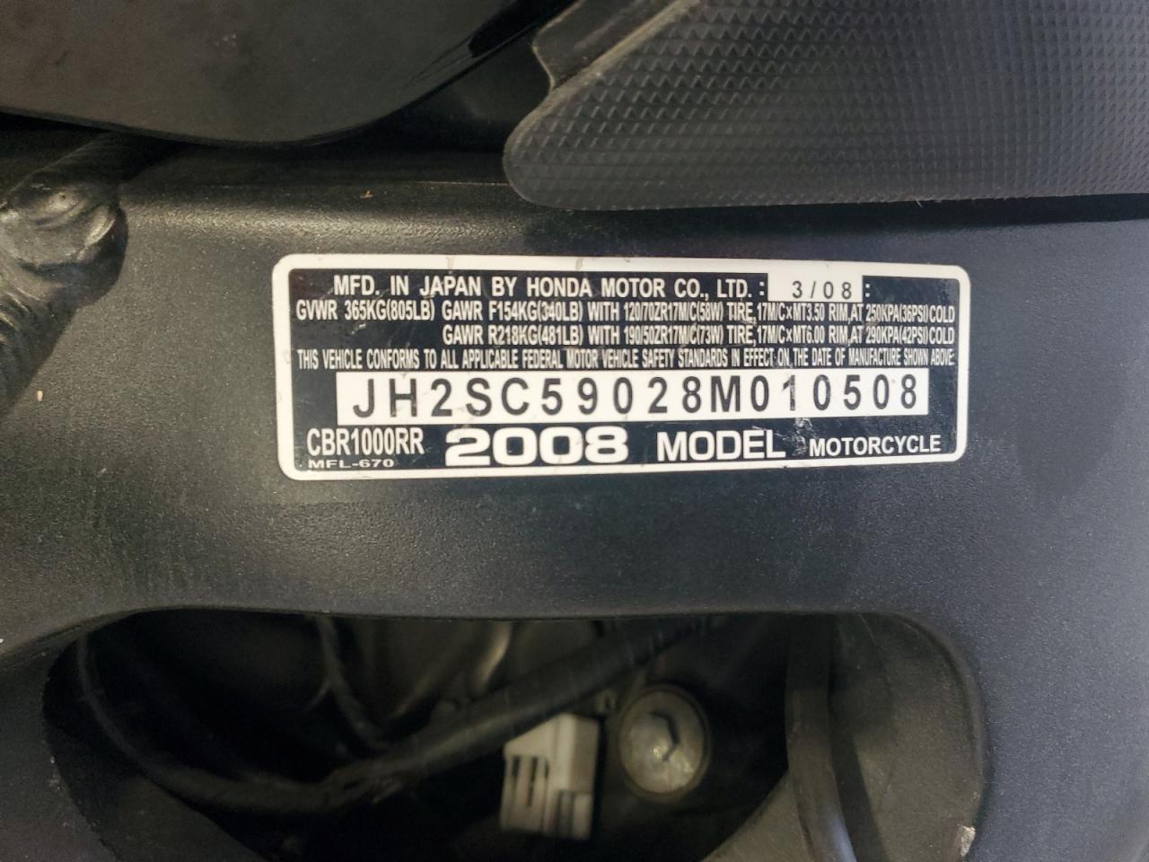 FairThe 2008 Honda CBR1000RR is a black sportbike with front-end damage. The primary damage is to the front end, with no secondary damage reported. The overall condition is fair, indicating moderate visible damage, and it may require repairs, but the vehicle is likely drivable. The interior condition is good. The bike has significant front-end damage. The wheels appear to be intact. The lights and glasses condition were not specified. Summary: Damage: Significant front-end damage. Overall Condition: Fair. Vehicle Damage Category: Body.