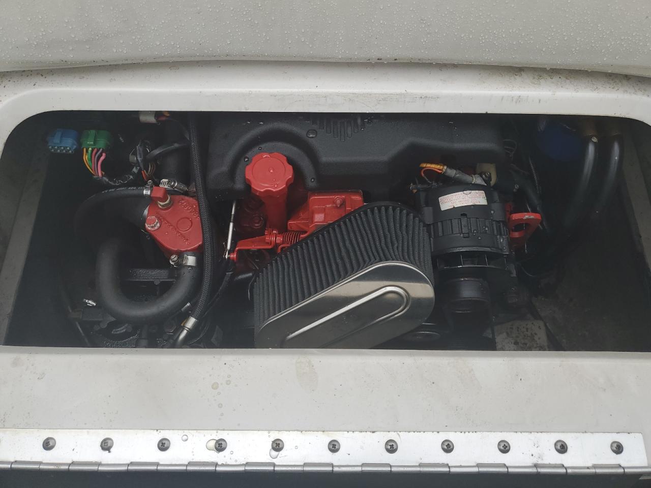 The boat has suffered water damage, primarily affecting the interior and potentially the engine compartment. The exterior shows some wear and tear, including possible cosmetic damage, but overall the body panels are in acceptable condition.