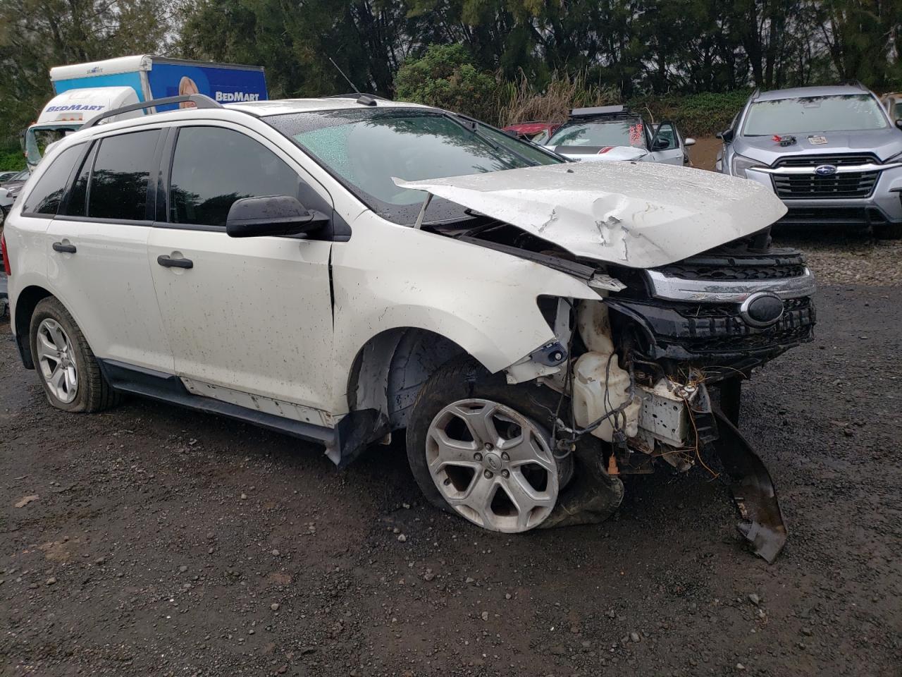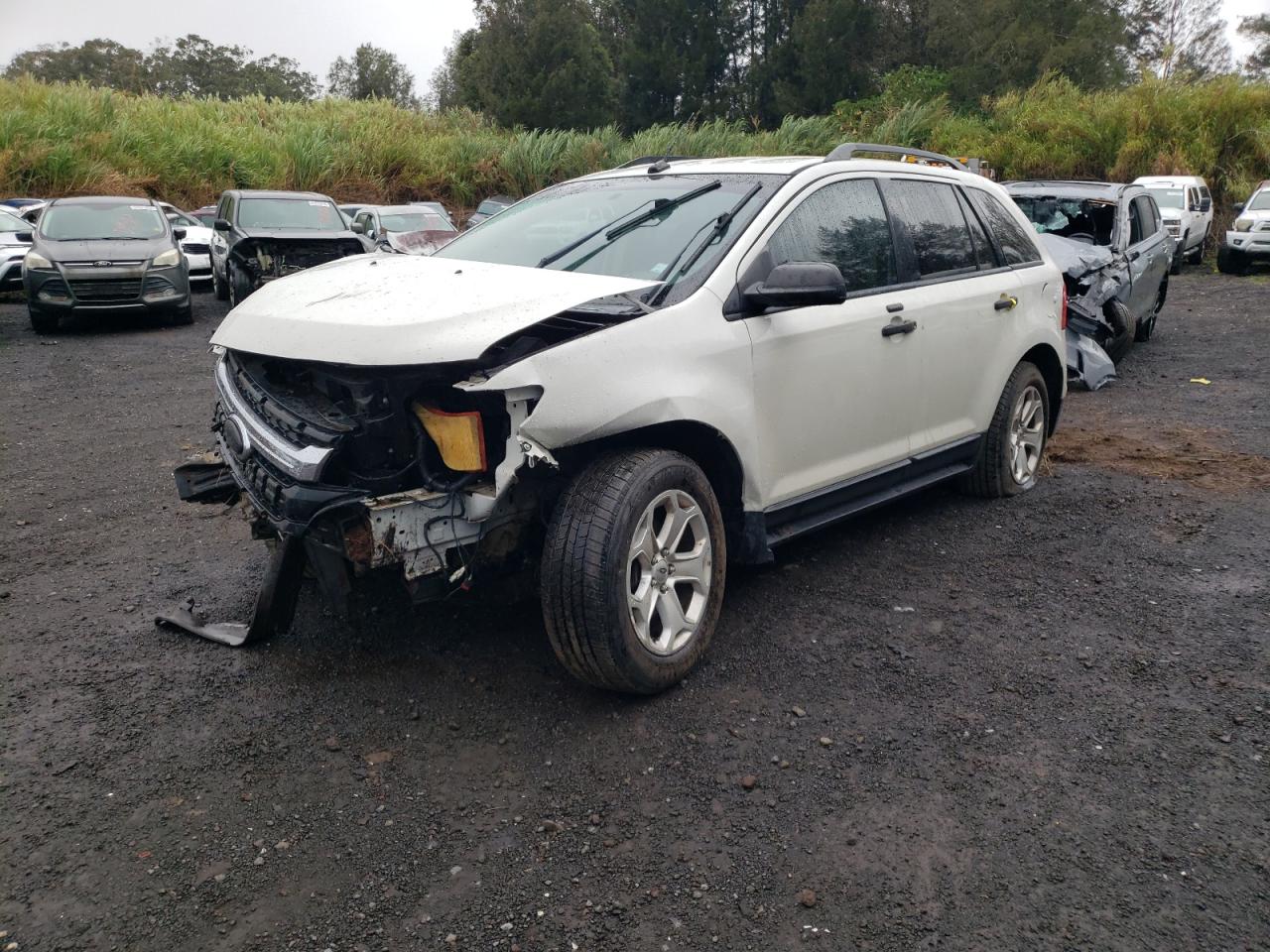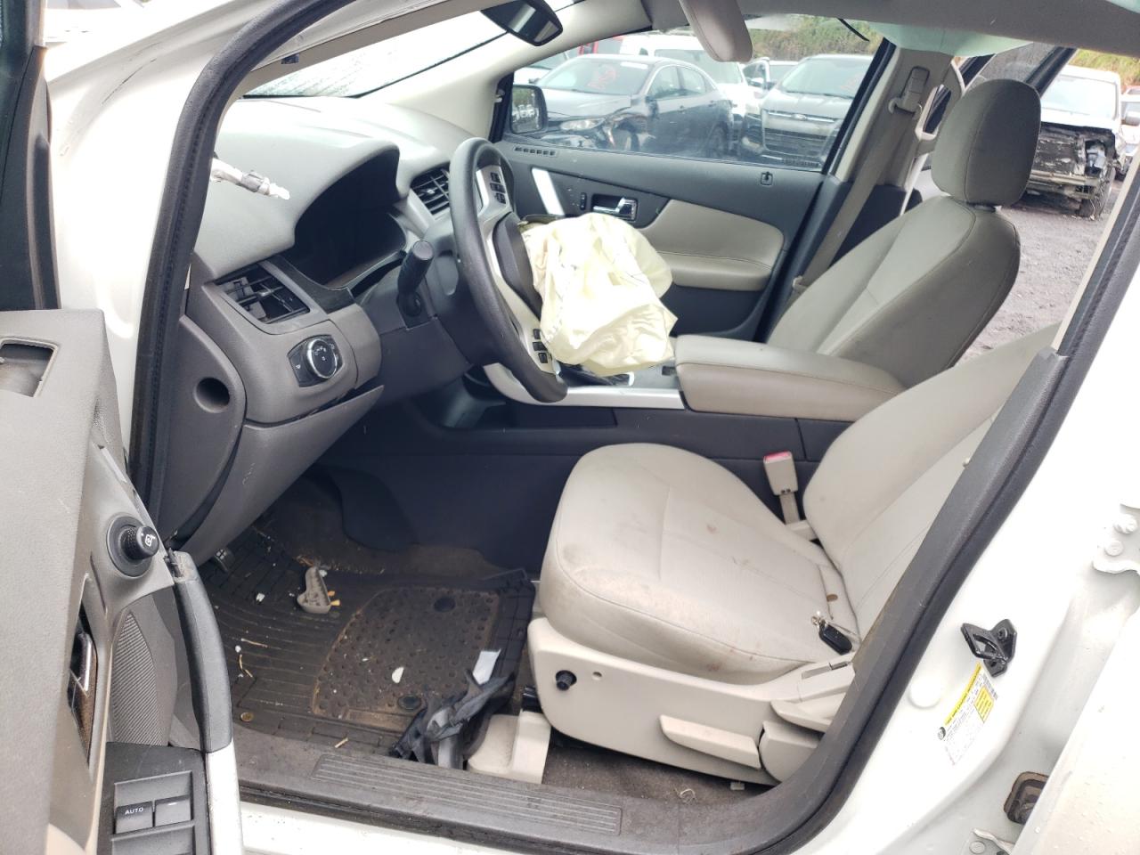 PoorThe 2013 Ford Edge SE has sustained significant front-end damage, indicating a serious collision. The white exterior shows extensive damage, including a crushed front end with visible damage to the lights, hood, and bumper. The airbags have deployed, suggesting a high-impact collision. The interior shows signs of wear and tear with deployed airbags. The vehicle is likely not drivable in its current condition and requires considerable repair.
