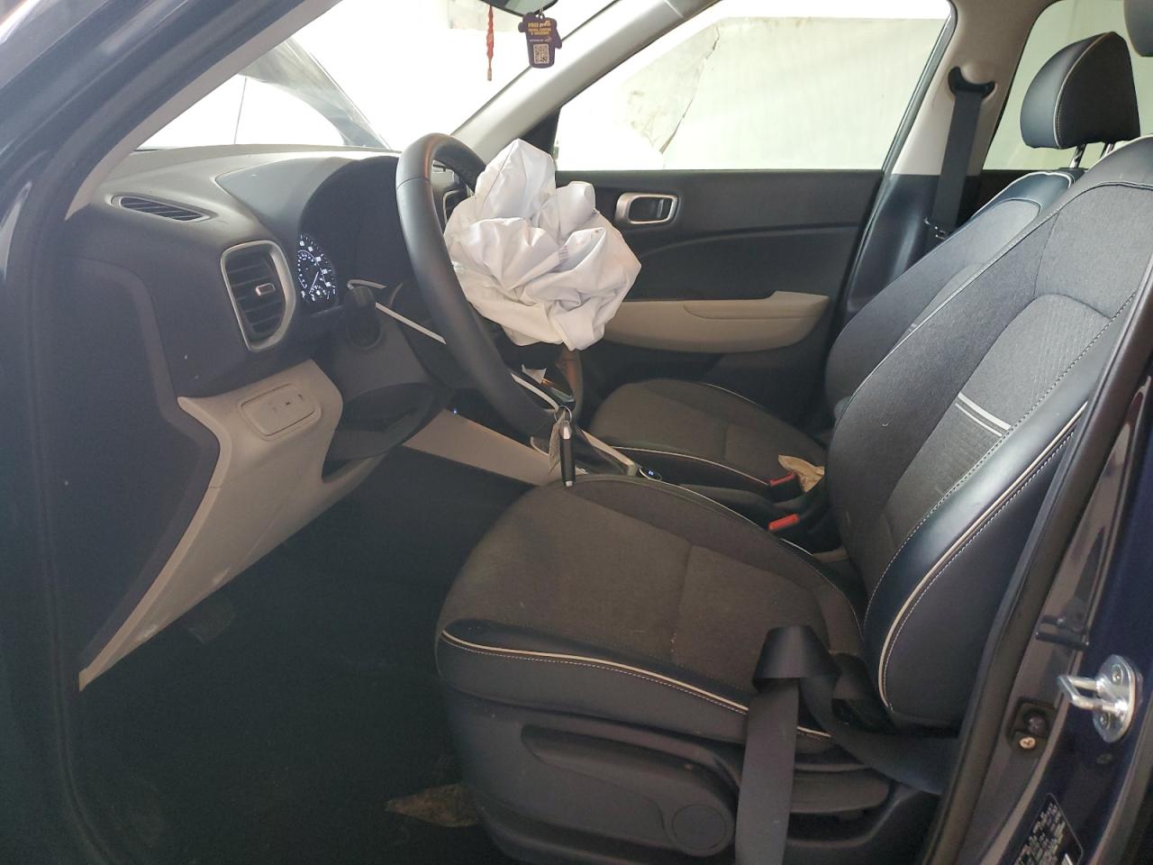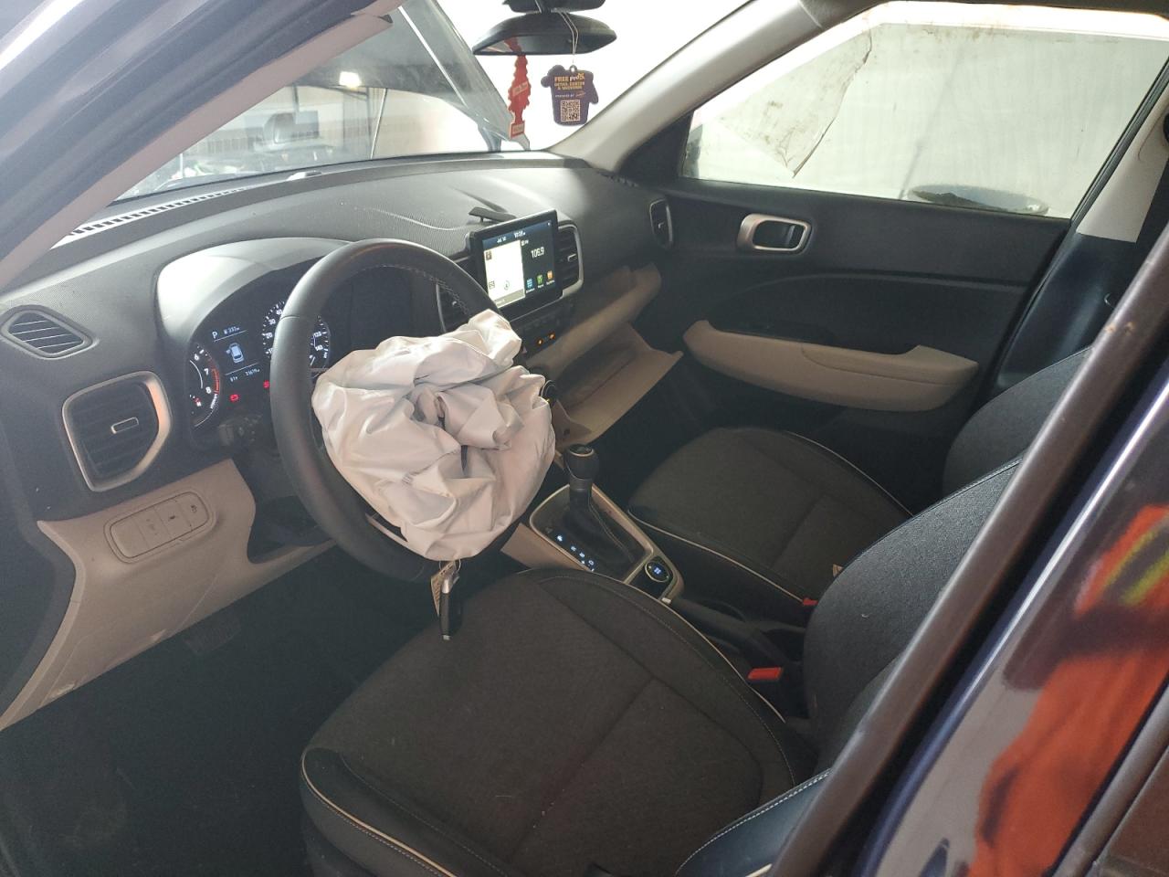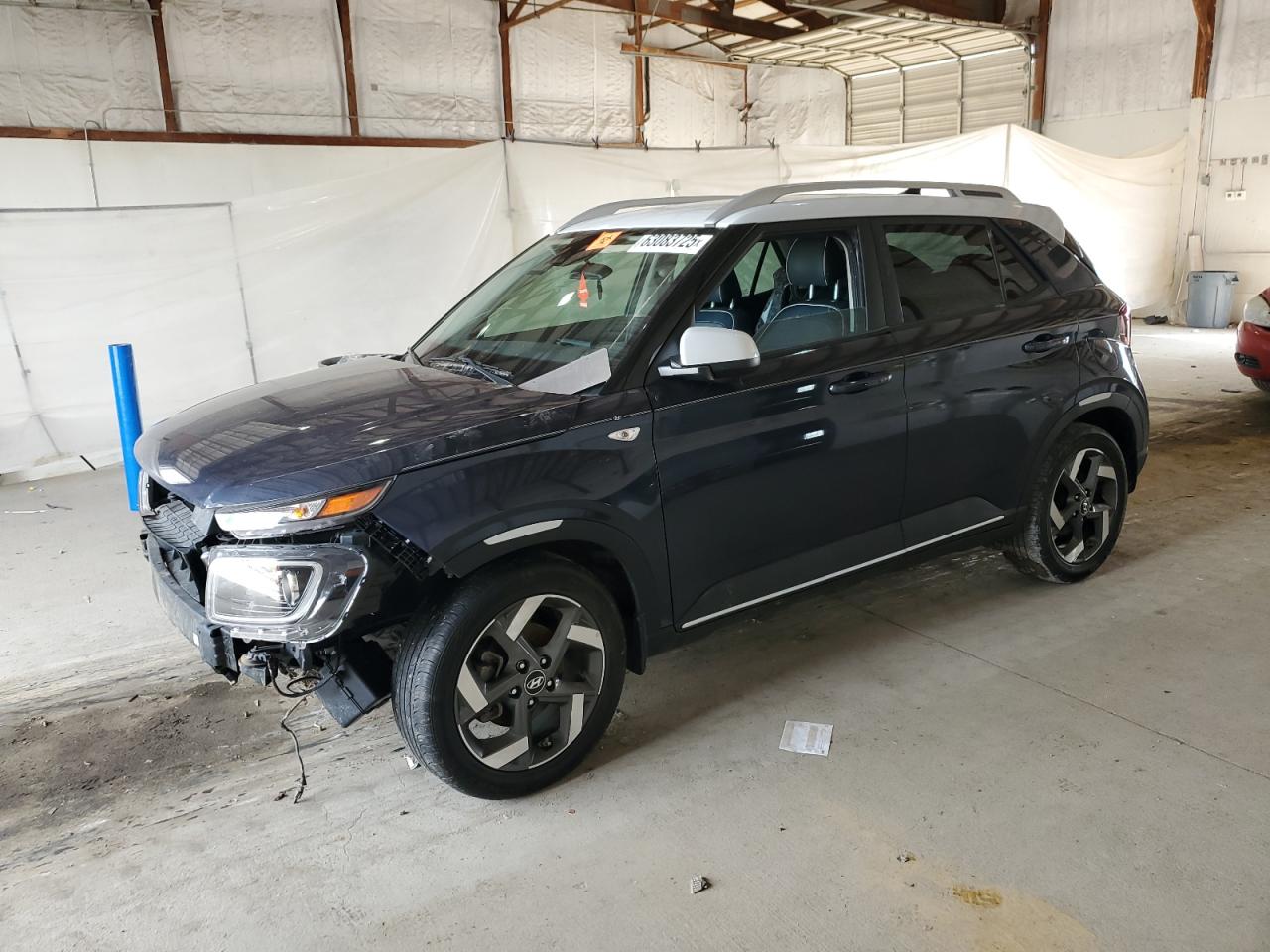 FairThe 2020 HYUNDAI VENUE SEL in blue has sustained significant front-end damage, including a heavily damaged front bumper, missing front parts, and what appears to be structural damage. The wheels appear to be intact but may have sustained damage. The headlights and other lights are likely damaged. The airbags have been deployed. The interior shows signs of airbag deployment and some other damage. The car is indicated as 'Run & Drive Verified'.