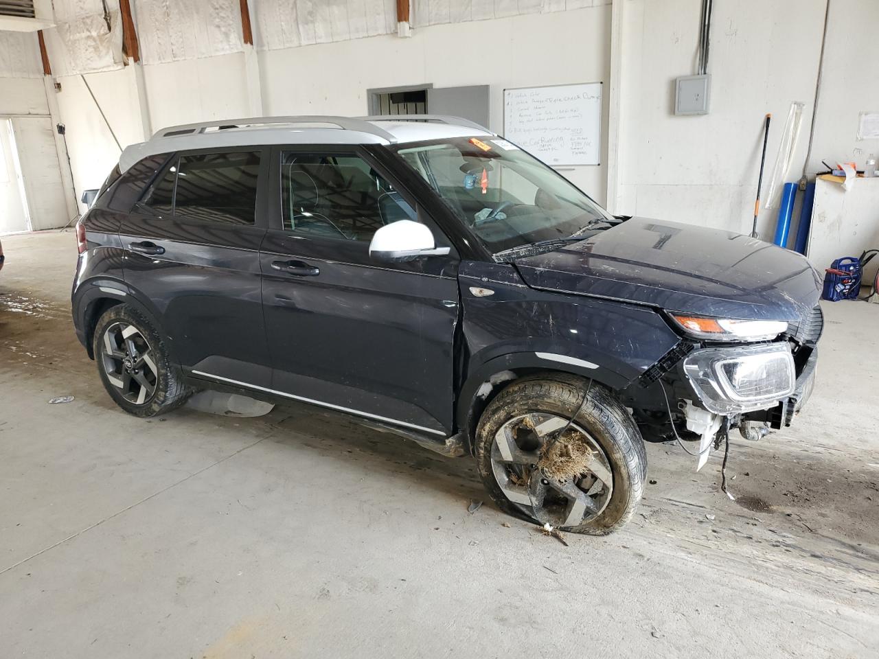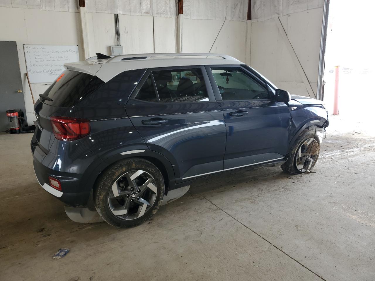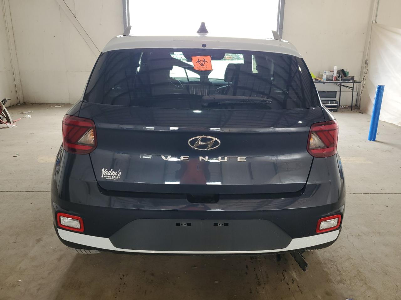 FairThe 2020 HYUNDAI VENUE SEL in blue has sustained significant front-end damage, including a heavily damaged front bumper, missing front parts, and what appears to be structural damage. The wheels appear to be intact but may have sustained damage. The headlights and other lights are likely damaged. The airbags have been deployed. The interior shows signs of airbag deployment and some other damage. The car is indicated as 'Run & Drive Verified'.