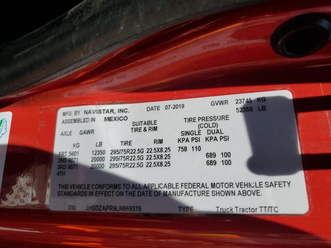3HSDZAPR9LN869376Final Bid